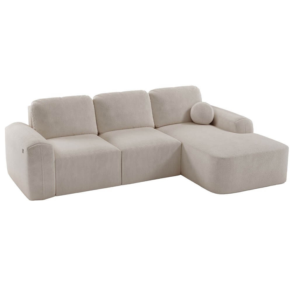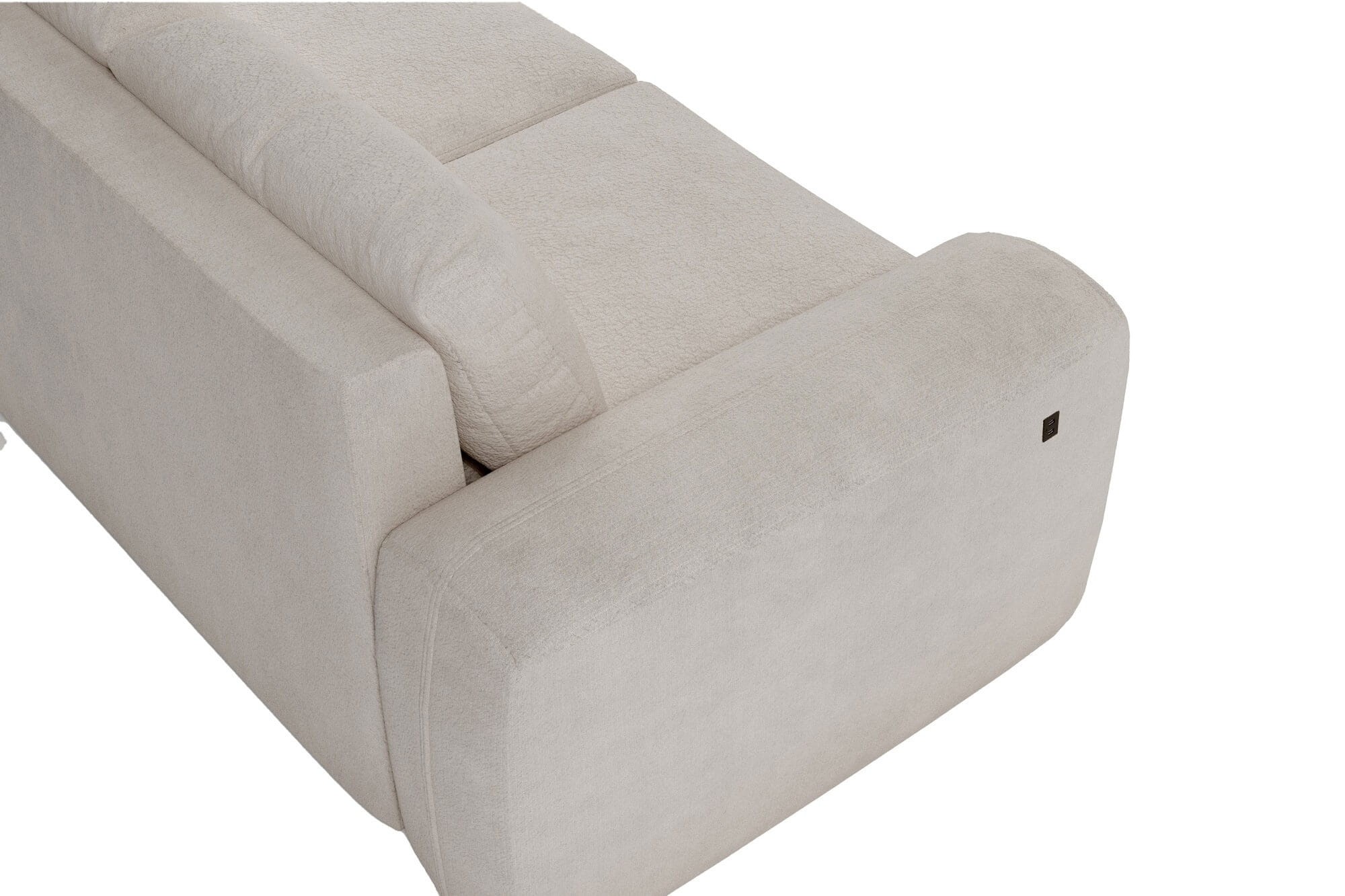 Przytulny narożnik w obłym kształcie BERGO I funkcja spania, pojemnik i ładowarka USB