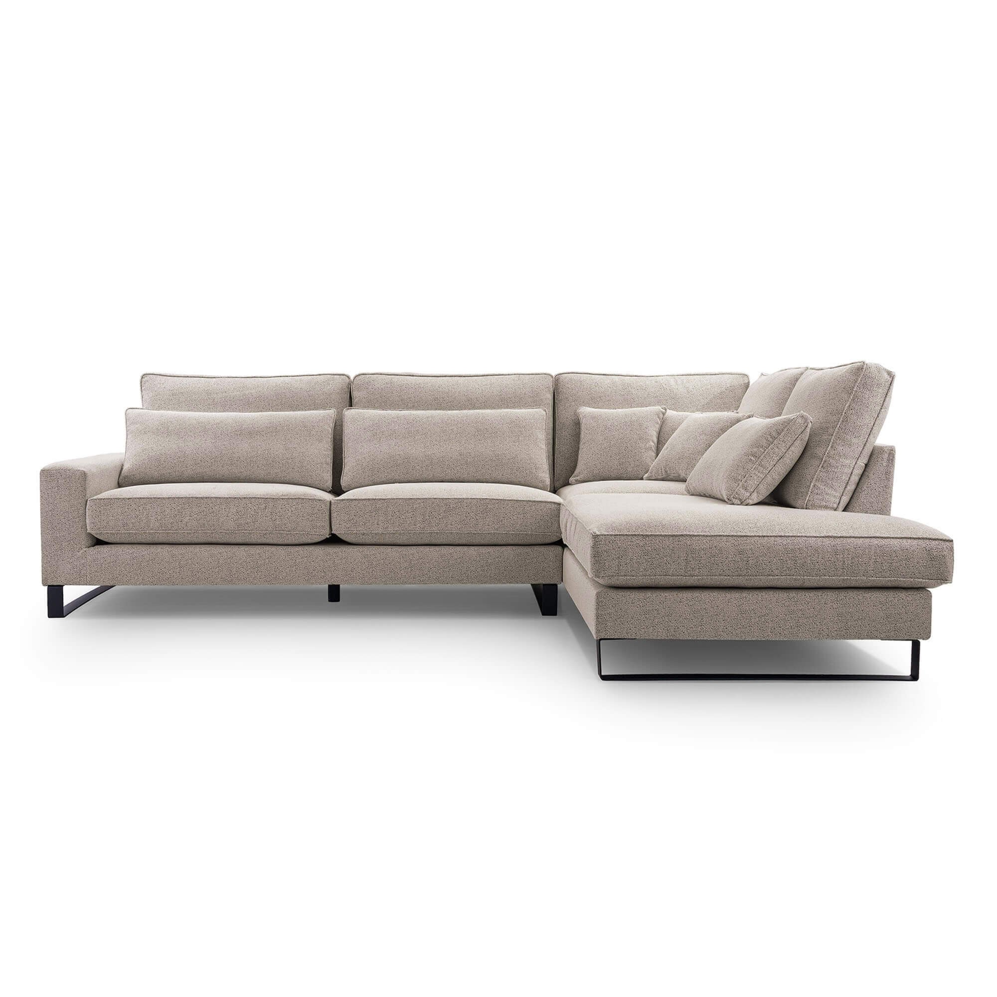 Narożnik nierozkładany to nowoczesny i stylowy mebel, który idealnie wpasuje się w nowoczesne wnętrza salonów. Dostępny w wersji prawo- lub lewostronnej, oferuje dużą elastyczność w dopasowaniu go do układu pomieszczenia. Jego siedzisko zostało wykonane z zastosowaniem sprężyny falistej oraz wysokiej jakości pianki tapicerskiej T30 i pianki HR, co gwarantuje wygodę oraz trwałość przez długi czas.