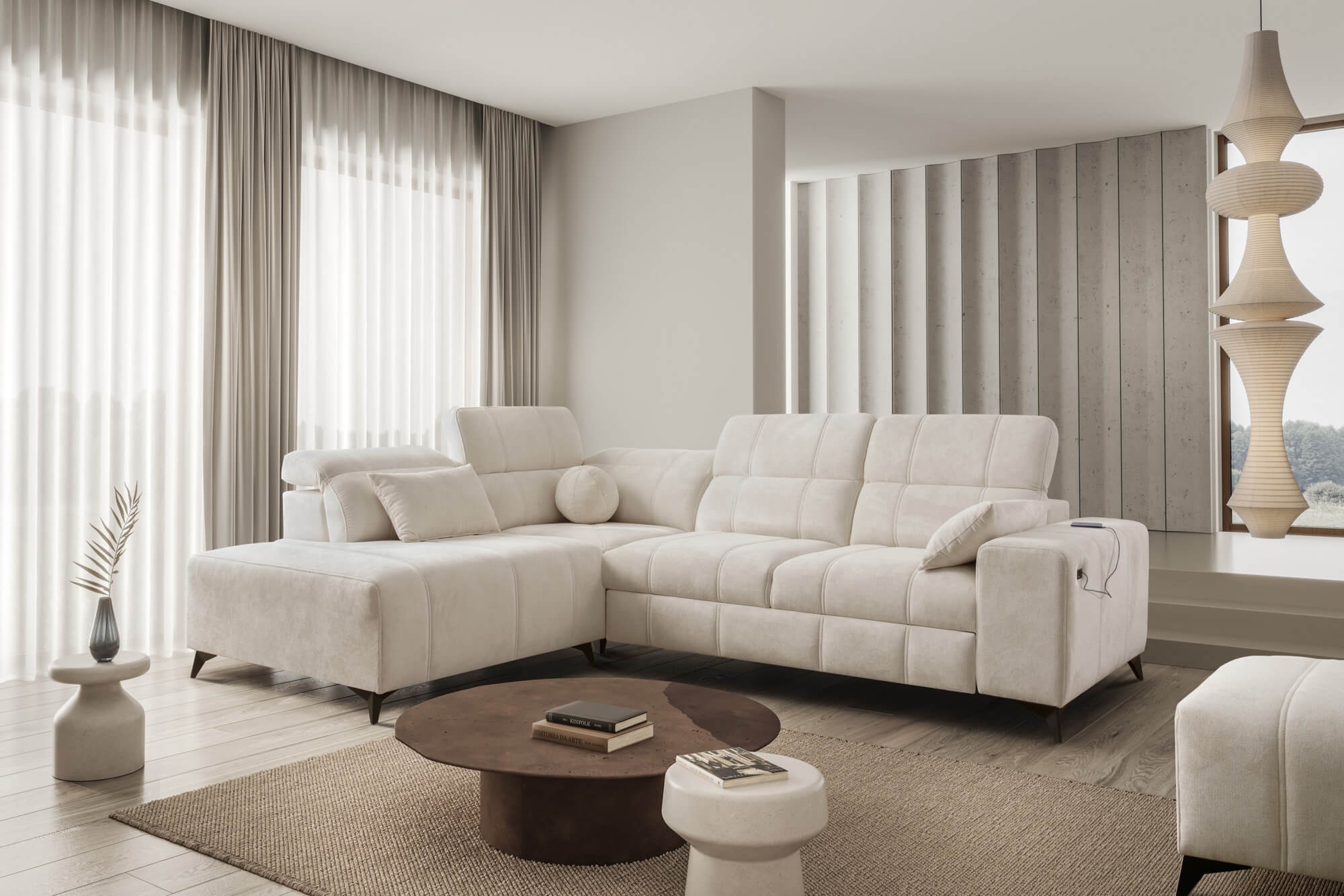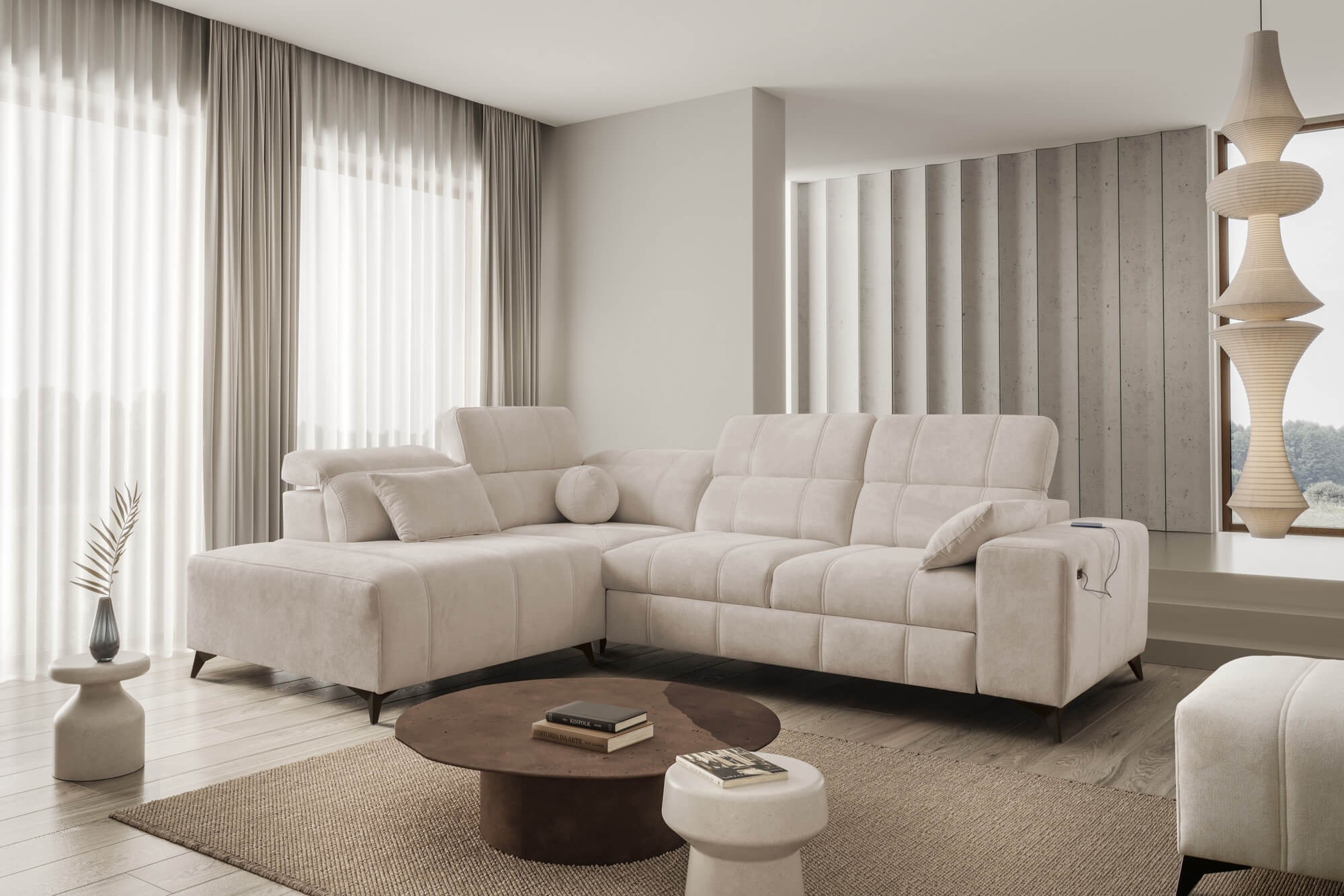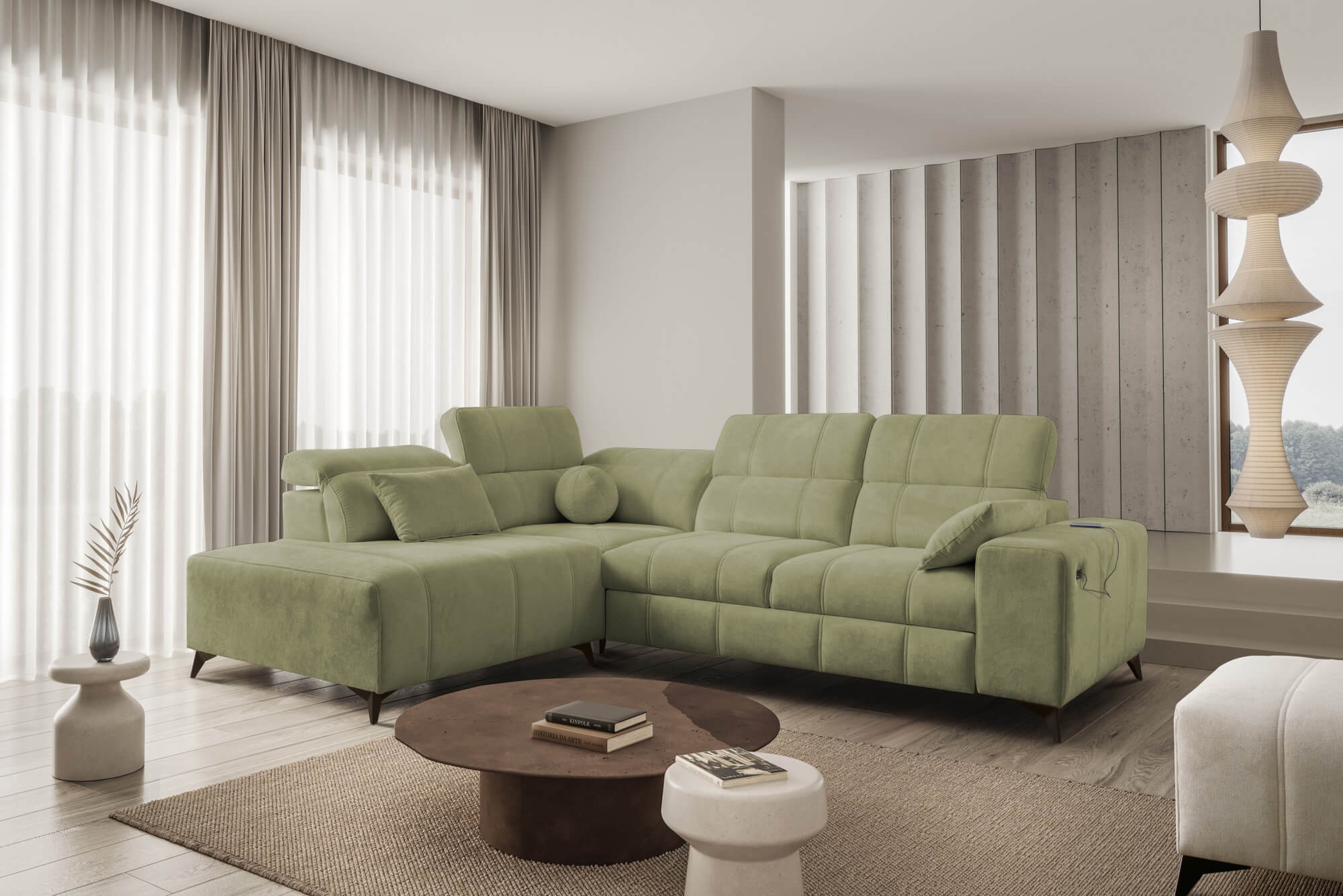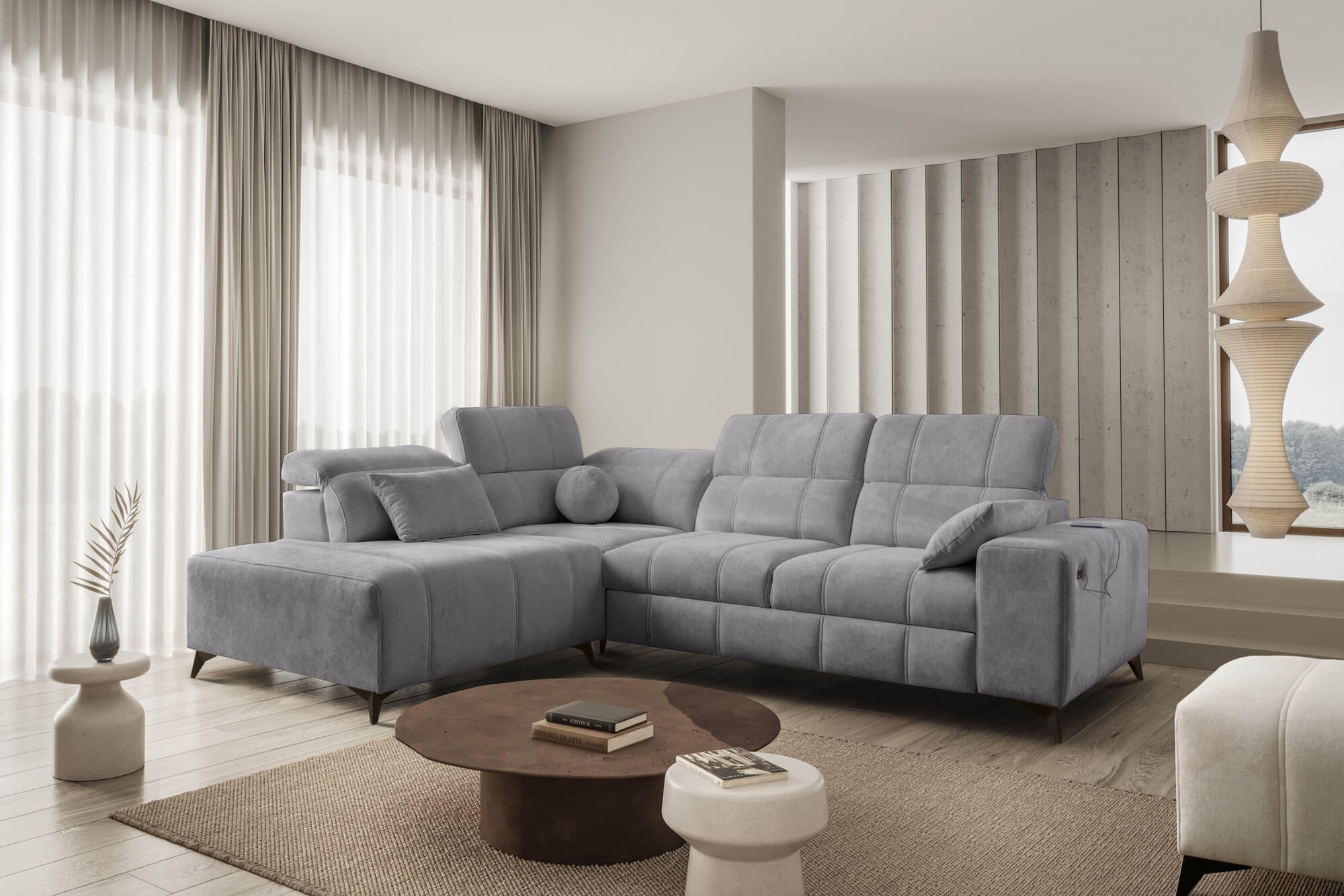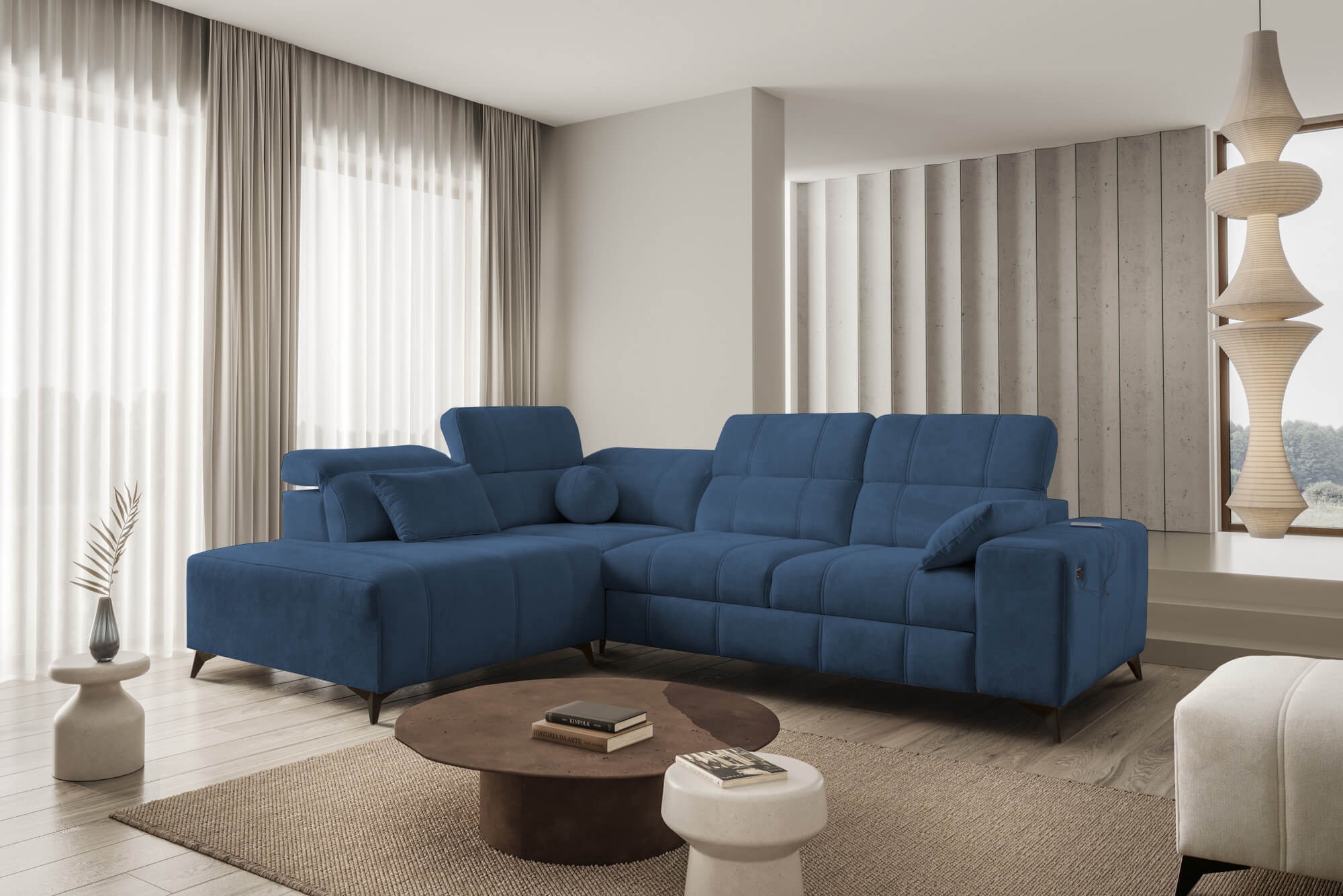 Narożnik DALME VII | Funkcja spania, pojemnik, regulowane zagłówki, USB | Kolor do wyboru
