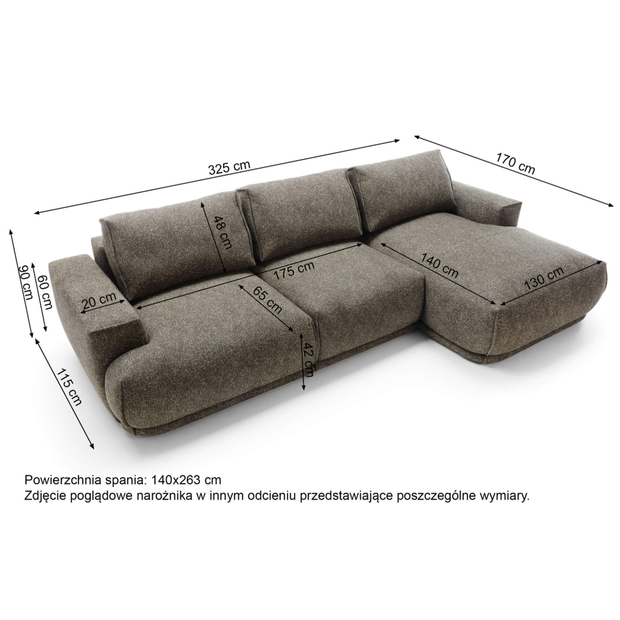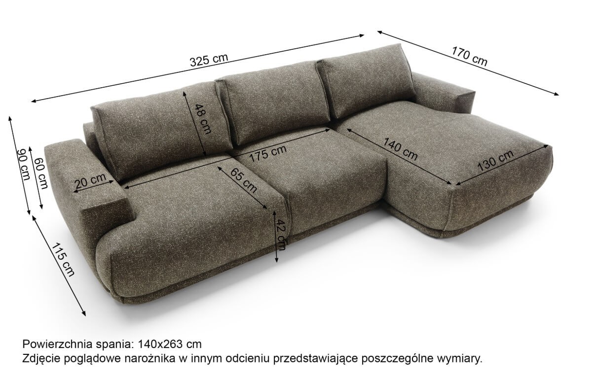 Powierzchnia spania: 140 x 263 cm – idealna, aby sofa mogła pełnić funkcję łóżka.