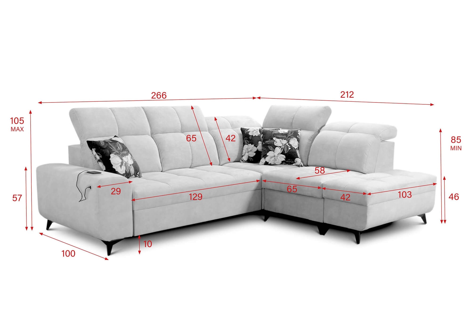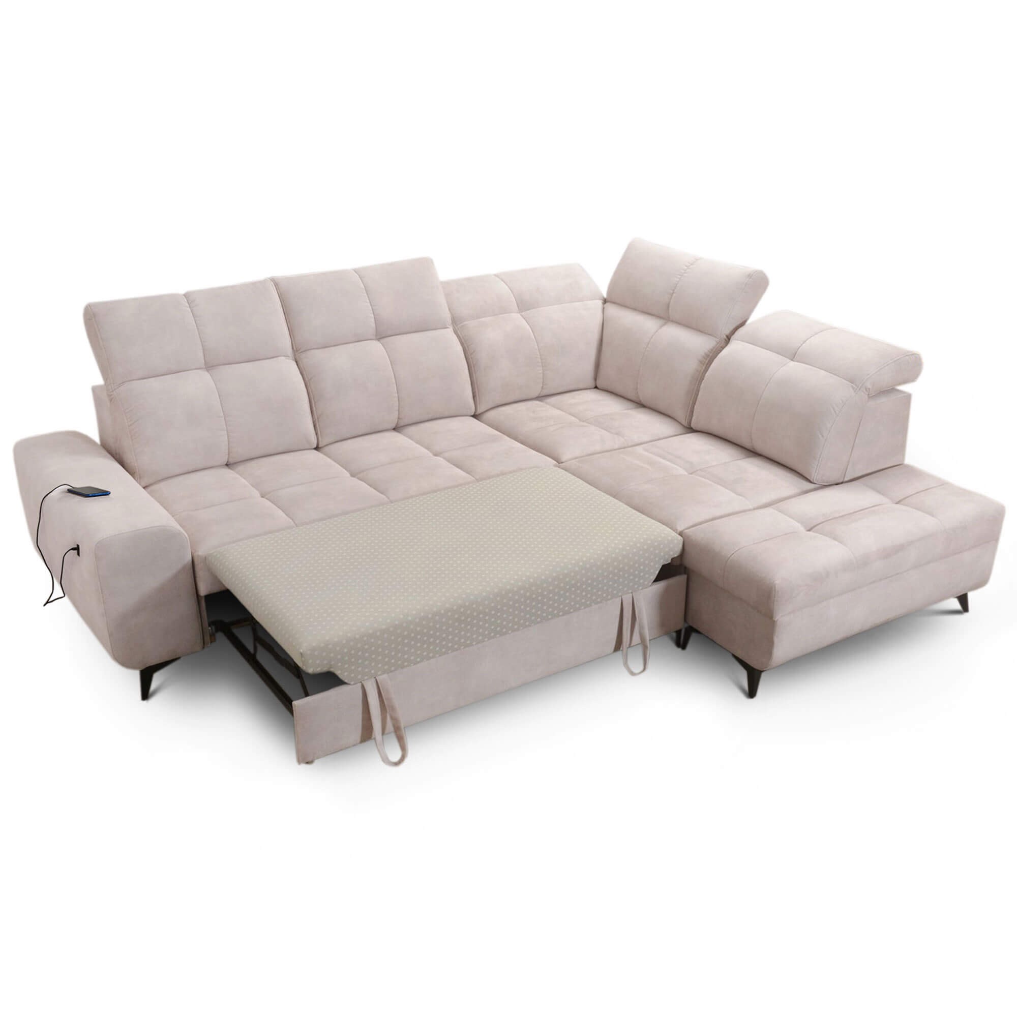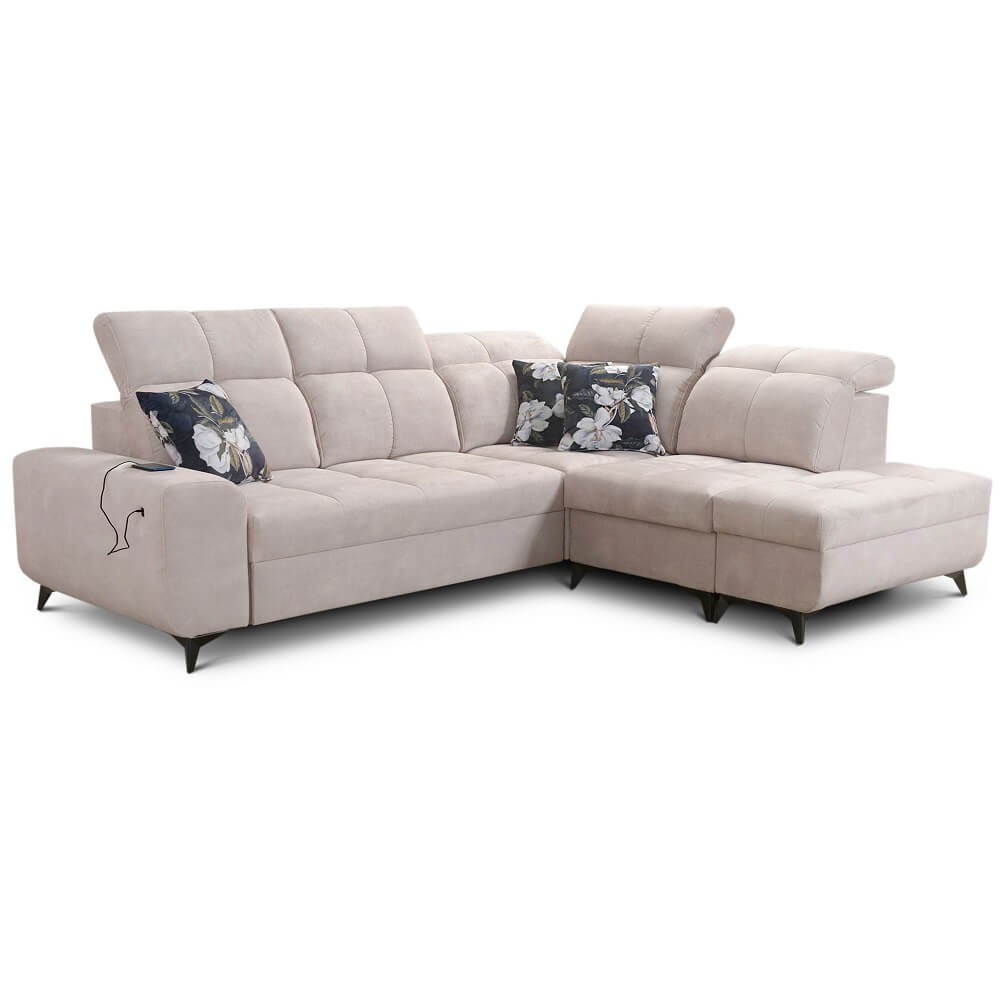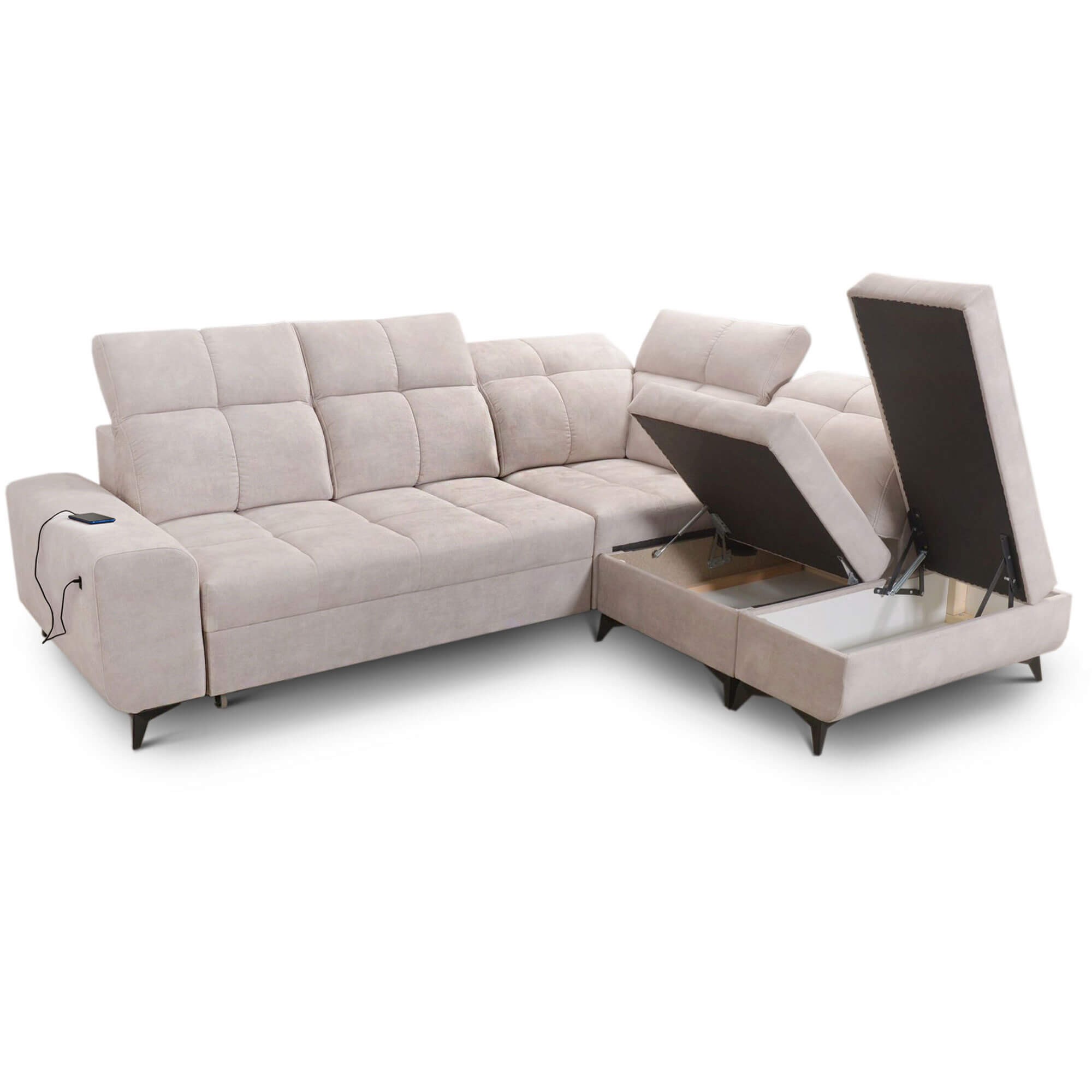 Narożnik GOLDIN VII | Funkcja spania, pojemnik, regulowane zagłówki, USB | Kolor do wyboru