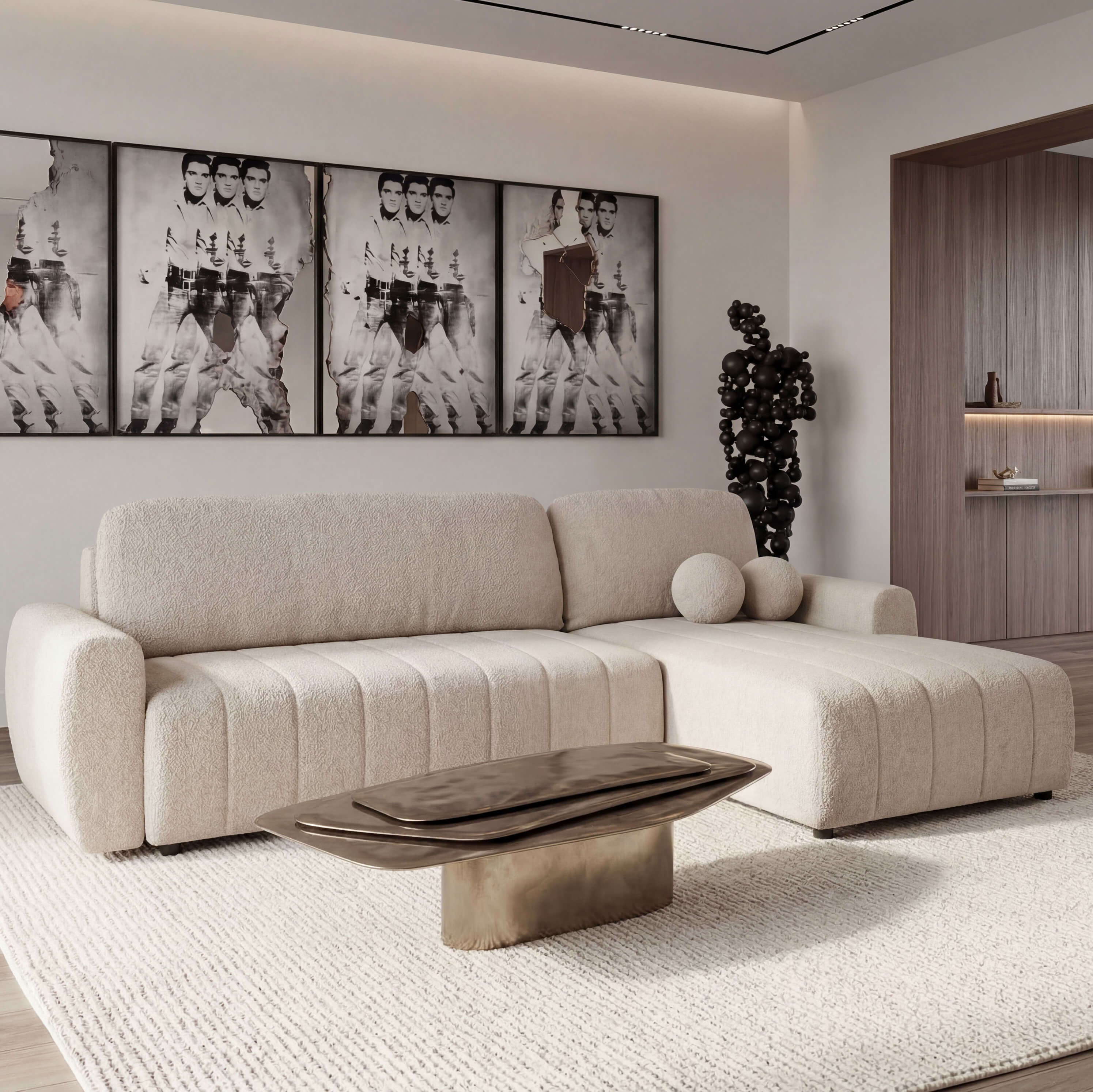 Narożnik LUNA NEW to nowoczesna propozycja dla tych, którzy pragną połączyć elegancję, wygodę i praktyczne rozwiązania w jednym stylowym meblu. Jego subtelna, ale wyrazista forma idealnie komponuje się zarówno z nowoczesnymi, jak i bardziej klasycznymi aranżacjami wnętrz, stając się nie tylko centrum wypoczynku, ale także ozdobą salonu. Zaokrąglone linie nadają całości przytulności i miękkości, a masywna bryła mebla zachwyca solidnym, stabilnym charakterem. To idealny wybór dla osób, które cenią funkcjonalność i chcą maksymalnie wykorzystać przestrzeń w swoim domu. LUNA NEW oferuje komfortową przestrzeń do codziennego relaksu, a gdy zajdzie potrzeba – z łatwością zmienia się w miejsce do snu. Doskonale sprawdzi się zarówno jako wygodny narożnik do oglądania filmów, jak i jako awaryjne łóżko dla gości. Miękkie poduchy, które tworzą wysokie oparcie, zapraszają do wypoczynku po długim dniu, a obecność pojemnika pozwala w prosty sposób zadbać o porządek w salonie. Dostępność różnych wariantów kolorystycznych pozwala dopasować narożnik LUNA NEW do indywidualnych preferencji i wystroju wnętrza. Jeśli marzysz o meblu, który nie tylko świetnie wygląda, ale również spełnia oczekiwania w codziennym użytkowaniu – LUNA NEW będzie idealnym wyborem. To narożnik stworzony z myślą o nowoczesnym stylu życia, w którym wygoda i estetyka idą w parze.