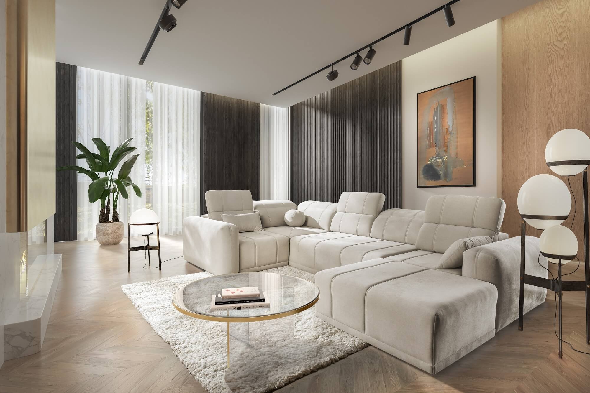 Nowoczesny narożnik z funkcją spania w kształcie U – odkryj piękno i komfort systemu REVELLO