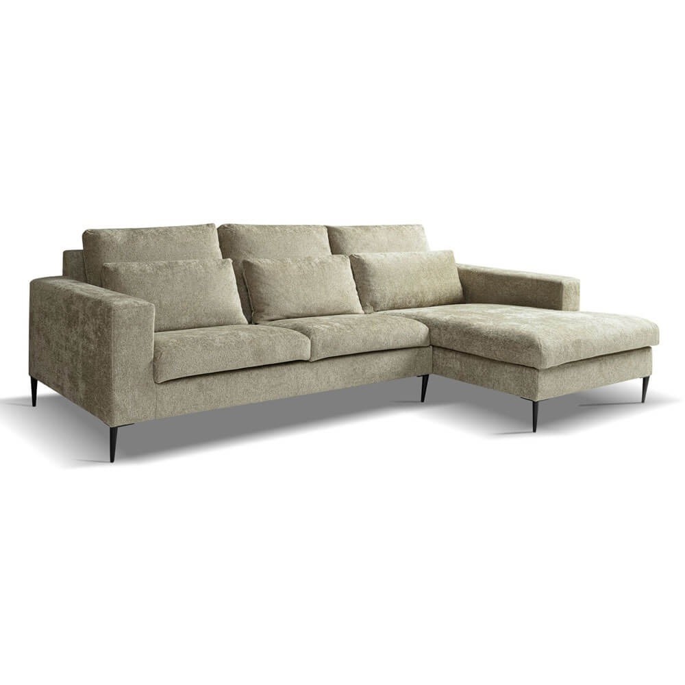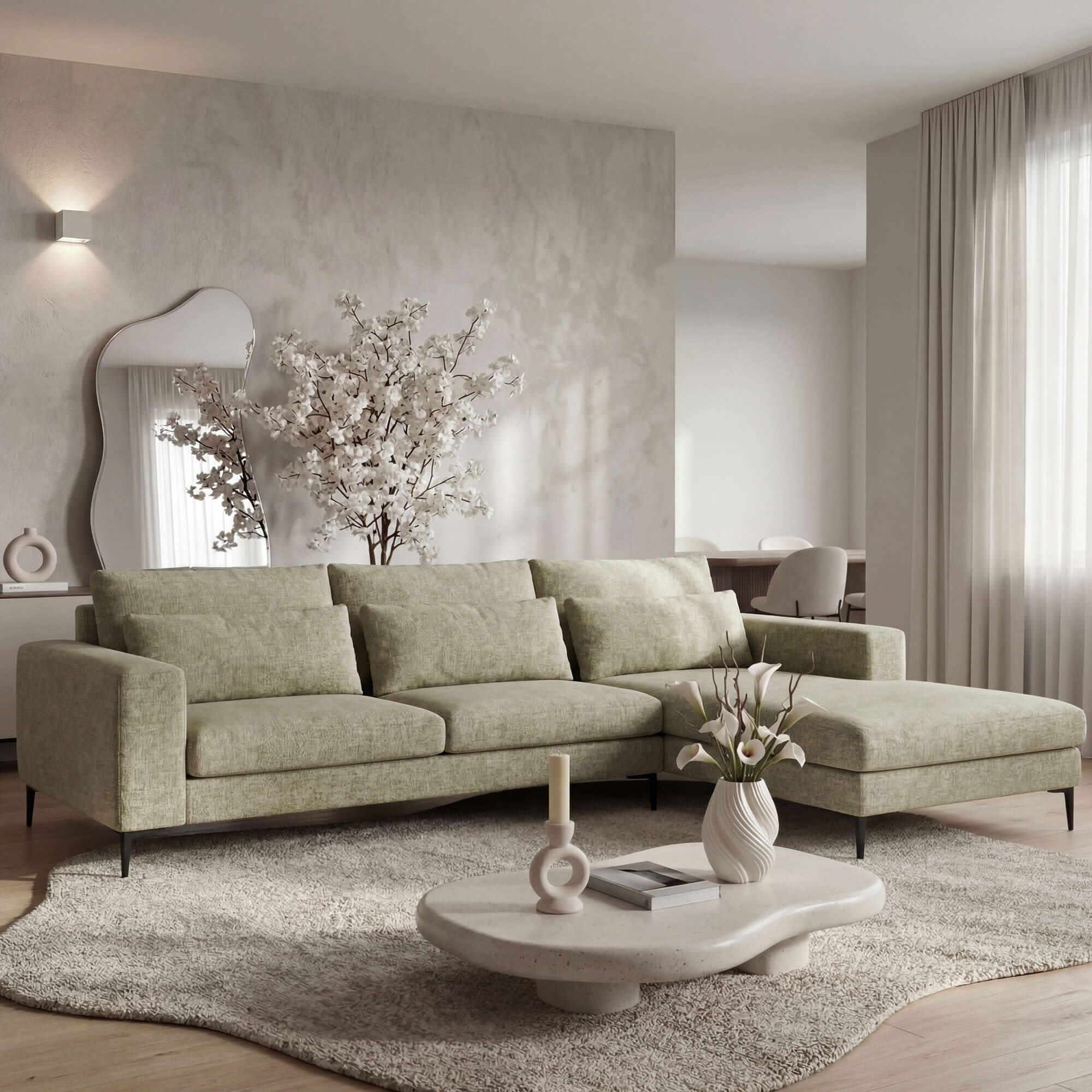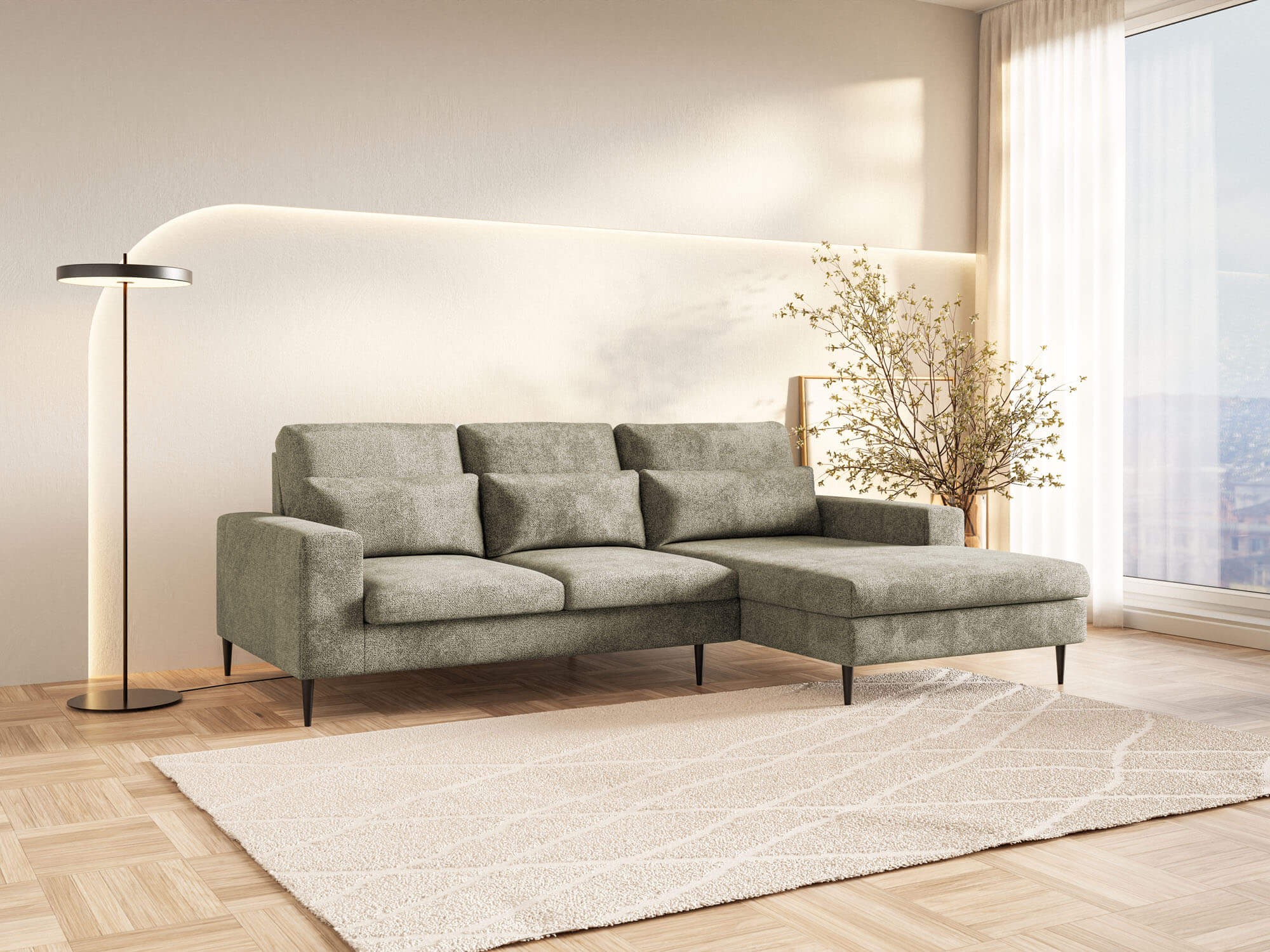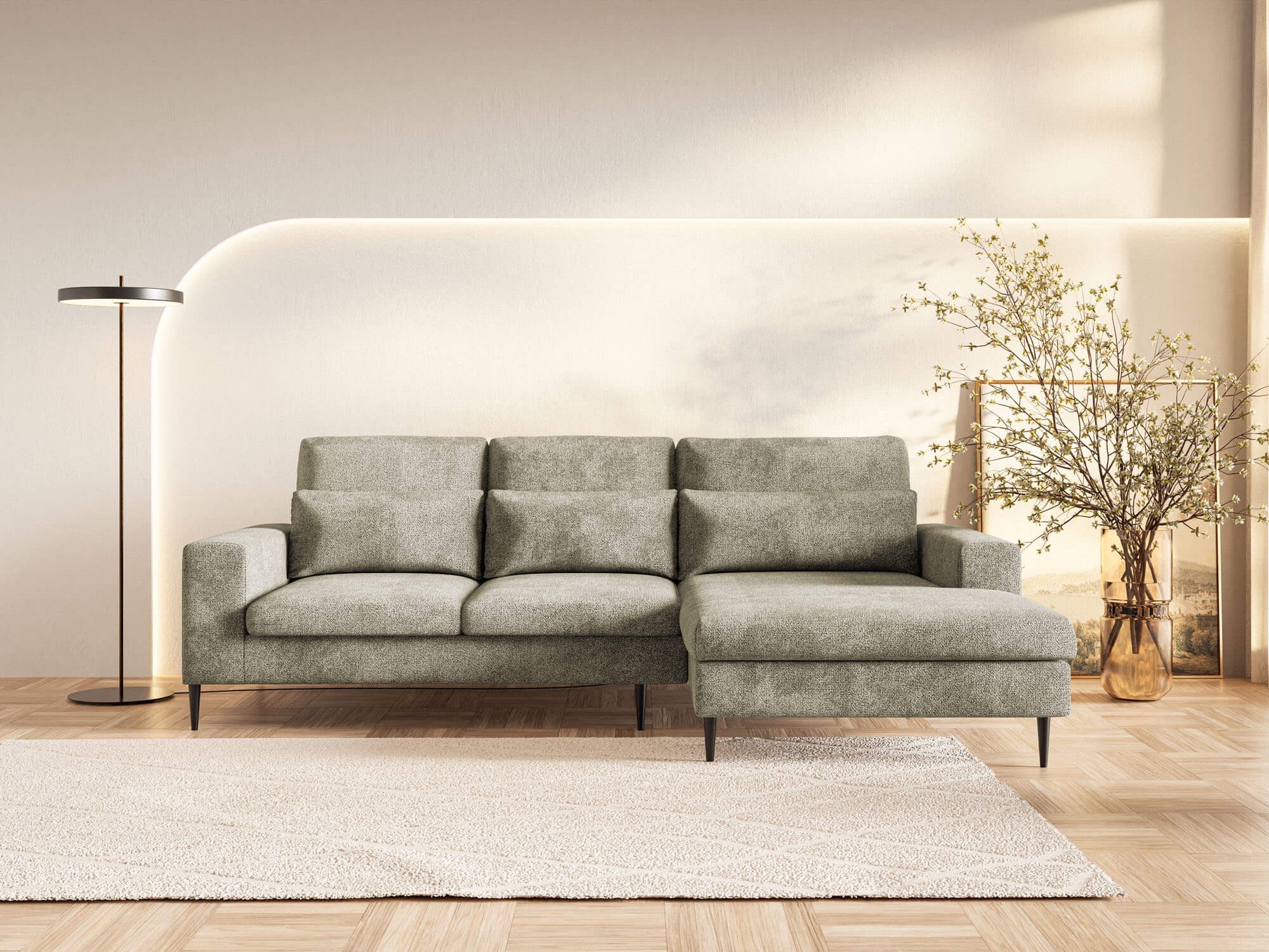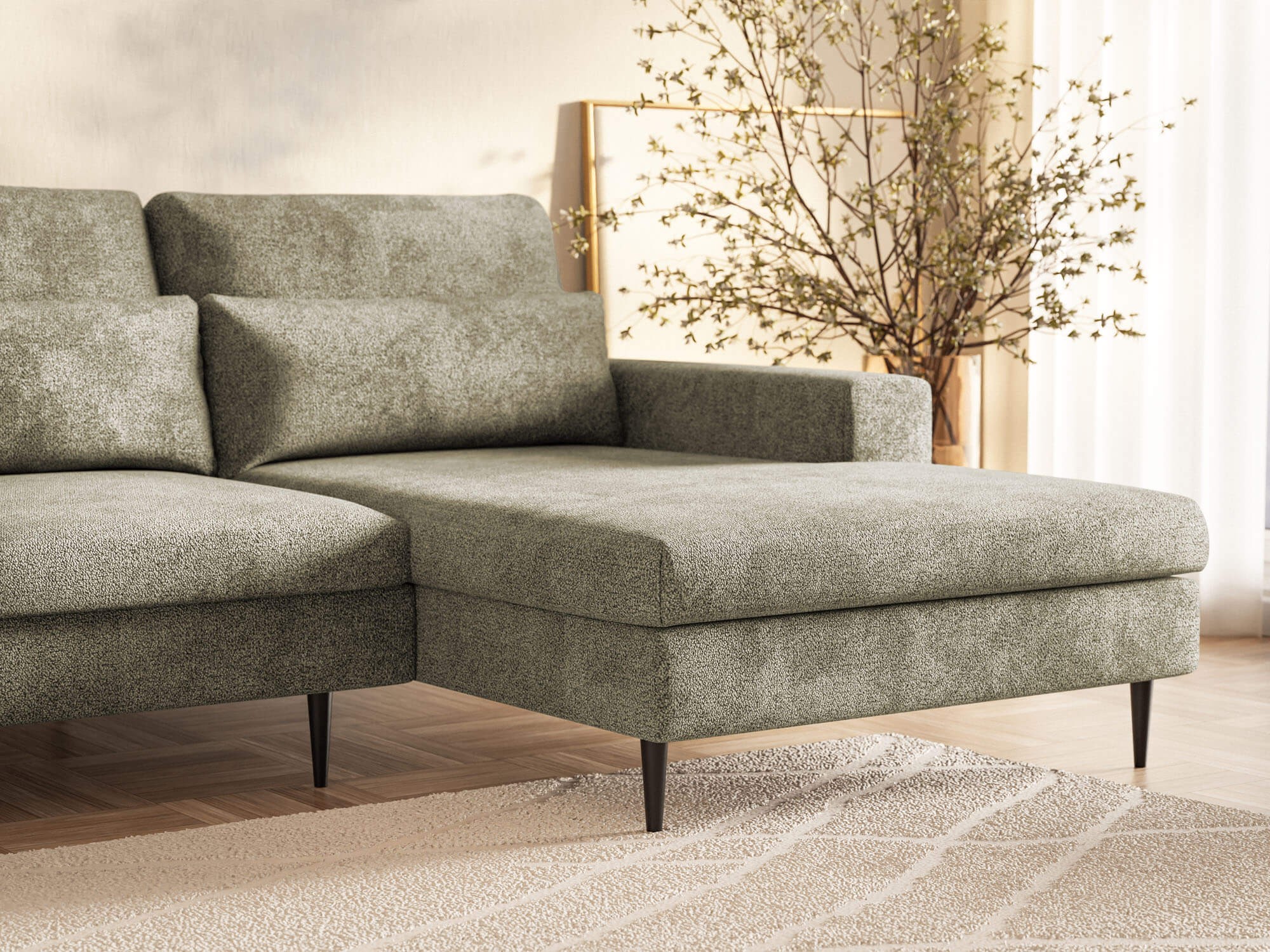 Narożnik ROMA MINI to idealna propozycja dla osób poszukujących eleganckiego, nowoczesnego mebla do mniejszych przestrzeni, który łączy w sobie wyjątkowy komfort i wyrafinowany styl. Smukłe, metalowe nóżki w kolorze czarnym nadają mu lekkości i sprawiają, że cała konstrukcja prezentuje się subtelnie i nowocześnie, doskonale komponując się zarówno z wnętrzami w stylu minimalistycznym, jak i bardziej klasycznym. Starannie zaprojektowana bryła z wąskimi podłokietnikami i prostą linią formy podkreśla jego ekskluzywny charakter, przyciągając wzrok i nadając wnętrzu prestiżu. Narożnik ROMA MINI został stworzony z myślą o wygodzie codziennego użytkowania. Luźne poduszki oparciowe i dodatkowe poduszki lędźwiowe zapewniają doskonałe podparcie pleców i pozwalają na relaks w najlepszym stylu. Wypełnienie siedzisk oparto na połączeniu sprężyny falistej oraz elastycznej pianki, co gwarantuje optymalną miękkość i trwałość nawet przy intensywnym użytkowaniu. Całość osadzona jest na solidnym stelażu wykonanym z płyty meblowej oraz drewna, co zapewnia nie tylko wytrzymałość, ale również stabilność i bezpieczeństwo przez długie lata. ROMA MINI to narożnik stworzony z myślą o współczesnym stylu życia – kompaktowy, funkcjonalny i wyjątkowo estetyczny. Będzie doskonałym wyborem do salonu, apartamentu lub eleganckiego biura, gdzie liczy się zarówno wygoda, jak i nowoczesny, spójny design.