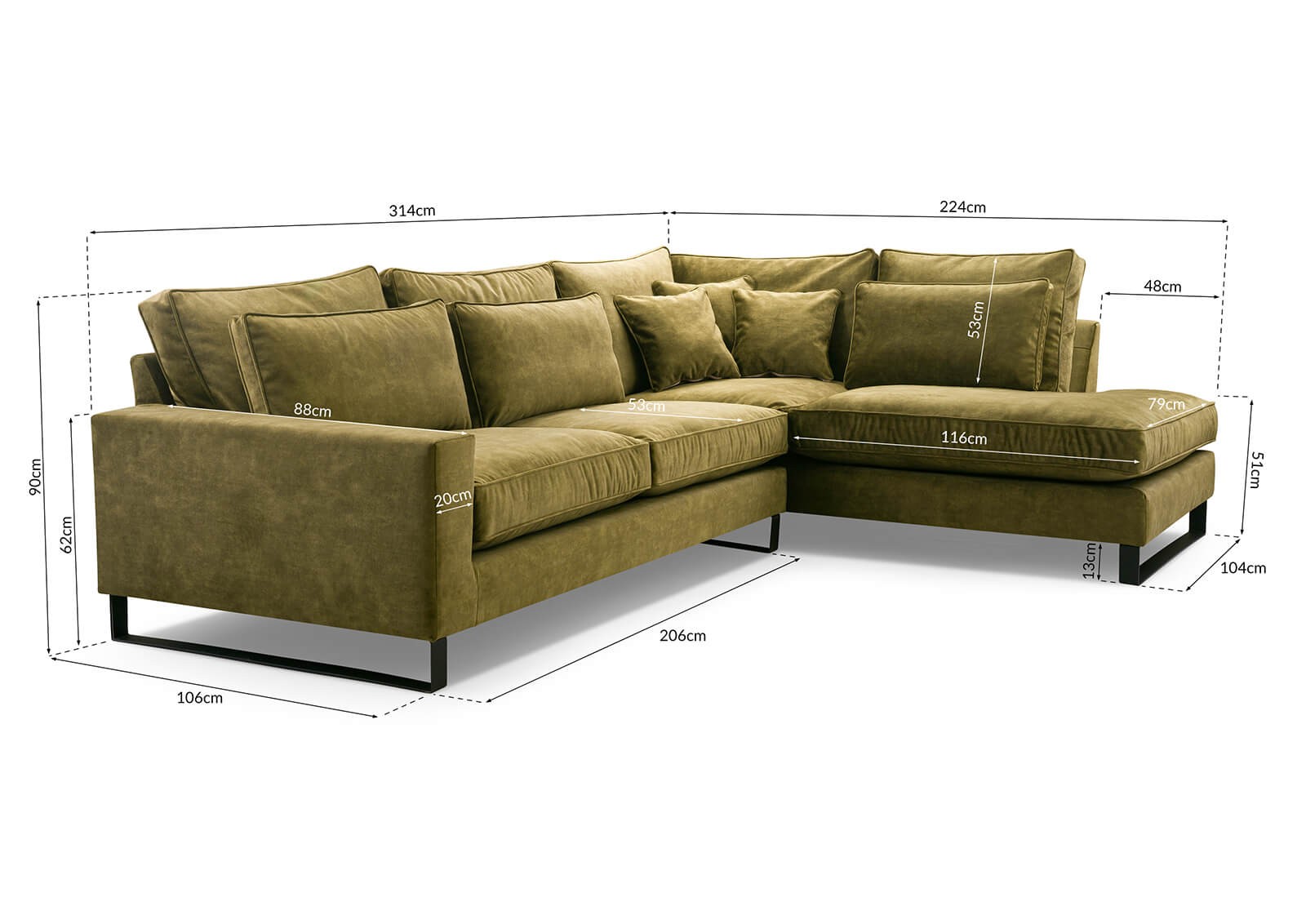 - Konstrukcja stelaża narożnika jest wygięta do tyłu dzięki czemu wygoda z użytkowanie mebla stoi na bardzo wysokim poziomie
