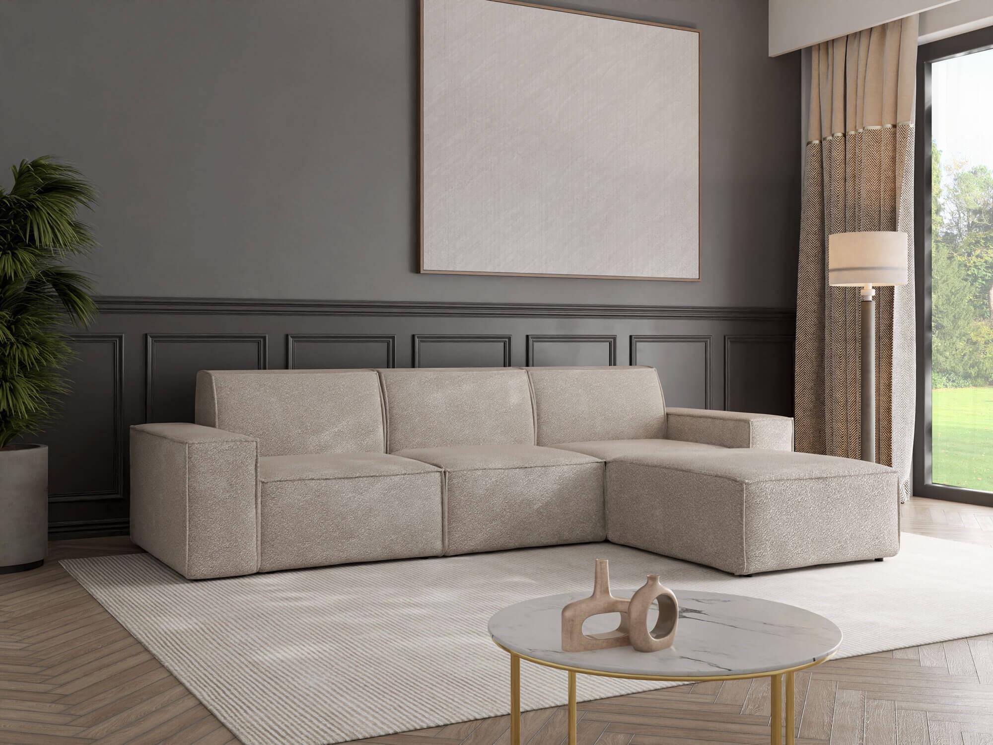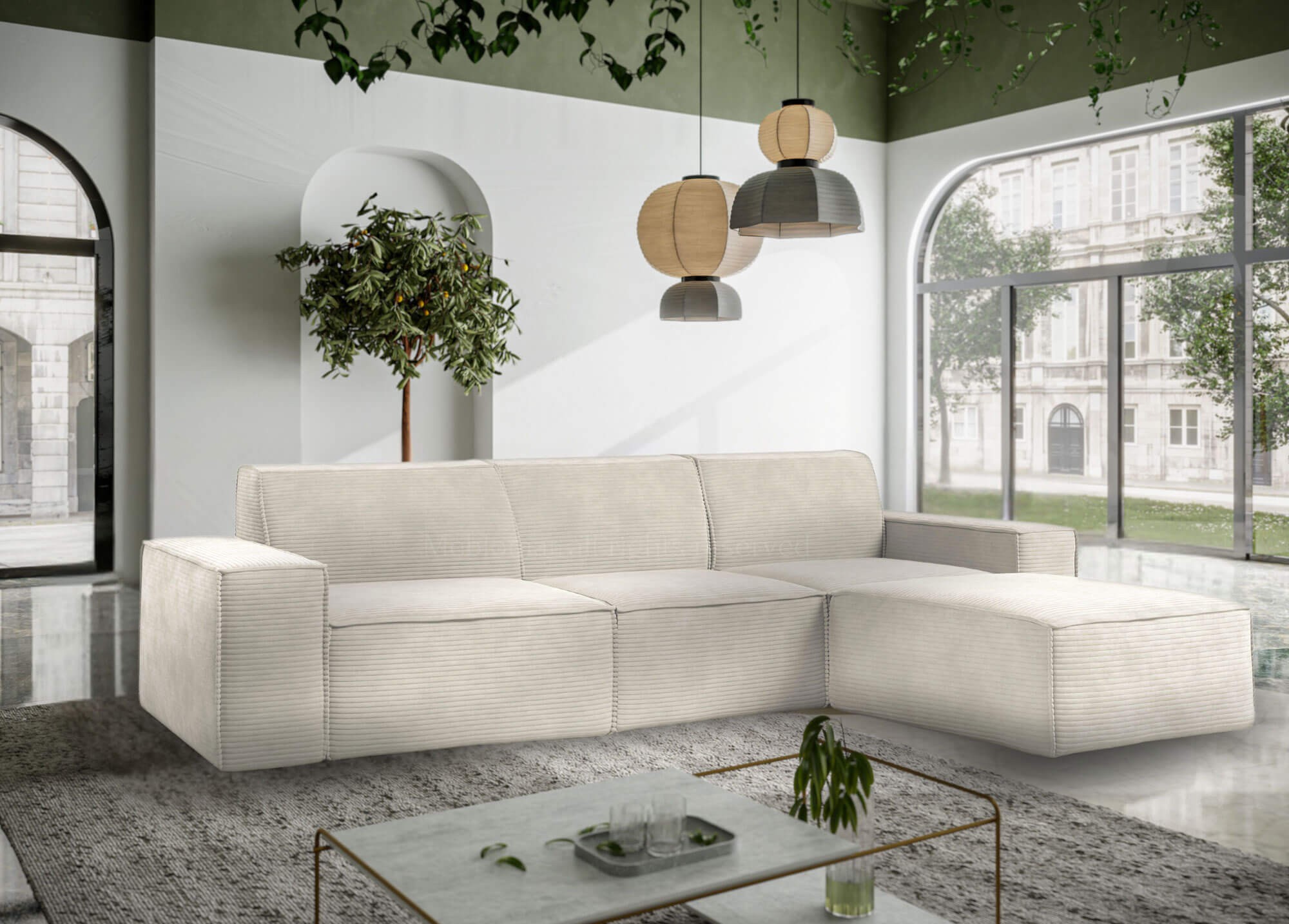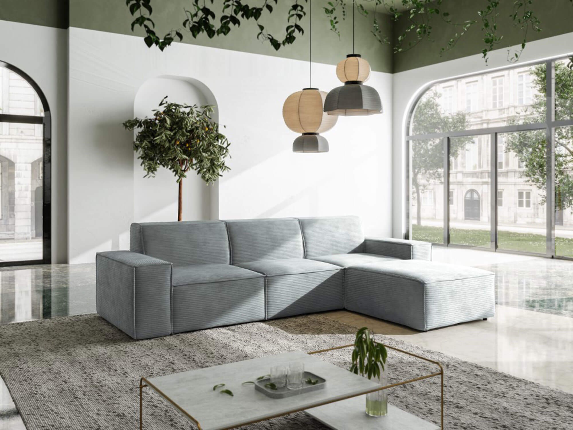 Narożnik z funkcją spania CORD z kolekcji Ambience to elegancki i nowoczesny mebel, który doskonale sprawdzi się w każdym salonie. Jego przemyślana konstrukcja łączy w sobie komfort codziennego wypoczynku z praktycznym zastosowaniem, ponieważ w prosty sposób można go rozłożyć, tworząc wygodną powierzchnię do spania. Dzięki temu narożnik jest idealnym wyborem zarówno do codziennego relaksu, jak i jako dodatkowe miejsce noclegowe dla gości. Solidne wykonanie i dbałość o szczegóły sprawiają, że mebel prezentuje się wyjątkowo stylowo i pasuje zarówno do wnętrz nowoczesnych, jak i bardziej klasycznych. Model CORD wyróżnia się dużą powierzchnią użytkową, wygodnym siedziskiem oraz miękkimi oparciami, które gwarantują wysoki komfort podczas siedzenia i spania. Narożnik dostępny jest w szerokiej gamie kolorystycznej, co pozwala dopasować go do indywidualnych preferencji oraz aranżacji wnętrza. Funkcjonalność mebla podkreśla nie tylko mechanizm rozkładania, ale także możliwość wyboru strony narożnika, dzięki czemu z łatwością można dopasować go do układu pomieszczenia. Narożnik z funkcją spania CORD to propozycja dla osób, które cenią sobie praktyczne rozwiązania połączone z elegancją i wygodą. To mebel, który stanie się centralnym punktem salonu, oferując komfortowy odpoczynek w ciągu dnia oraz praktyczne miejsce do spania nocą. Dzięki uniwersalnemu designowi i wysokiej jakości wykonania narożnik Ambience CORD jest doskonałą inwestycją w stylowe i funkcjonalne wyposażenie domu.