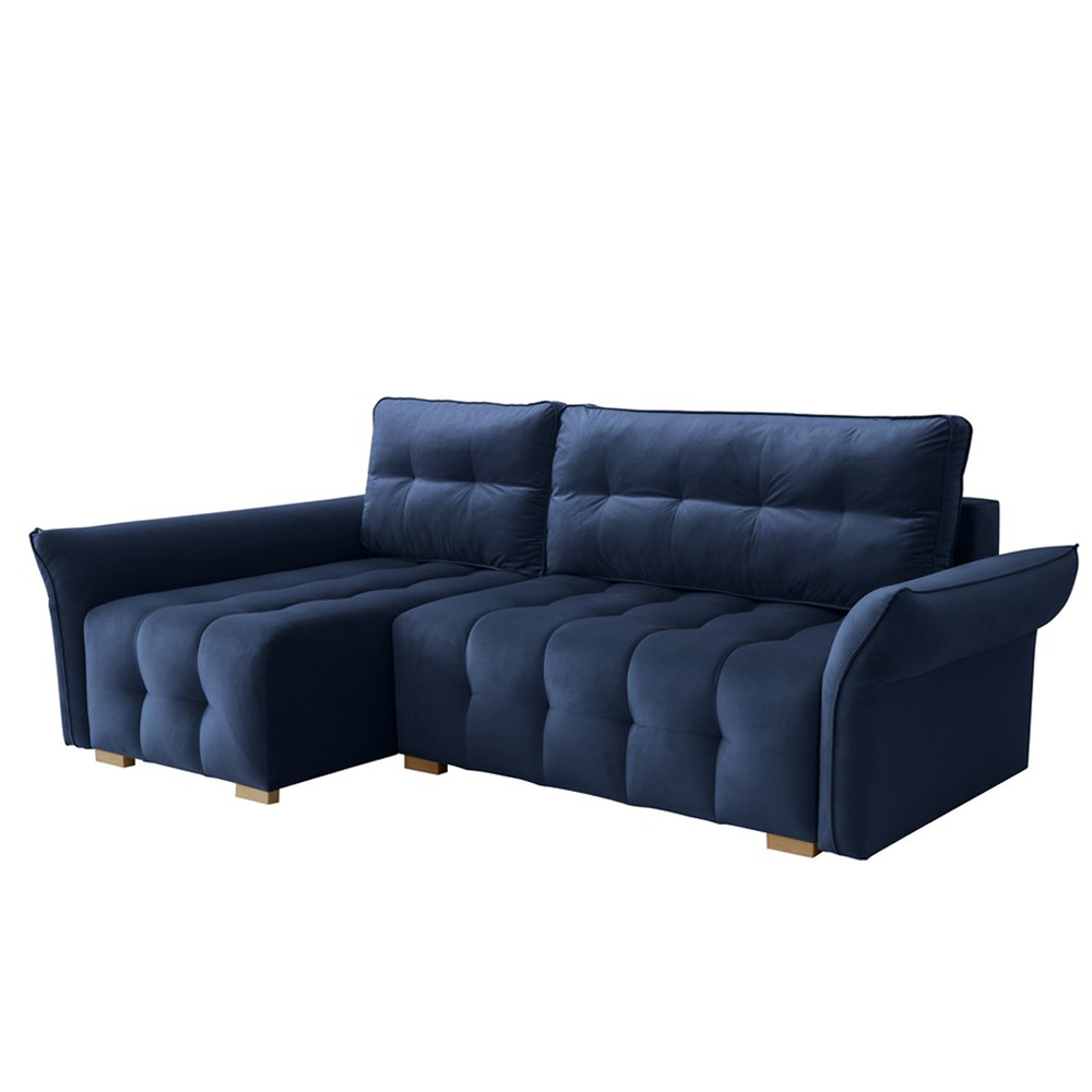 Niezwykle oryginalny i stylowy narożnik pikowany z funkcją spania prezentuje się wyjątkowo gustownie. Ciekawa forma podłokietników i delikatne pikowanie tapicerki sprawiają, że narożnik będzie subtelnie przyozdabiał Twój salon.