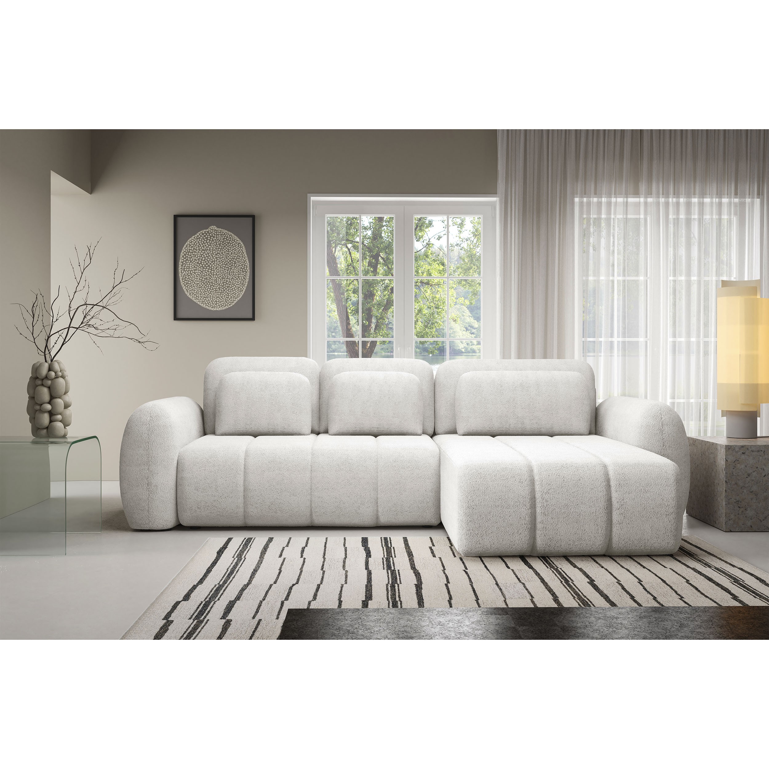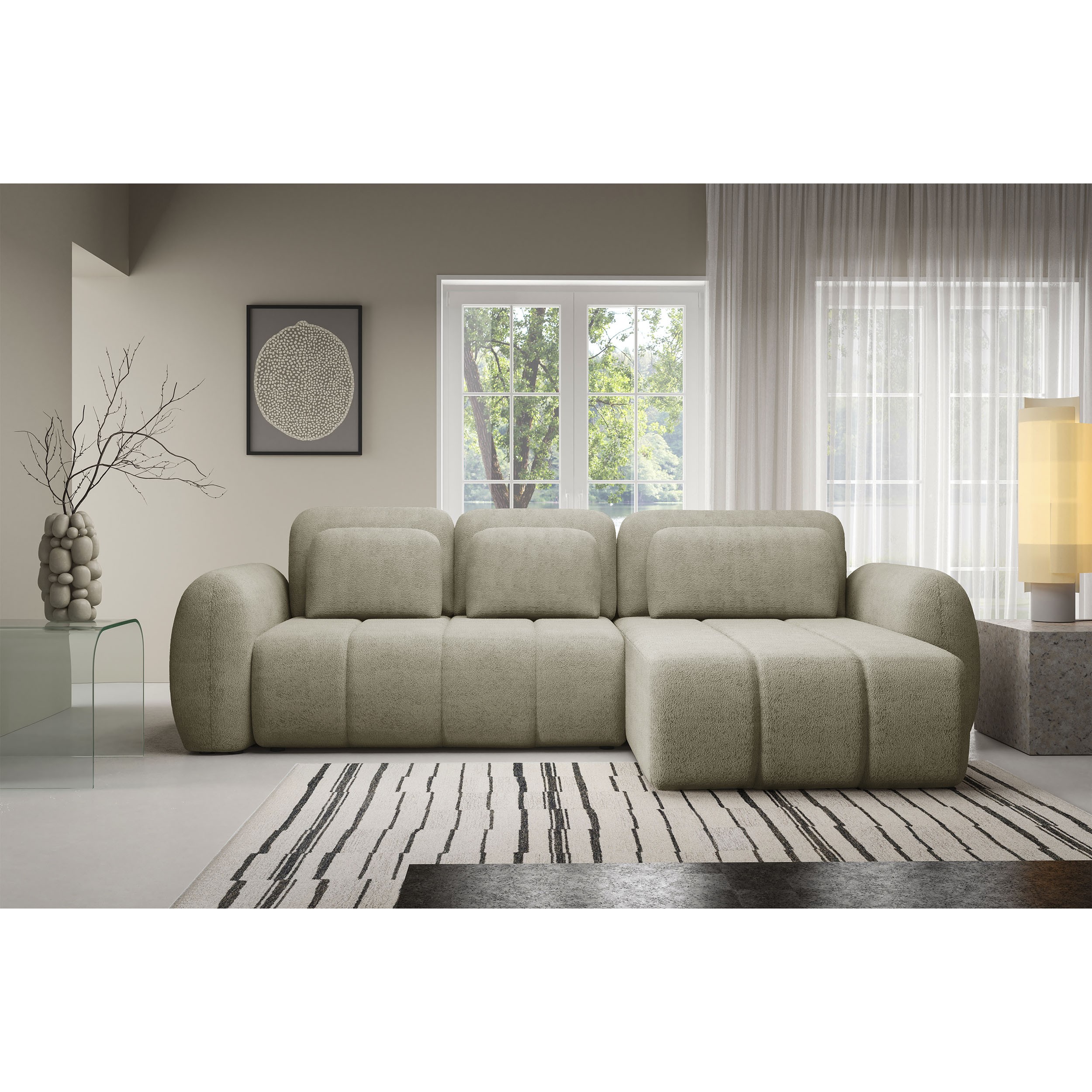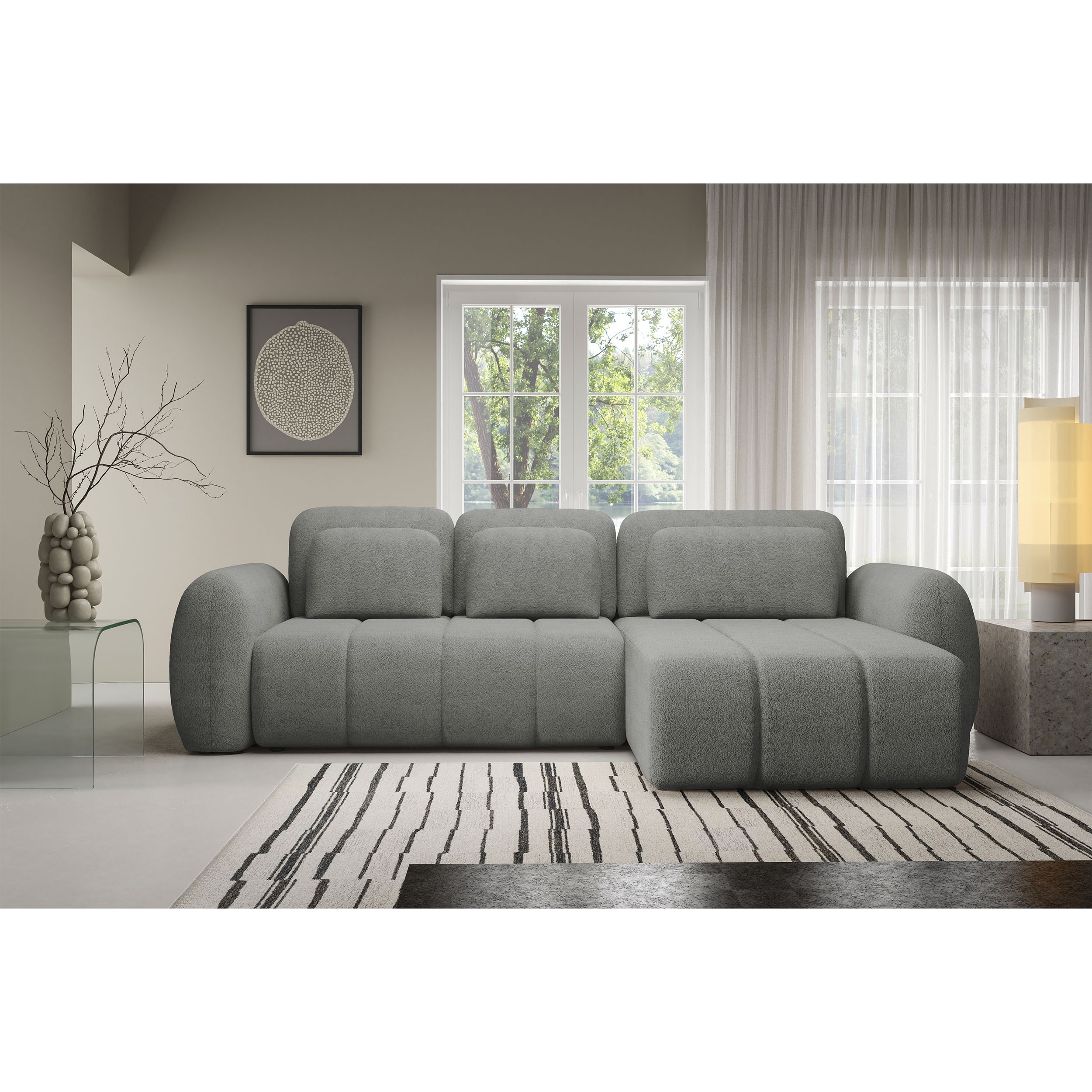 Modułowa kolekcja wypoczynkowa WOOGIE to możliwość zaplanowania swojej przestrzeni według własnych potrzeb. Przestronny i wygodny narożnik wykonany w mięciutkiej, przytulnej tkaninie barankowej boucle o nazwie Centaur jest cudownie miękki i wygodny. Swój niepowtarzalny wygląd zawdzięcza nie tylko wyjątkowej tkaninie, ale również miękkim, zaoblonym kształtom, które dodają ciepła, przytulności i są zdecydowanie bezpieczniejsze w obecności dzieci. Mebel, który idealnie wpisuje się w najnowsze trendy wnętrzarskie i potrzeby każdego z nas! Duży wybór kolorystyczny pozwoli na szybkie i łatwe dopasowanie do własnych potrzeb i aranżacji wnętrza. Siedzisko wypełnione sprężystą pianką oraz sprężynami jest wyjątkowo komfortowe oraz odporne na zgniecenia i odkształcenia, zapewniając długą żywotność i idealny wygląd mebla na długie lata. Tapicerowane plecki doskonale sprawdzają się, jeśli chcemy ustawić narożnik w centrum strefy dziennej. Połączenie doskonałego designu, wygody i funkcjonalności – nie zwlekaj dłużej!