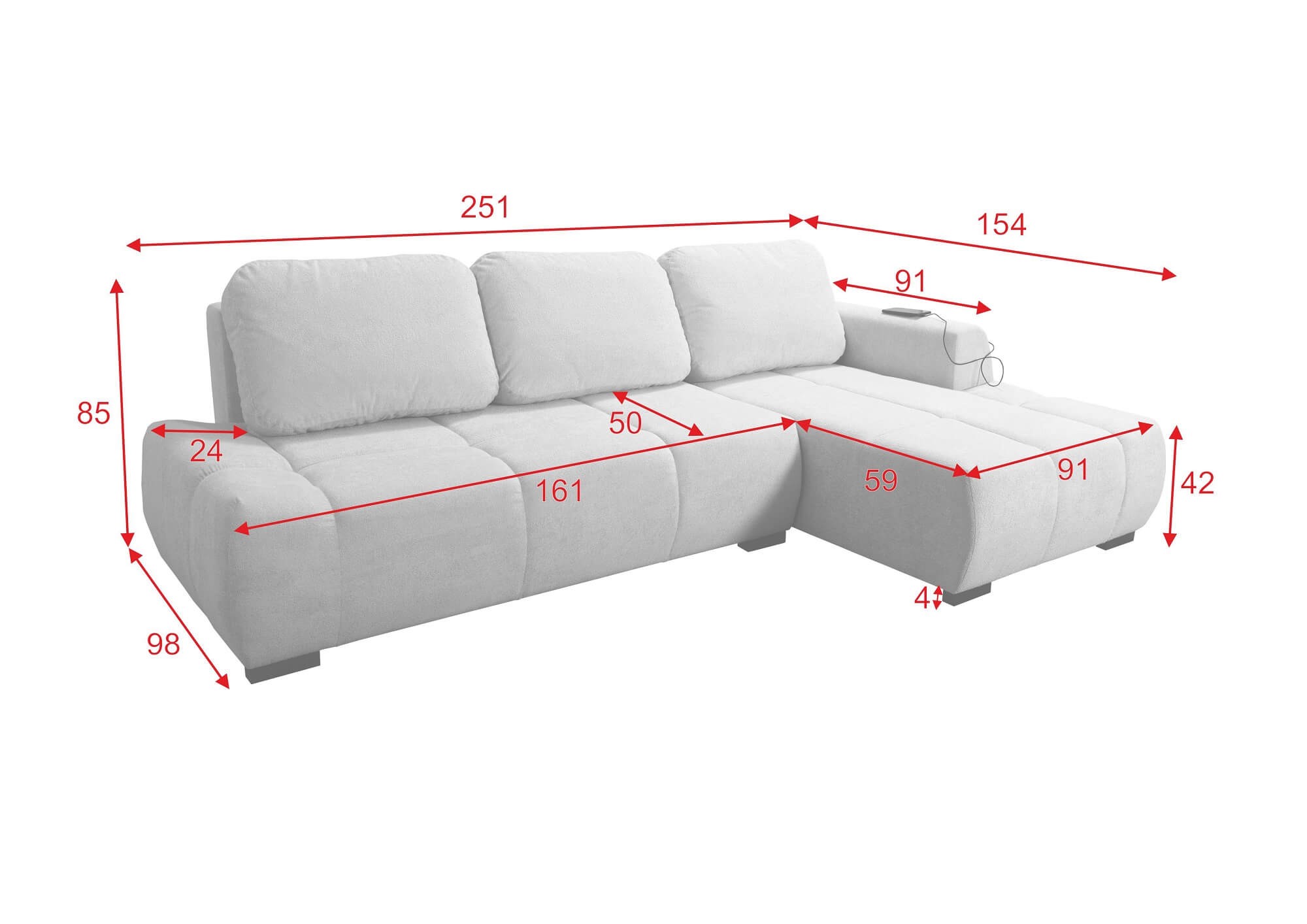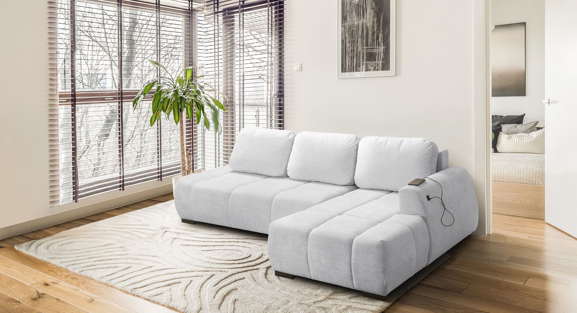 Narożnik rozkładany FRESKO | Funkcja spania, pojemnik, port USB | Kolor do wyboru