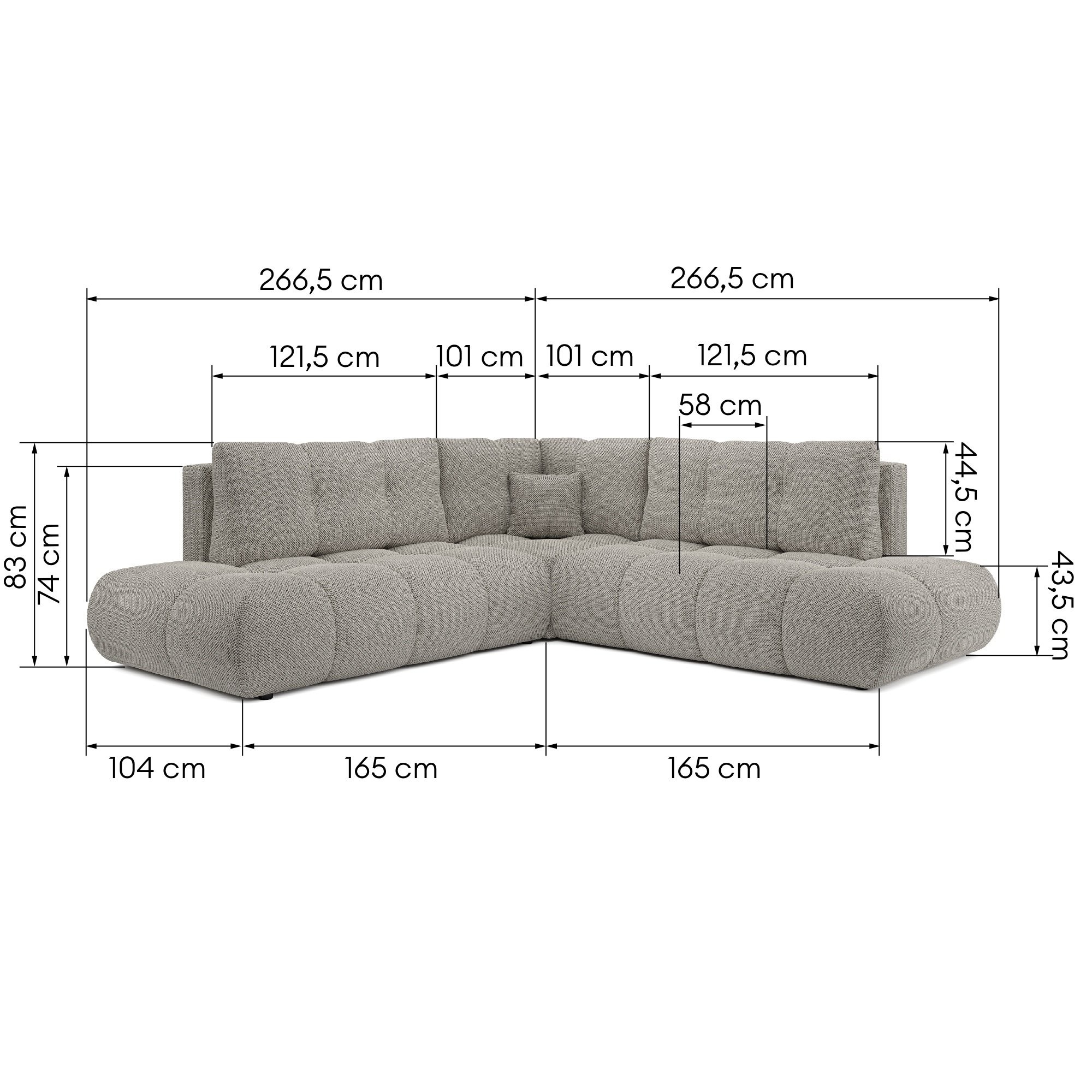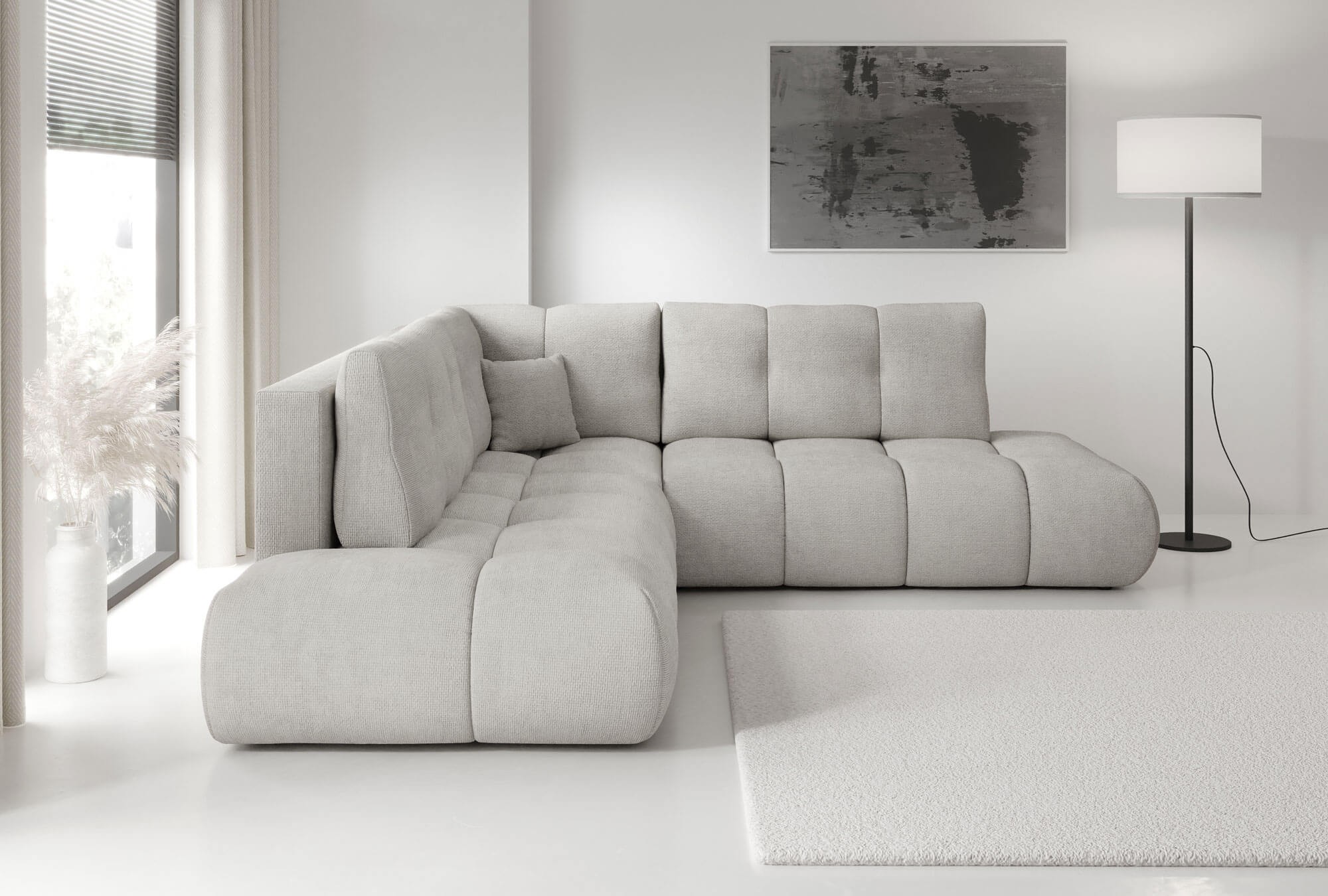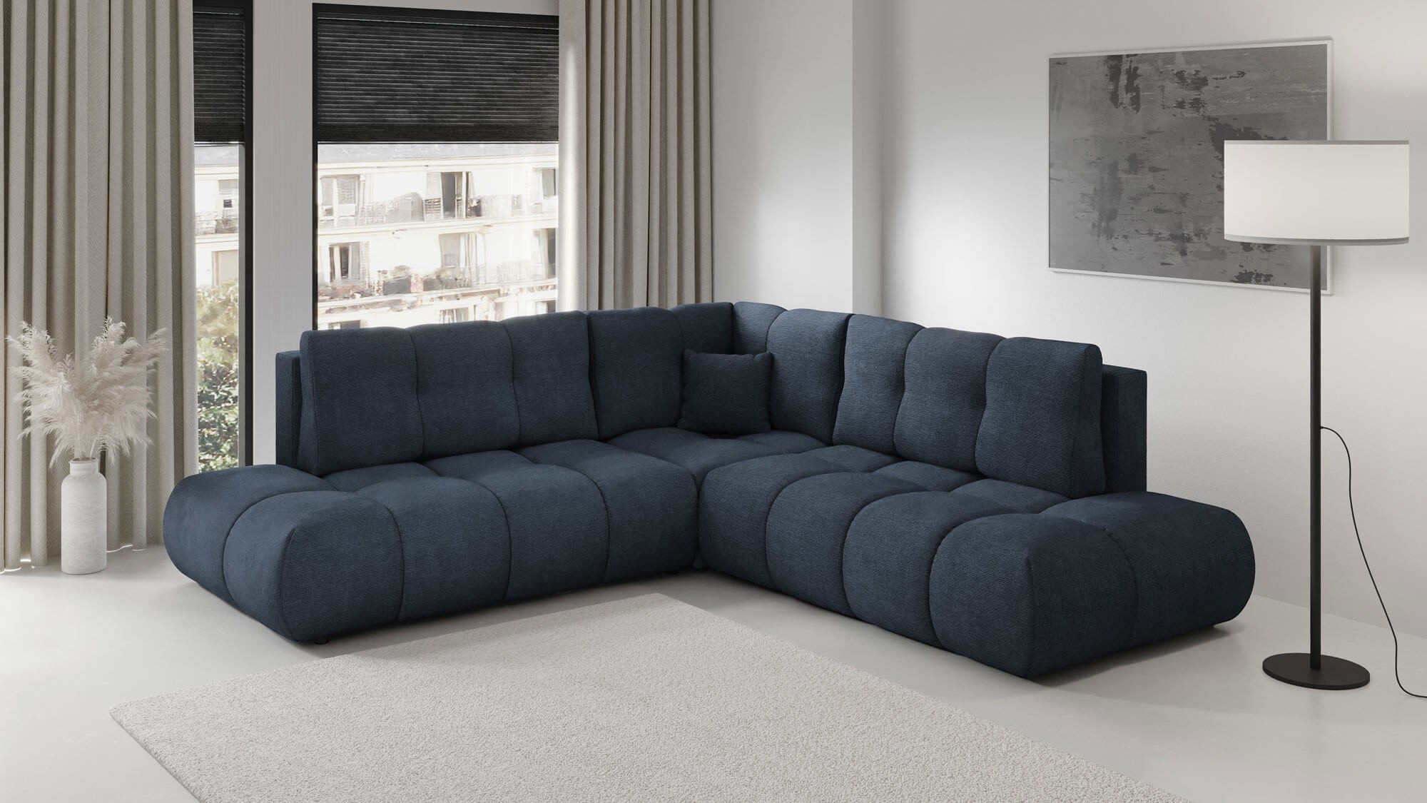 Narożnik rozkładany SOHO II to nowoczesny mebel, który od razu przyciąga uwagę swoim wyglądem. Miękkie, obłe kształty sprawiają, że salon staje się bardziej przytulny i elegancki. Charakterystyczne przeszycia dodają mu wyjątkowego stylu, a zarazem podkreślają solidność wykonania. Narożnik został zaprojektowany tak, aby był wygodny w codziennym użytkowaniu – miękkie poduchy i odpowiednio wyprofilowane siedzisko zapewniają komfortowy odpoczynek zarówno w dzień, jak i wieczorem. Dzięki funkcji rozkładania mebel w prosty sposób zmienia się w przestronne miejsce do spania, a pojemnik na pościel pomaga utrzymać porządek w salonie. Soho II to narożnik, który łączy w sobie funkcjonalność, nowoczesny design i wygodę na co dzień.