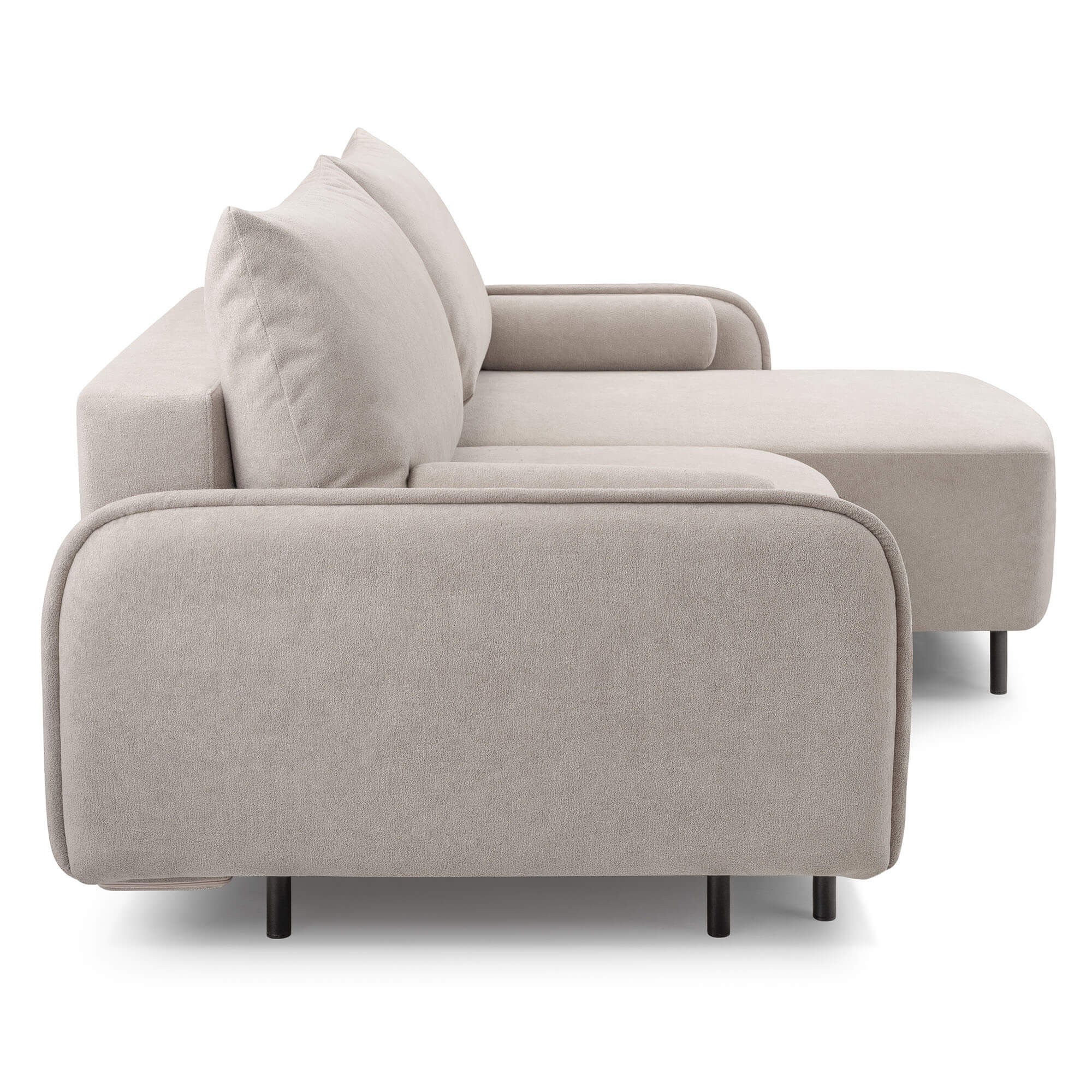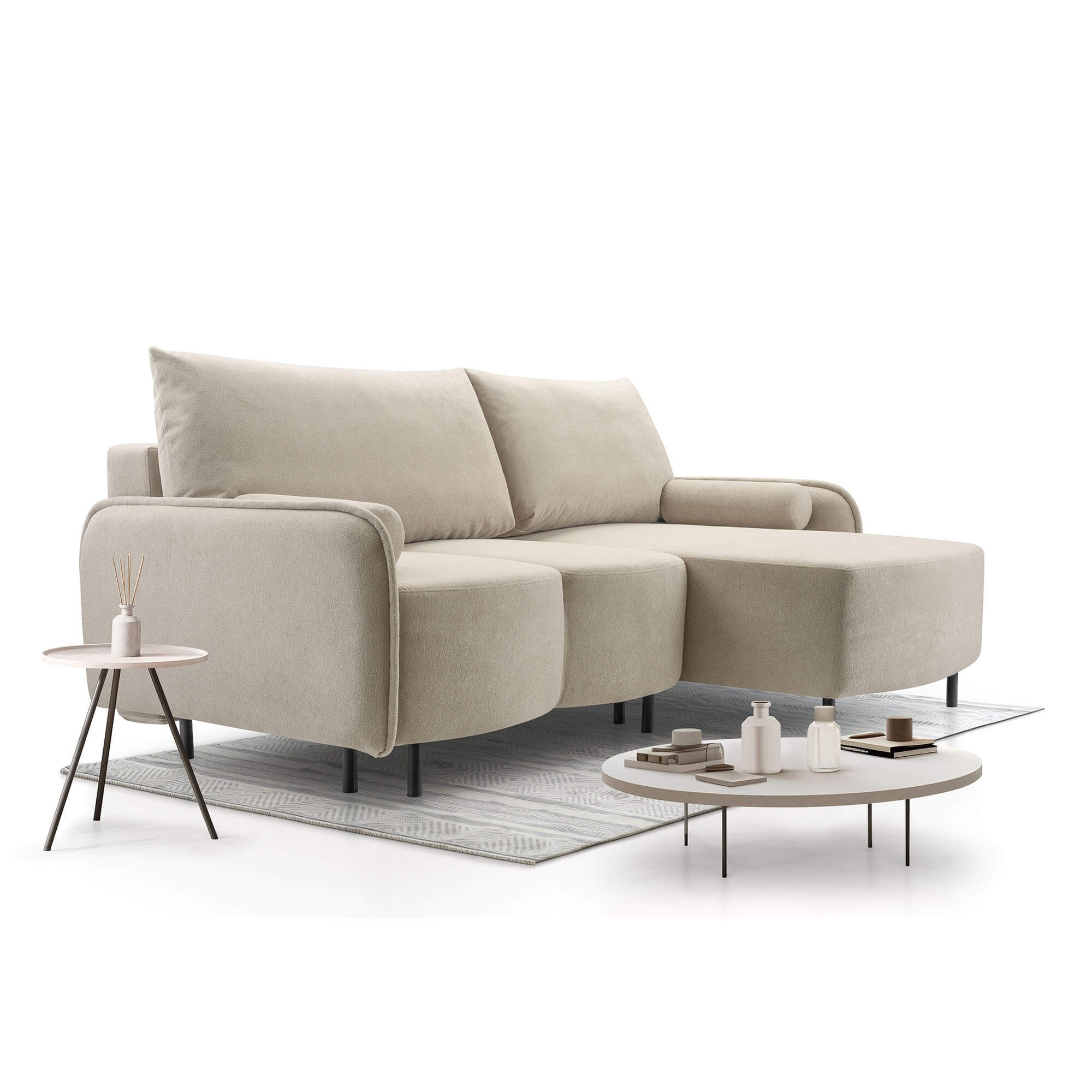 Narożnik rozkładany Tini to nowoczesny i funkcjonalny mebel, który doskonale sprawdzi się w każdym salonie. Łączy w sobie elegancki design z praktycznymi rozwiązaniami, dzięki czemu zapewnia wygodę na co dzień i podczas spotkań z bliskimi. Ten model został zaprojektowany z myślą o osobach ceniących komfort oraz estetykę. Narożnik Tini posiada funkcję spania, co pozwala w szybki i prosty sposób zamienić go w wygodne łóżko dla gości. Wysokiej jakości wypełnienie siedziska gwarantuje odpowiednie podparcie i komfort użytkowania, a solidna konstrukcja zapewnia trwałość na wiele lat. Dodatkowym atutem jest pojemnik na pościel, który ułatwia przechowywanie i pomaga utrzymać porządek w salonie.