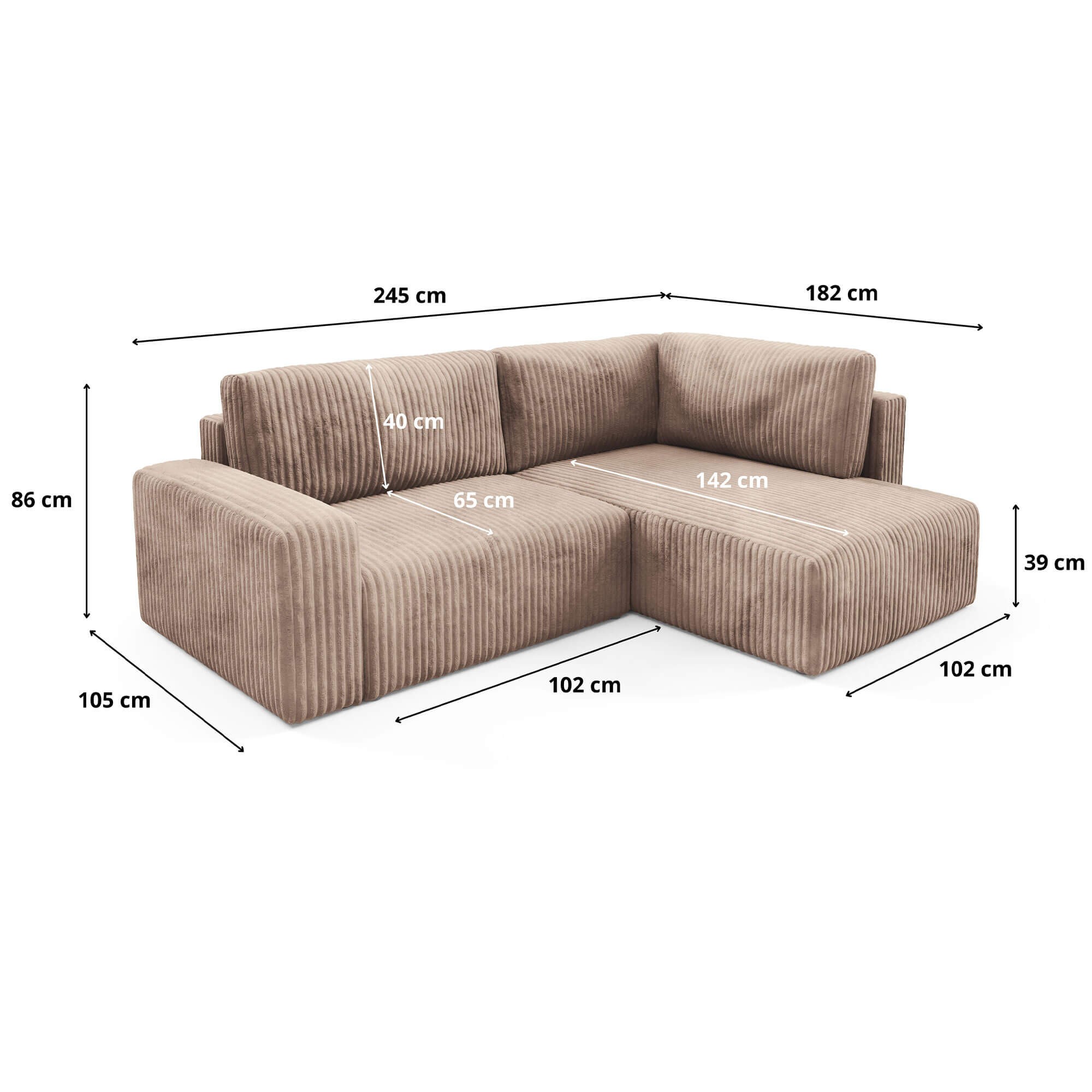 Narożnik sztruksowy BERGE LR | Kolor do wyboru