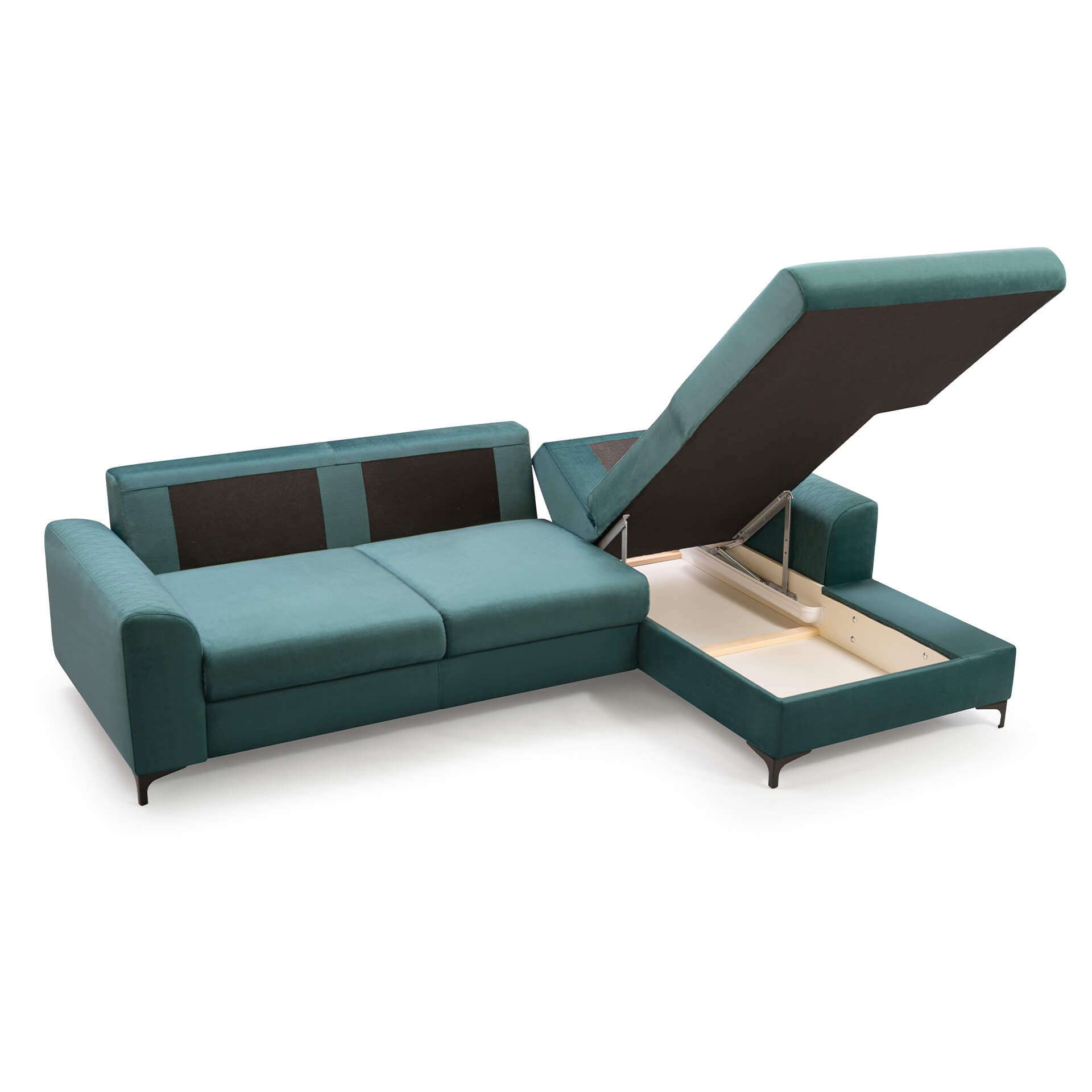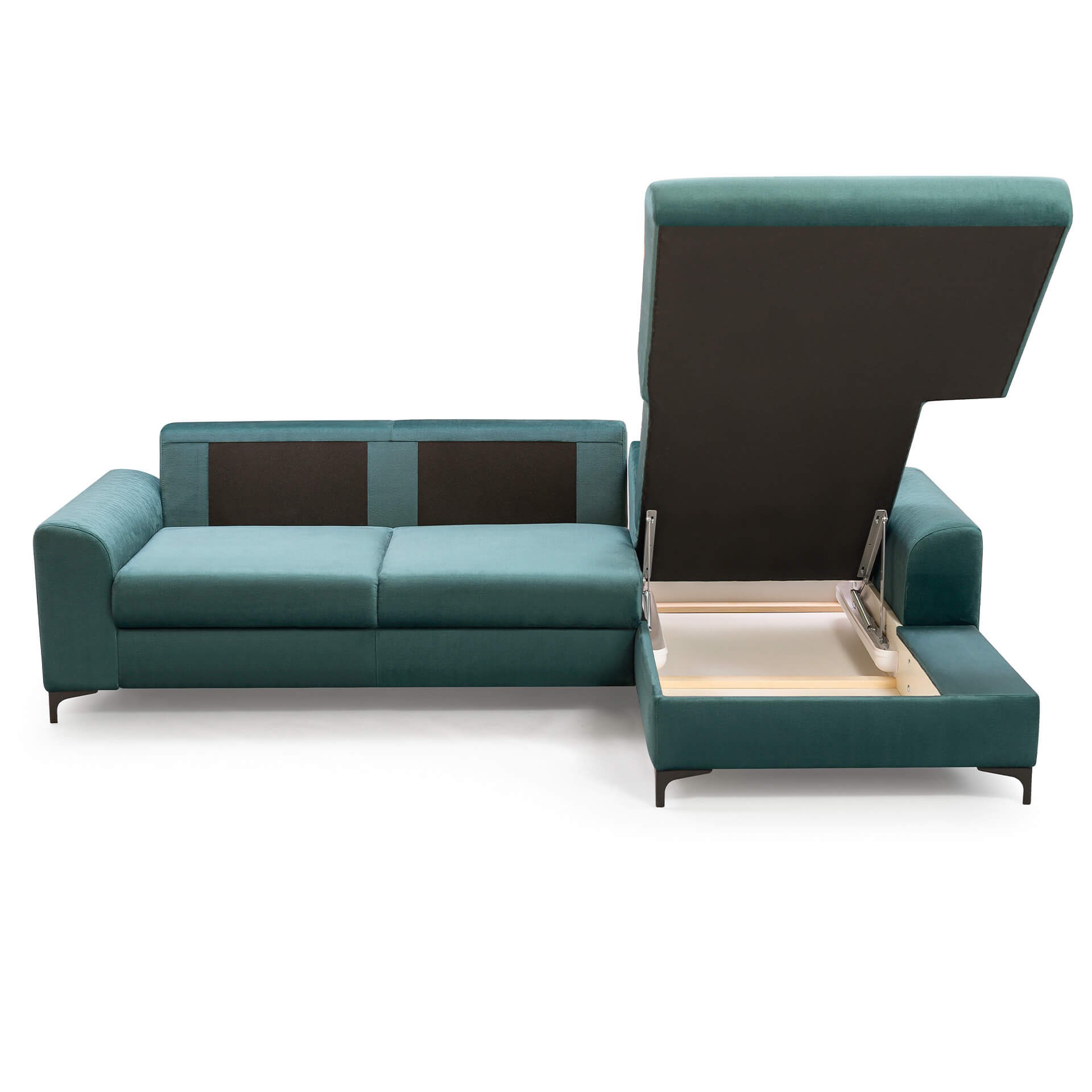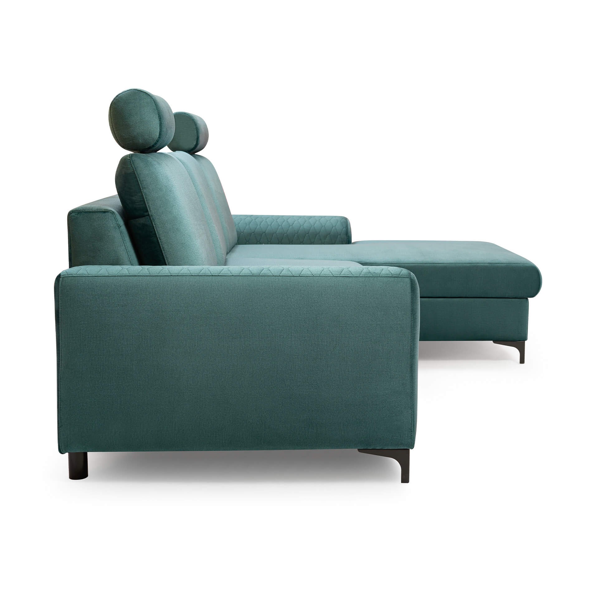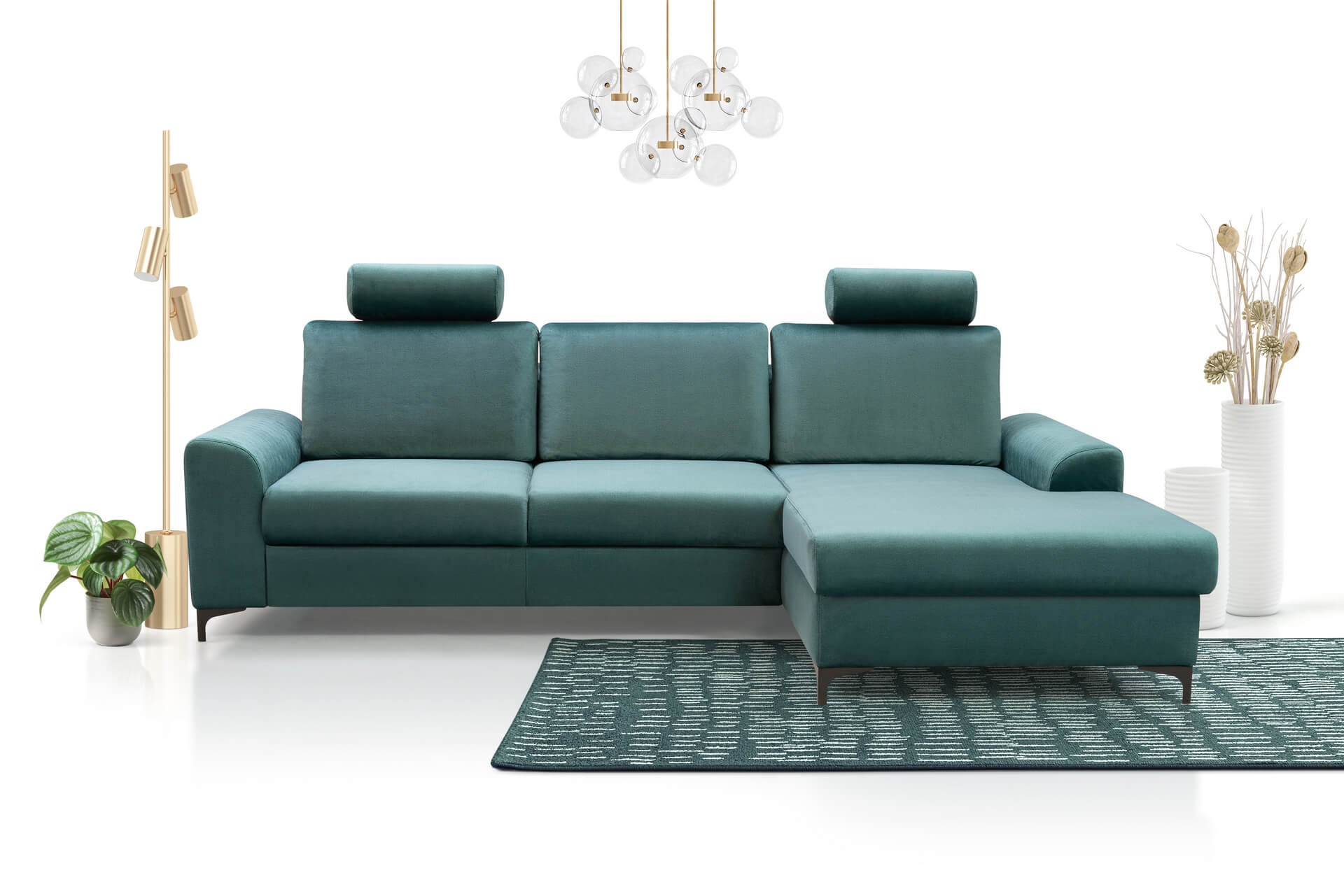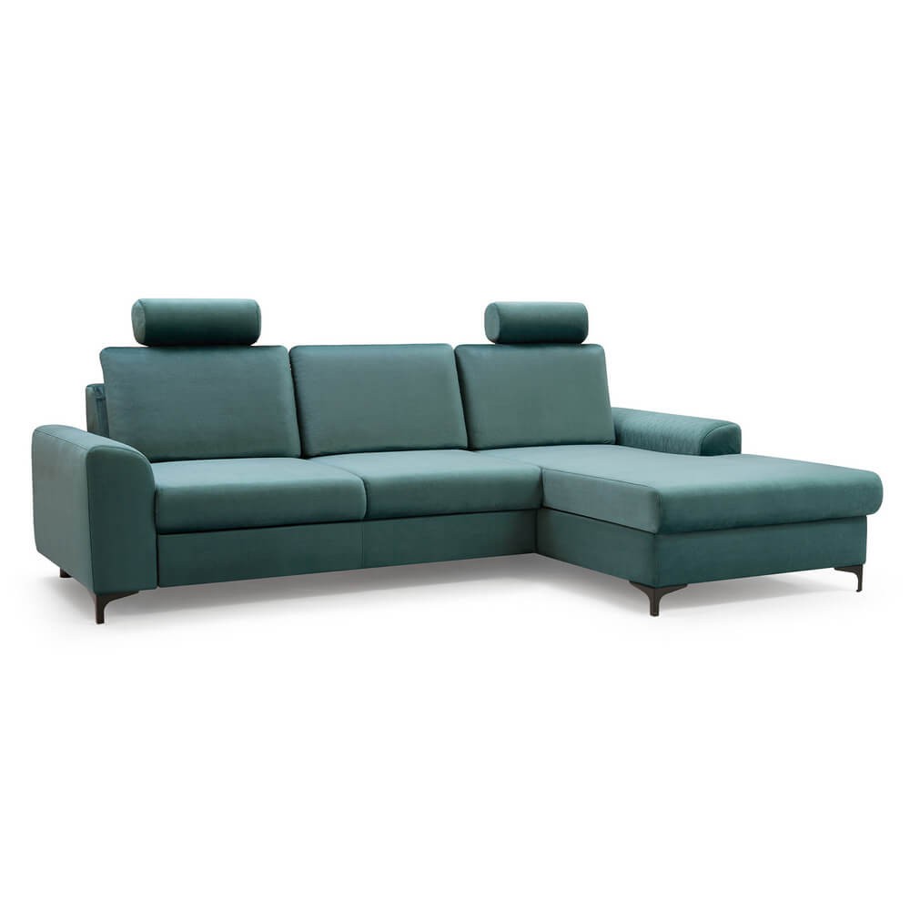 Stylowy i funkcjonalny narożnik w kształcie L zadowoli fanów nowoczesnego stylu. Prosta forma narożnika w połączeniu z małymi nóżkami zyskała oryginalny charakter.