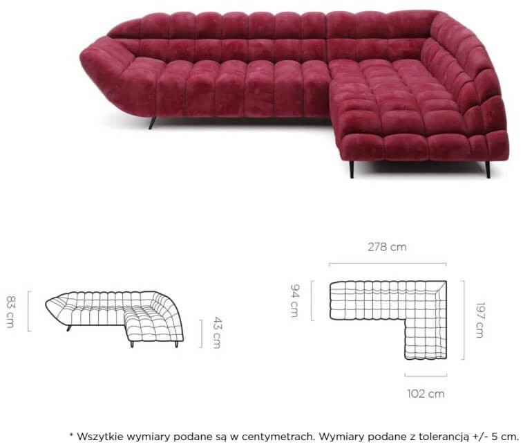 Produkt tworzony pod indywidualne zamówienie klienta. Tkaniną standardowa jest tkanina Riviera kolor 91 (szary). W przypadku wybrania innego koloru, tkaniny lub zmiany wariantów domyślnych nie ma możliwości zwrotu produktu. Przy zamówieniach realizowanych z płatnością przy odbiorze pobieramy zaliczkę w wysokości 10% kwoty zamawianego produktu. W razie wątpliwości doradzamy zamówienie darmowej próbki materiału >> [email protected] lub telefonicznie poprzez nasza infolinię. Wszelkie pytania prosimy kierować na maila [email protected]