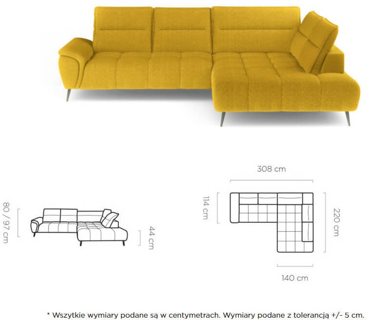 Narożnik z elektrycznie wysuwanym siedziskiem MONTANA L | kolory do wyboru
