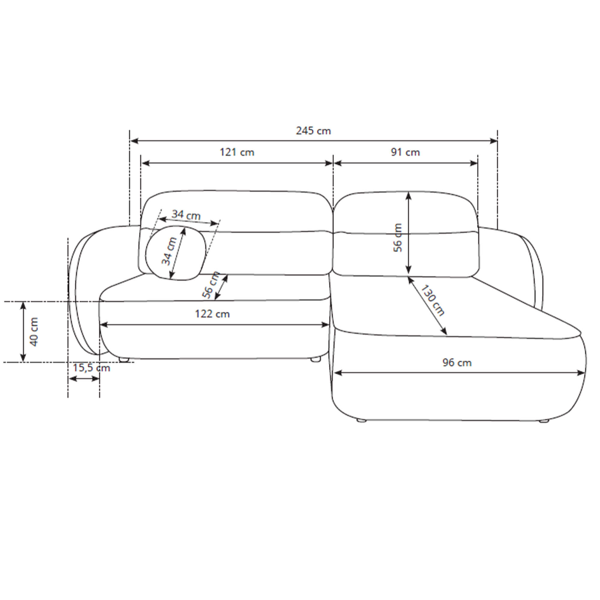 BALTO wyróżnia się nowoczesną, organiczną bryłą z delikatnie zaokrąglonymi bokami, co nadaje mu lekkości i wyjątkowego charakteru. Taki design sprawia, że narożnik staje się centralnym punktem salonu. Model dostępny jest w wersji prawo- lub lewostronnej, co pozwala idealnie dopasować go do układu pomieszczenia i indywidualnych potrzeb.