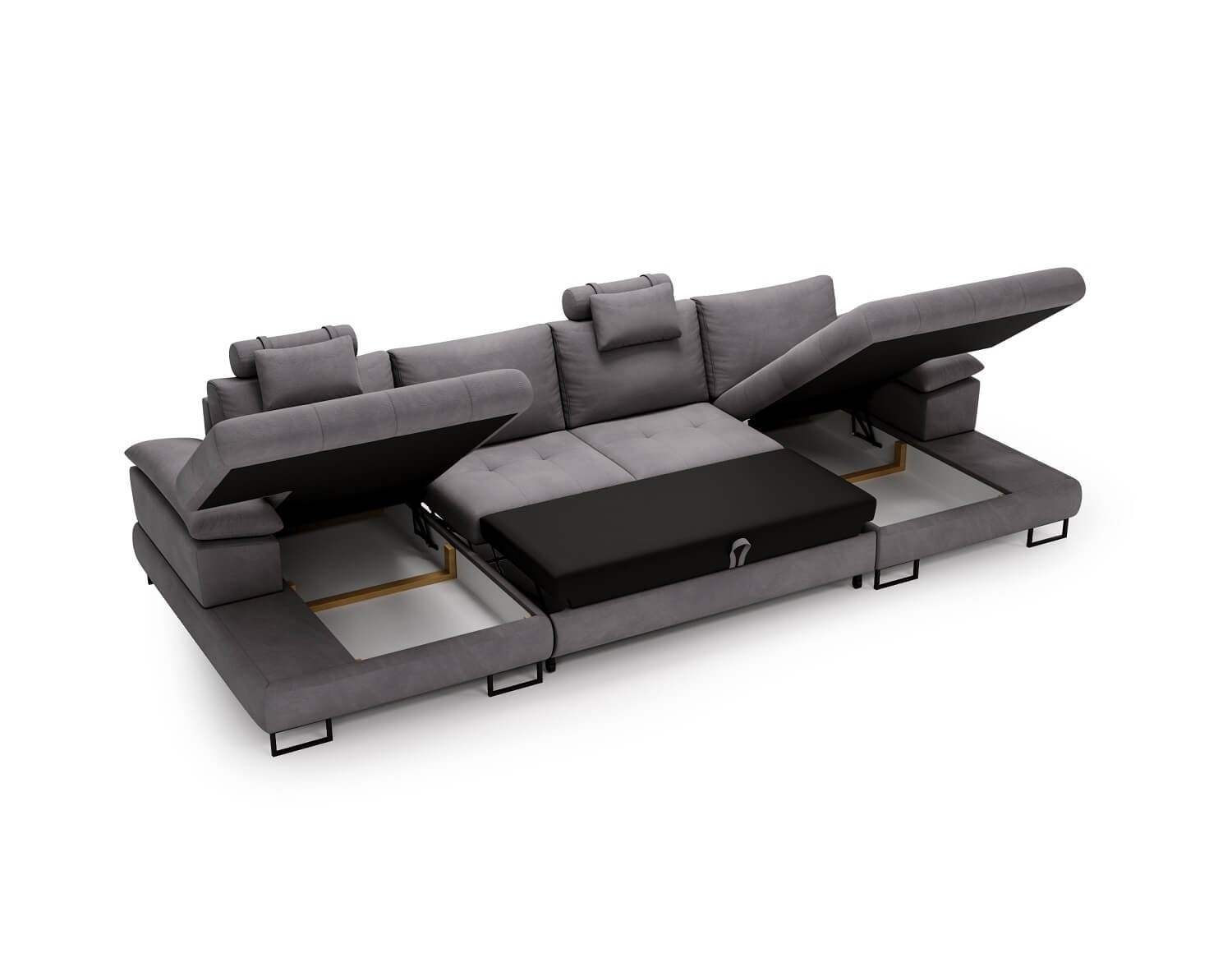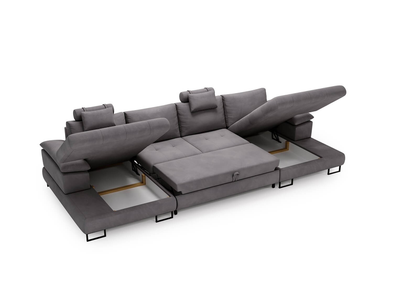 Duży narożnik w kształcie U CUBA funkcja spania, 2 pojemniki na pościel