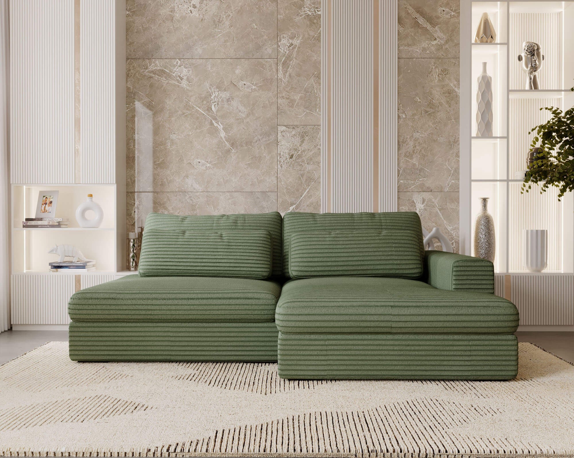 Narożnik LEIDA w tkaninie TILIA 37 to doskonały wybór dla osób, które pragną połączyć nowoczesny design z codziennym komfortem. Jego elegancka forma w kształcie litery L idealnie wpisuje się w aktualne trendy wnętrzarskie, a jednocześnie zapewnia wygodne miejsce do wypoczynku – zarówno w ciągu dnia, jak i wieczorem. Dzięki możliwości wyboru wersji prawo- lub lewostronnej, narożnik bez problemu dopasujesz do układu swojego salonu, tworząc przytulną i funkcjonalną przestrzeń. LEIDA to nie tylko stylowy element wystroju, ale także praktyczne rozwiązanie do codziennego użytku. Wbudowana funkcja spania sprawia, że w razie potrzeby szybko zmienisz go w wygodne miejsce do snu, a pojemnik na pościel pozwala utrzymać porządek i zawsze mieć pod ręką to, czego potrzebujesz. Subtelne detale i staranne wykończenie podkreślają jego estetykę, a przyjemna w dotyku tkanina TILIA 37 nadaje całości przytulnego charakteru. To mebel, który idealnie łączy funkcjonalność z elegancją – stworzony z myślą o codziennym komforcie, a jednocześnie przyciągający uwagę swoim wyglądem. Jeśli szukasz narożnika, który będzie zarówno praktyczny, jak i stylowy, model LEIDA spełni wszystkie Twoje oczekiwania.