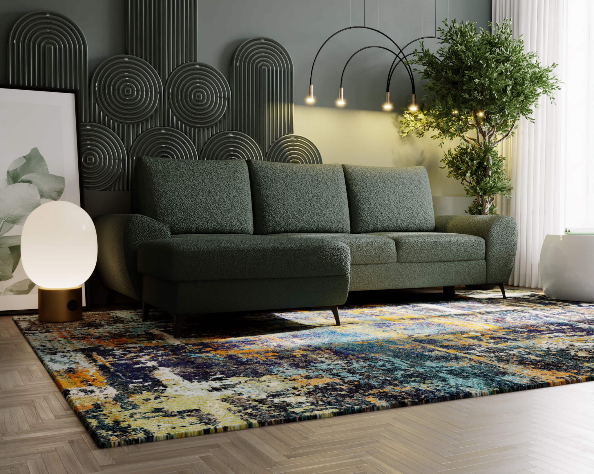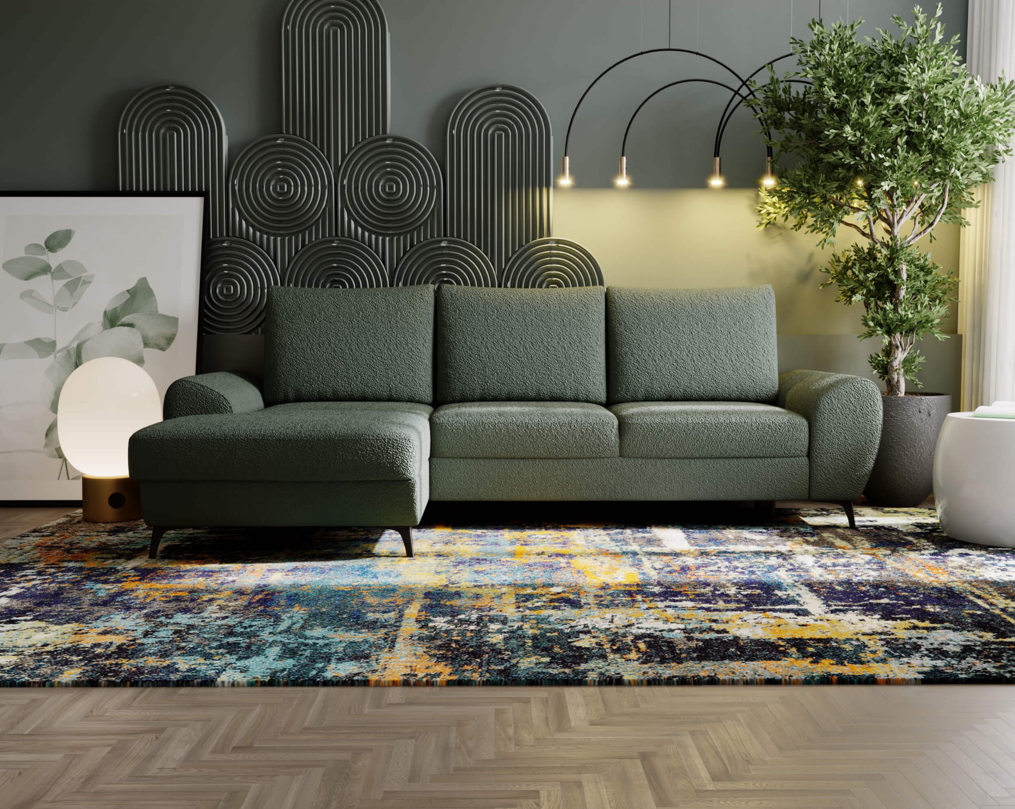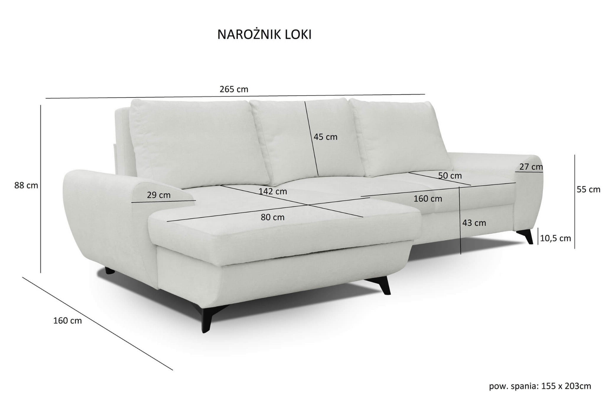 Narożnik na nóżkach LOKI funkcja spania, pojemnik, loftowy design