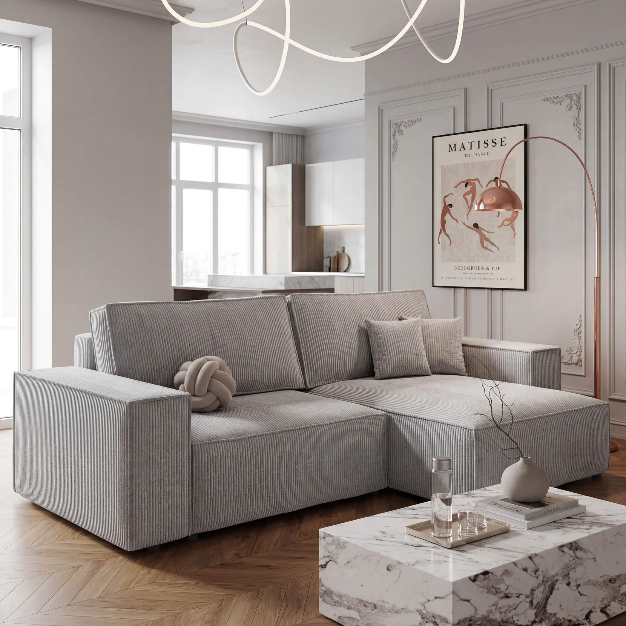 - Stylowy narożnik wypoczynkowy w kształcie L
