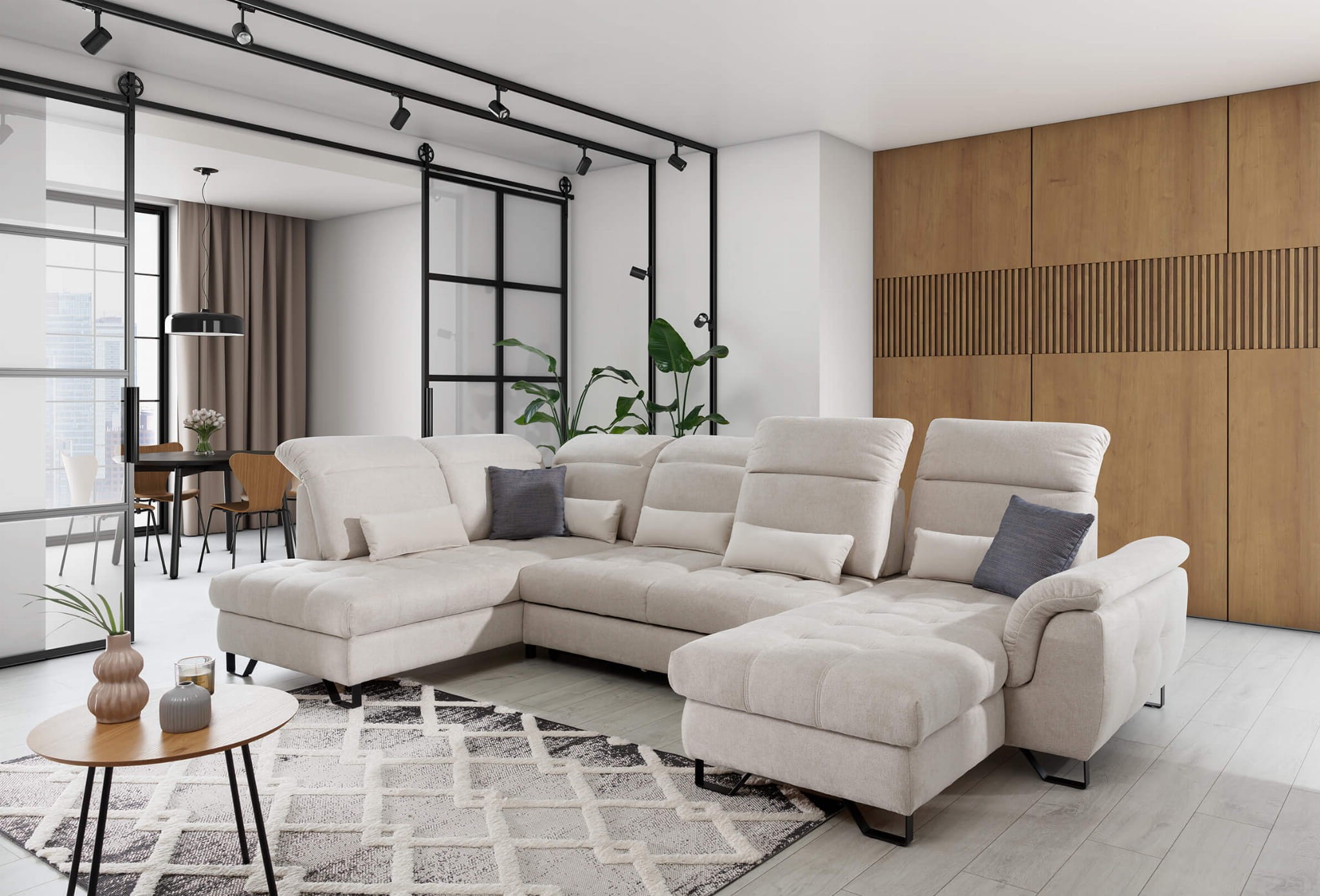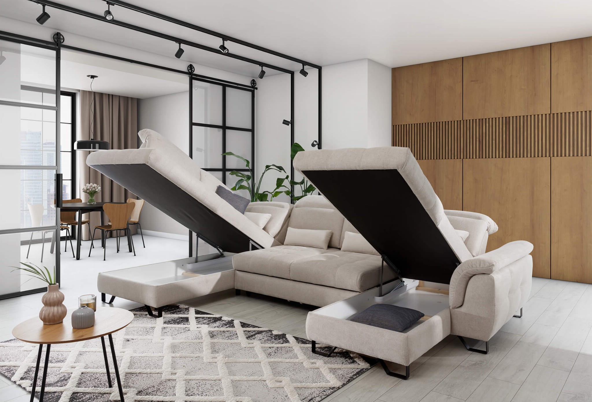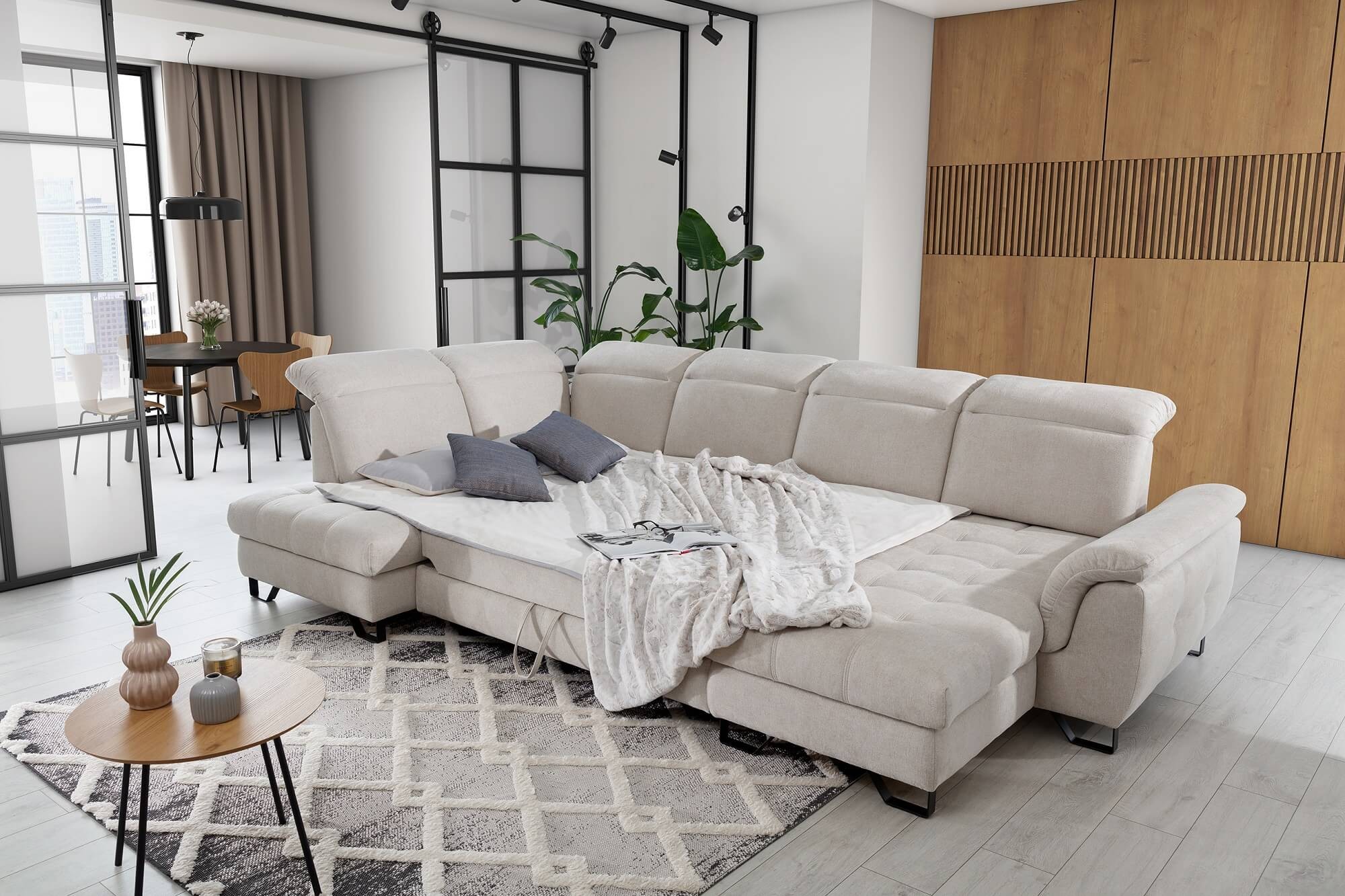 Narożnik z funkcją spania i pojemnikiem DIOVANI U | OSB + 2F + OS | Kolor do wyboru