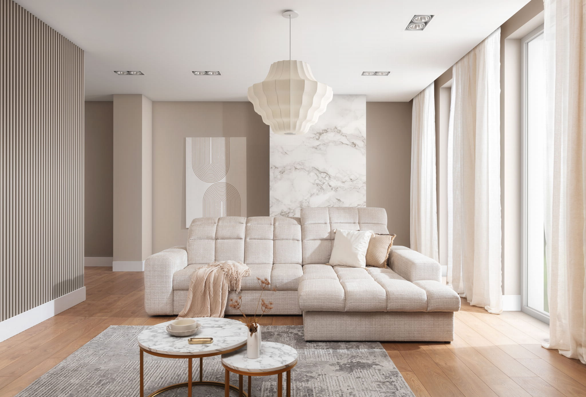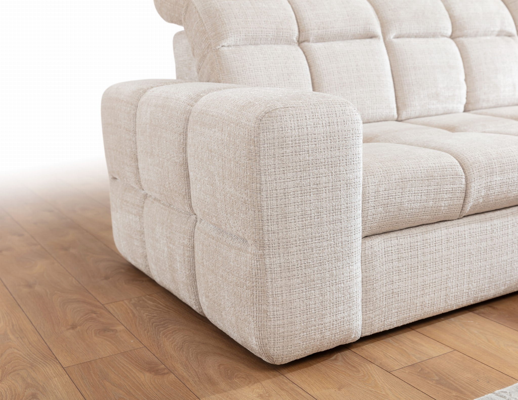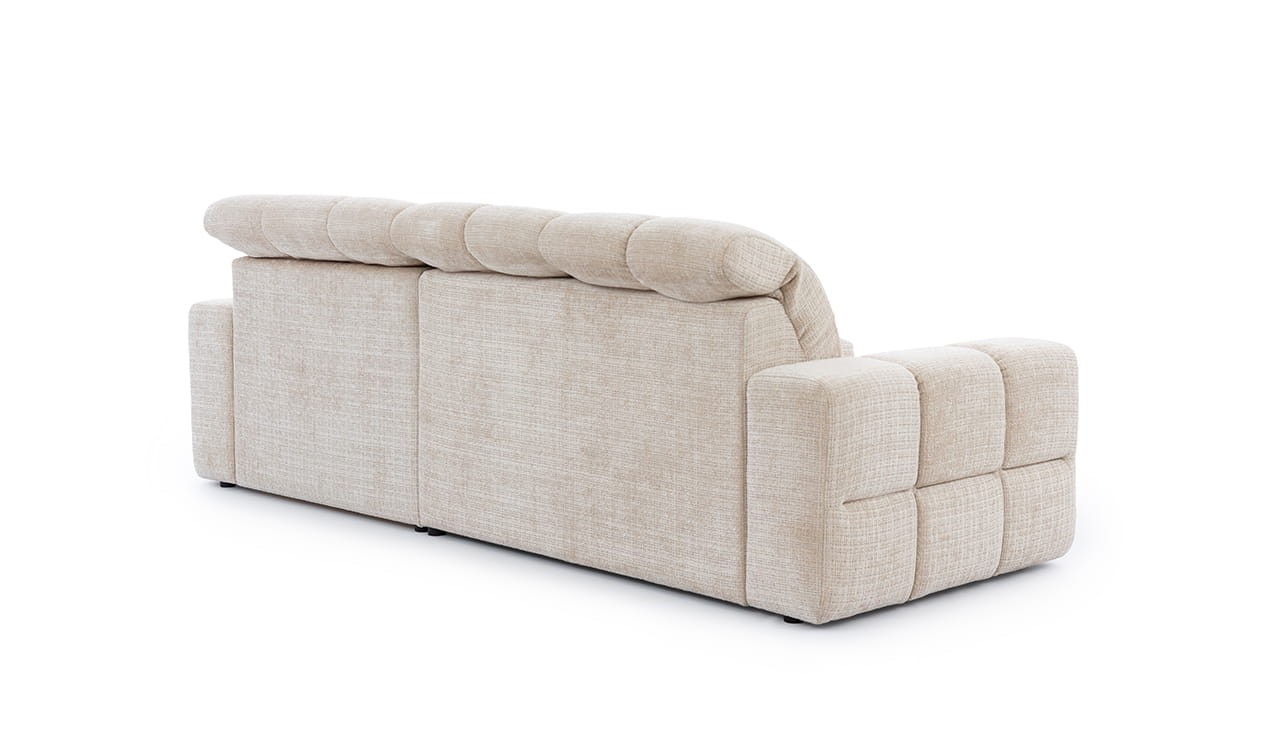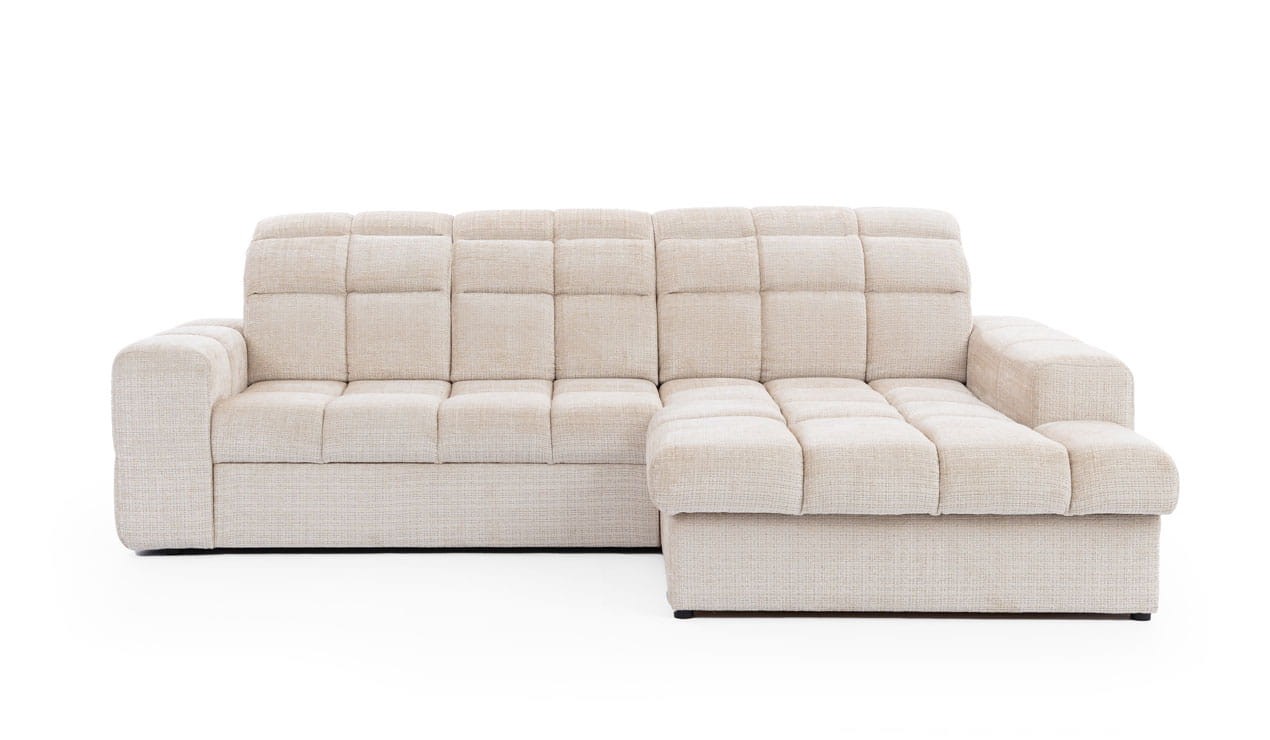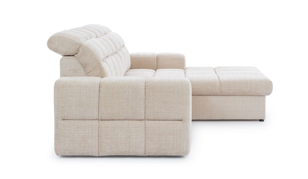 Wyjątkowy narożnik LAGO to doskonała opcja dla osób, które poszukują wygodnego miejsca do wypoczynku oraz cenią sobie elegancką estetykę. Wykonanie z wysokiej jakości materiałów poddanych wyselekcjonowaniu sprawia, że jest solidny i wytrzymały, idealnie nadający się do codziennego relaksu z bliskimi w salonie lub pokoju dziennym oraz jest idealny do wypoczynku nocnego. Mechanizm rozkładania typu delfin ułatwia przekształcenie narożnika w pełnowymiarową przestrzeń do spania, dzięki czemu narożnik spełni zarówno funkcję wypoczynku, jak i łóżka dla gości. To niezwykle szczególnie trafione rozwiązanie w przypadku braku miejsca w niewielkim mieszkaniu, kawalerce czy studio. Dodatkowym atutem modelu LAGO są wygodne, rozkładane zagłówki, które dostosujemy do własnych potrzeb – wysokości i kąta oparcia. Szerokie podłokietniki wraz z otomaną (strona do wyboru) to wspaniałe podparcie dla całego ciała i dużo miejsca dla wszystkich wypoczywających wspólnie. Charakterystyczne zdobienia w postaci miękkiej i aksamitnej dla ciała tkaniny oraz głębokich przeszyć w kwadraty nadaje całości wyrafinowanego charakteru.