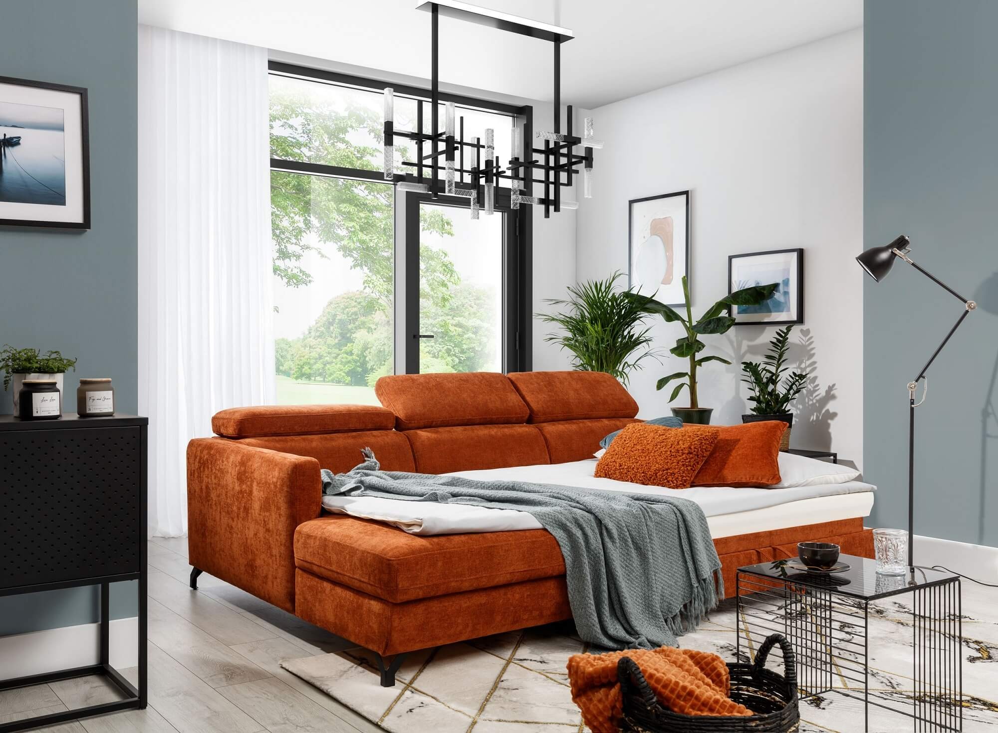 Narożnik z funkcją spania LAROZZO – nowoczesny styl, duży wybór kolorów