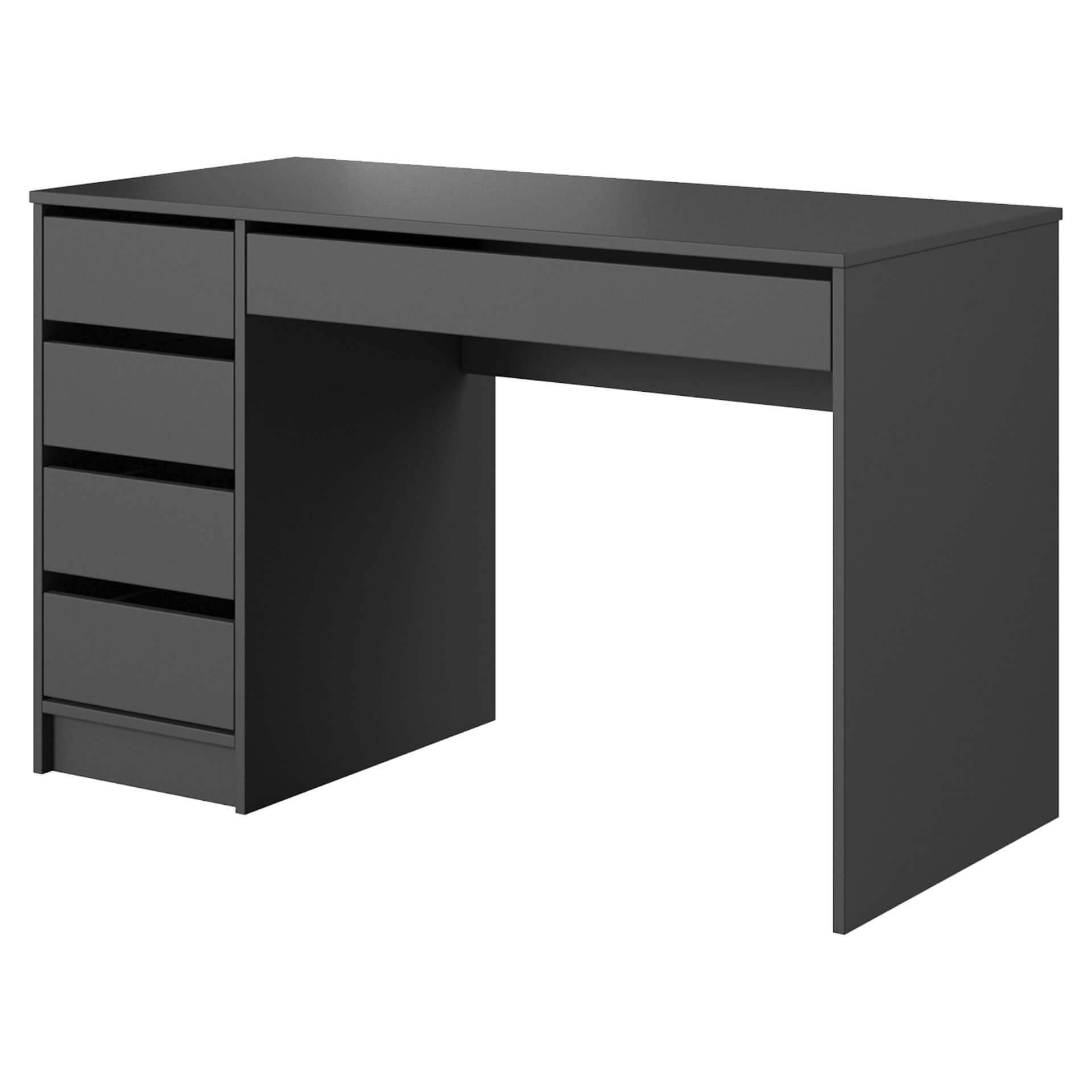 Nowoczesne biurko z szufladami ADA to znakomity dodatek do pomieszczeń, w którym pragniesz urządzić kącik do pracy, nauki czy małego, kobiecego spa. Dzięki niemu przechowywanie stanie się łatwiejsze, a praca znacznie wygodniejsza i efektywniejsza. Biurko wyposażone jest w 5 szuflad, które ułatwią organizację dokumentów, książek, przyborów biurowych czy też kosmetyków. W Twoim gabinecie, biurze czy sypialni w końcu zagości ład, a wnętrze zyska przepiękny dodatek w nowoczesnym wydaniu. Nowoczesne biurko z szufladami w kolorze antracytowym prezentuje się wyśmienicie. To zasługa eleganckiego koloru, subtelnego blasku i wysokiej jakości wykonania! To świetne rozwiązanie dla osób, które poszukują praktycznego mebla nie tylko do pracy, ale również nauki, codziennych obowiązków lub makijażu. Nowoczesne biurko z szufladami idealnie zastąpi toaletkę kosmetyczną!