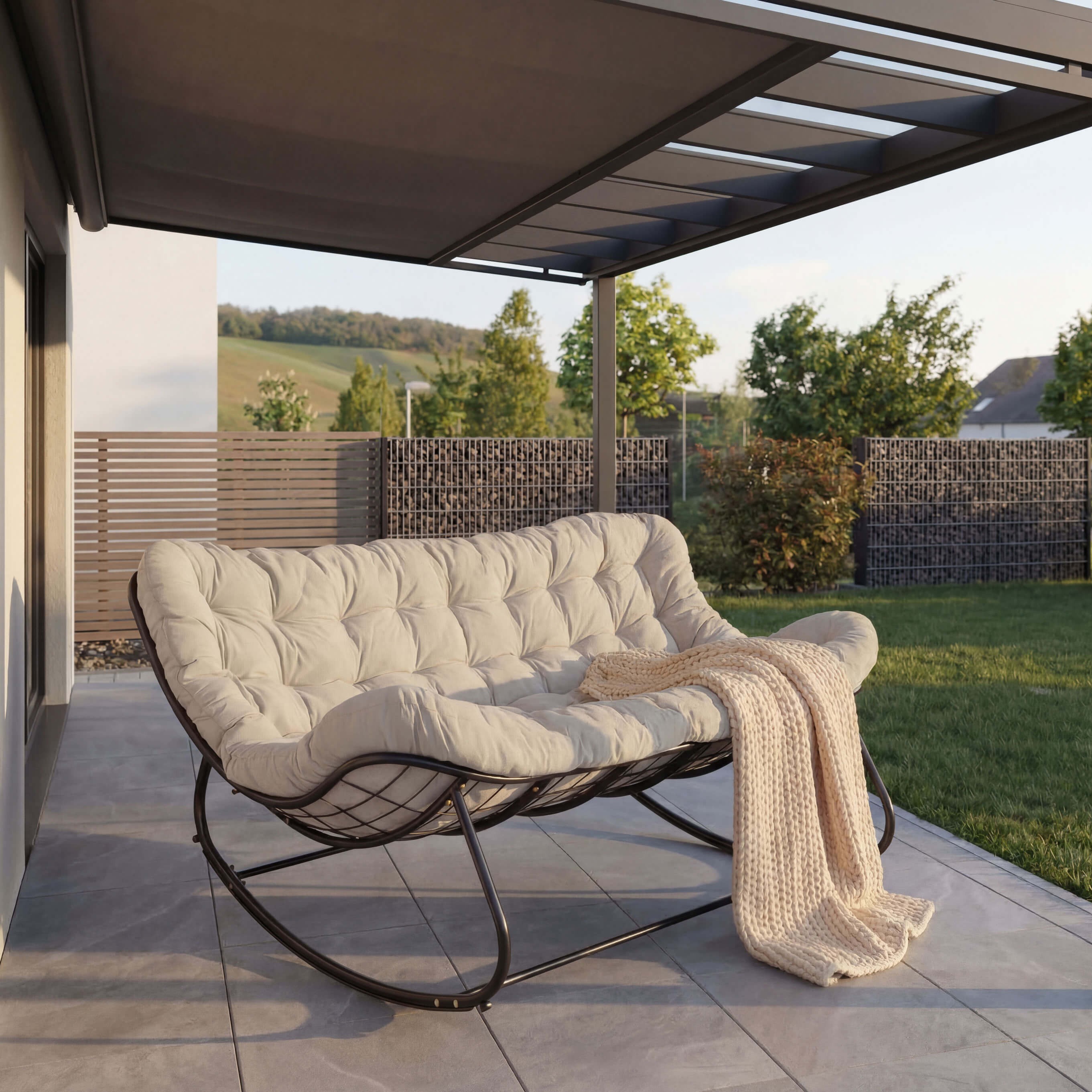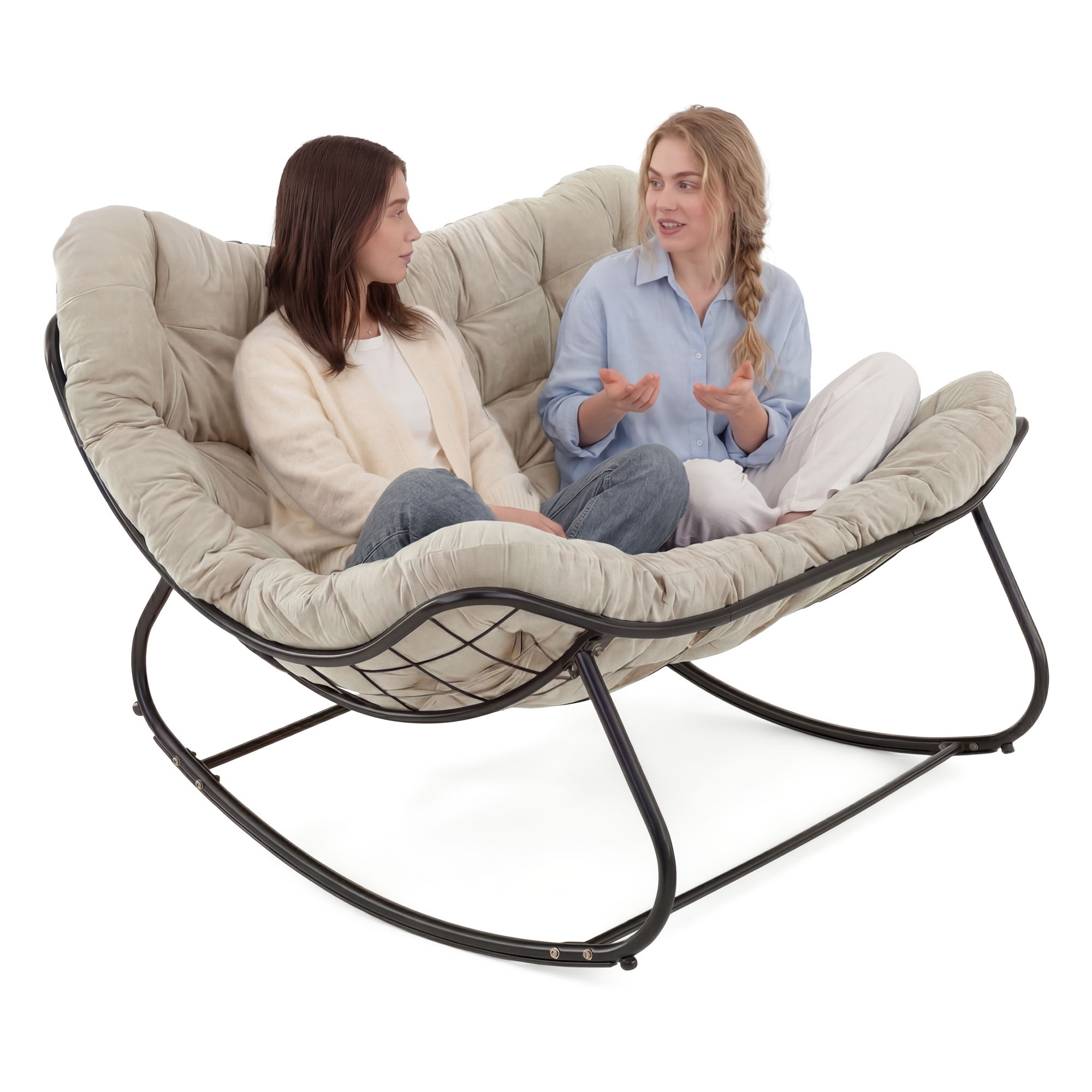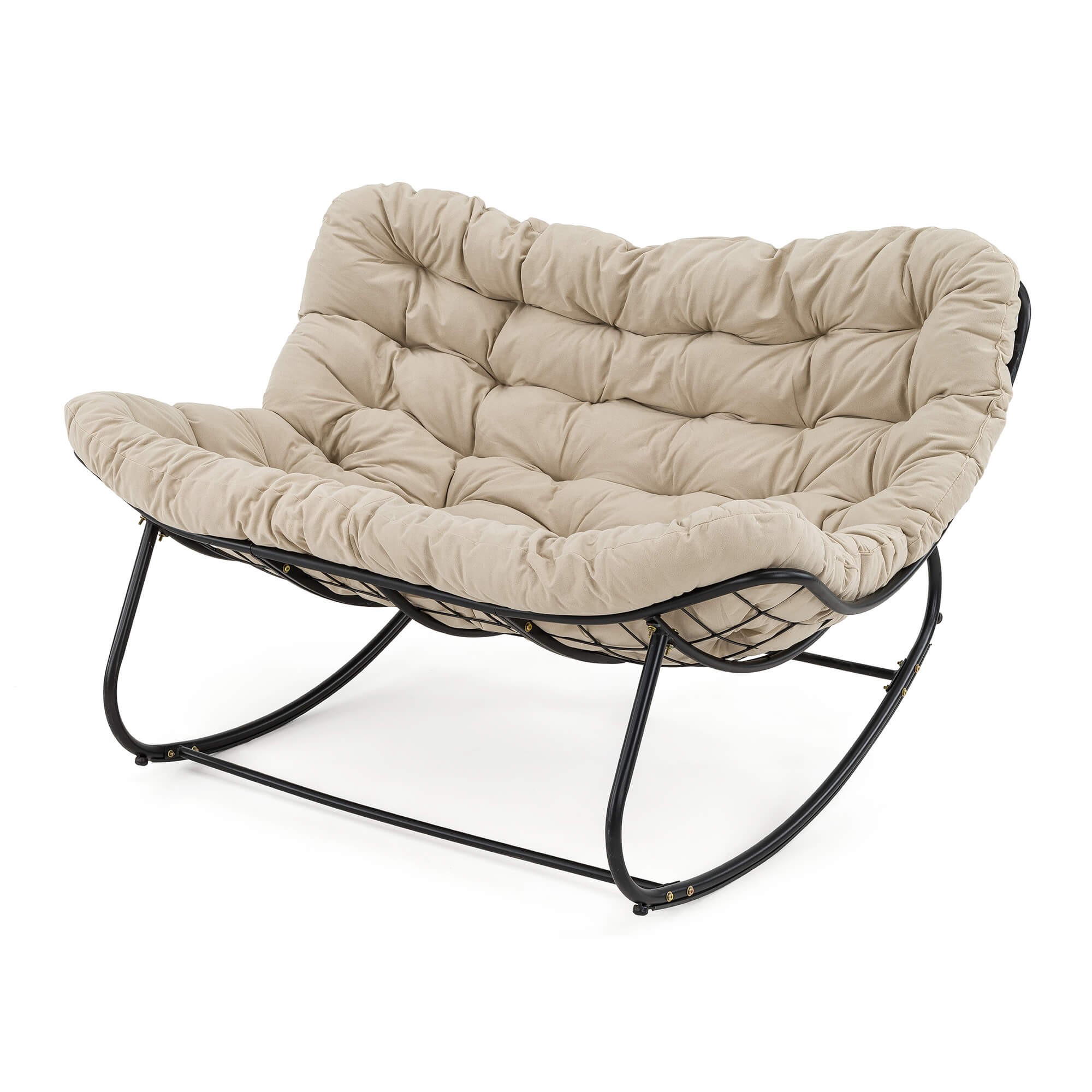 Ogrodowa sofa, fotel 2 osobowy bujany, poduszka beżowa #12A