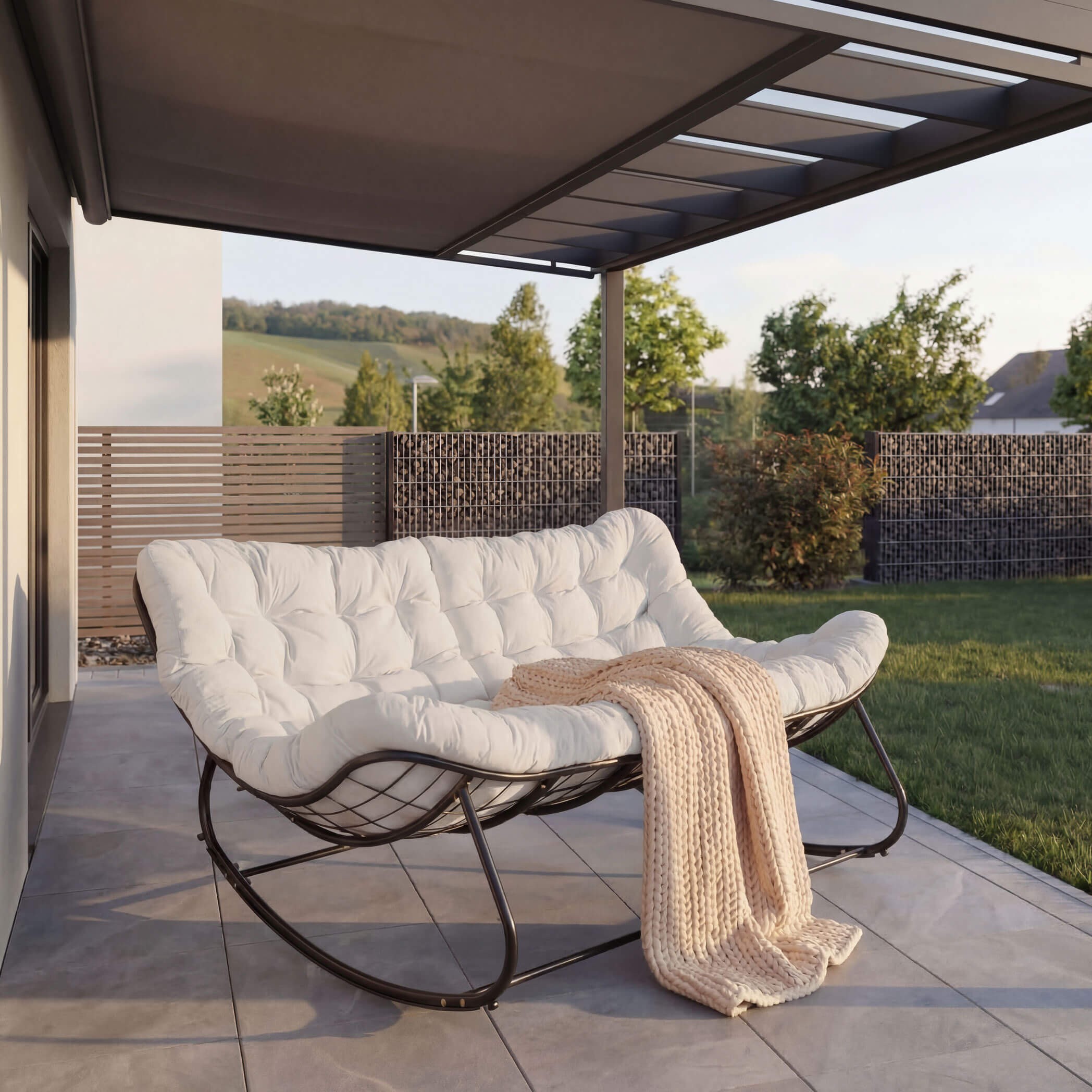Ogrodowa sofa bujana z technorattanu – Stylowa Przestrzeń Relaksu dla Ciebie i Bliskich