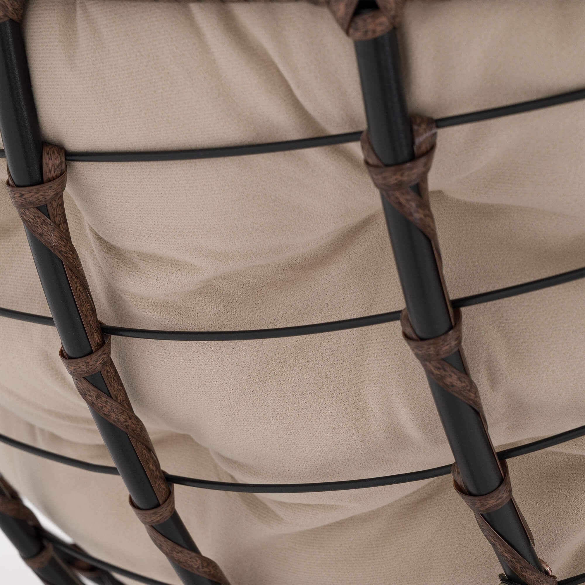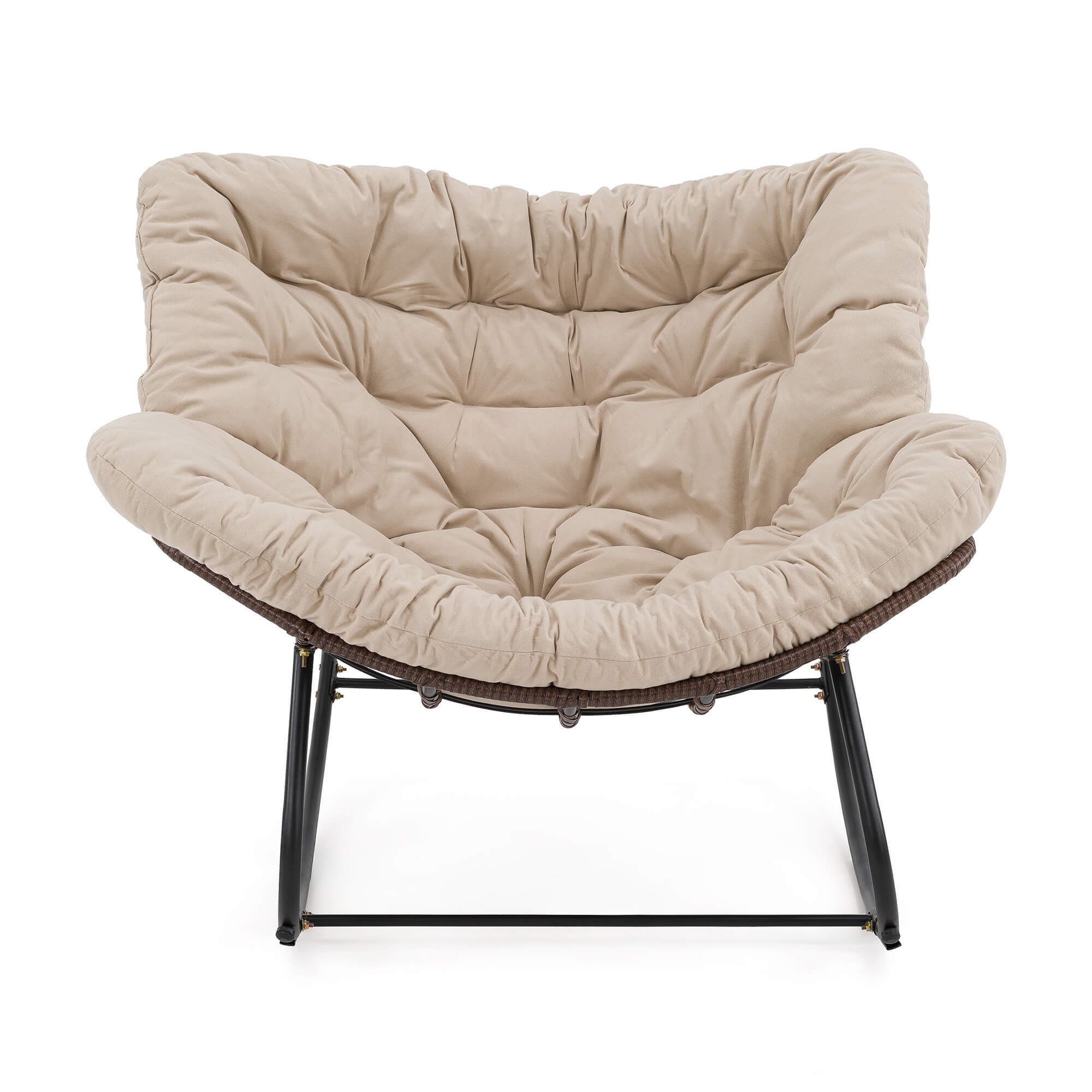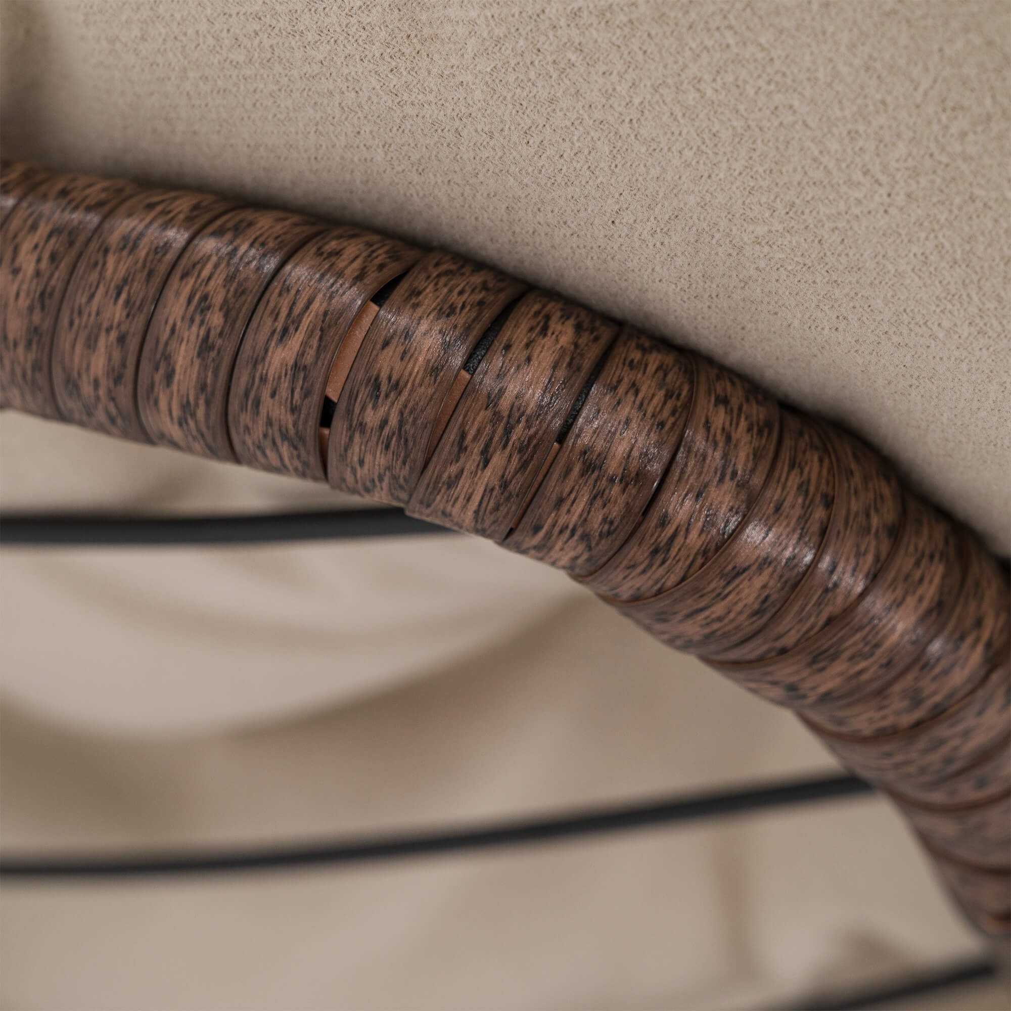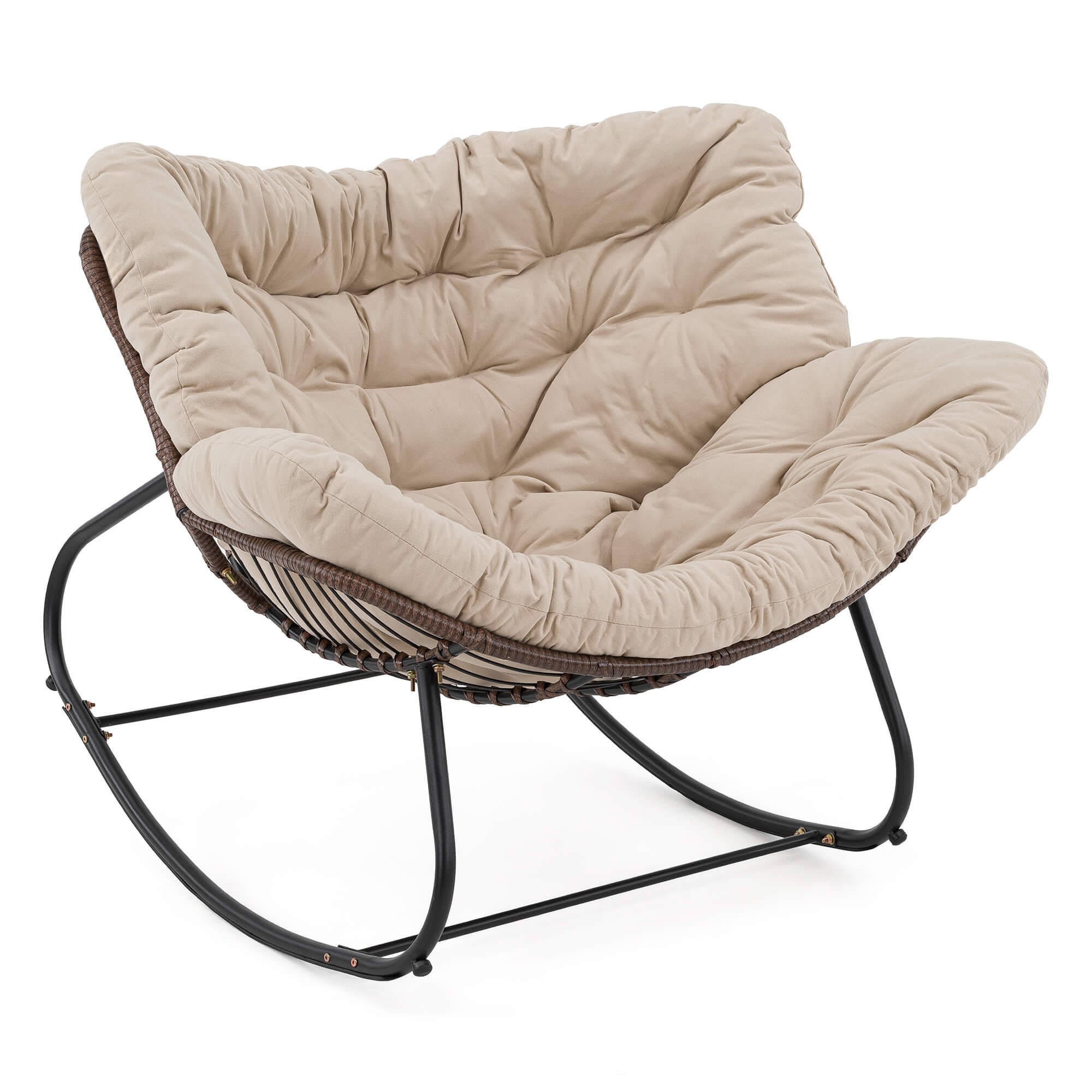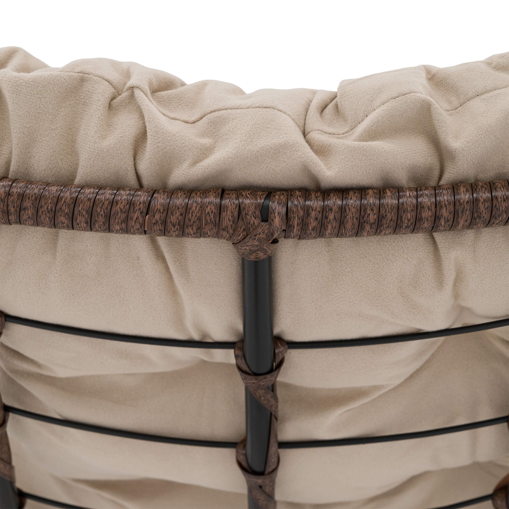 Ogrodowy fotel bujany technorattan BRĄZ poduszki beżowe