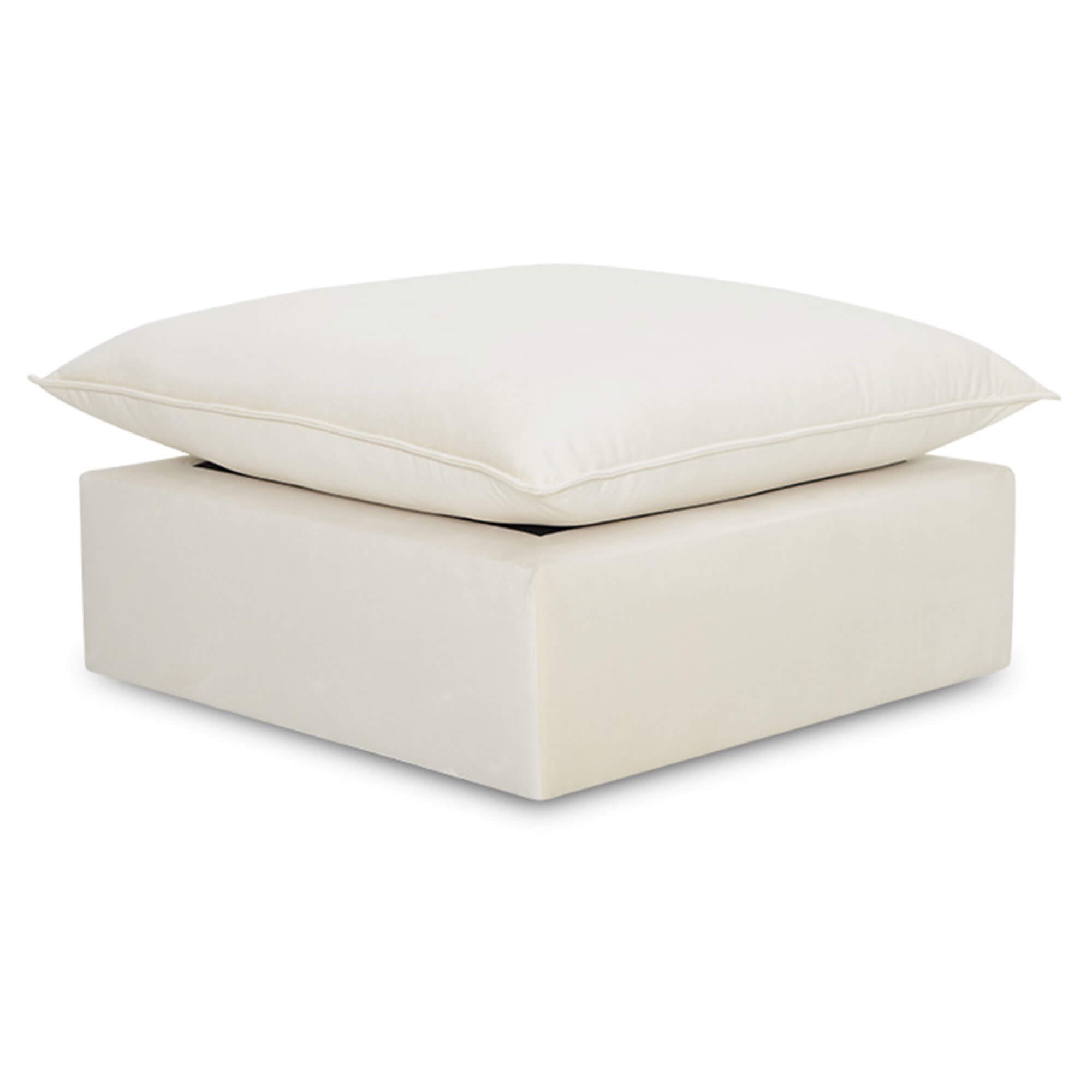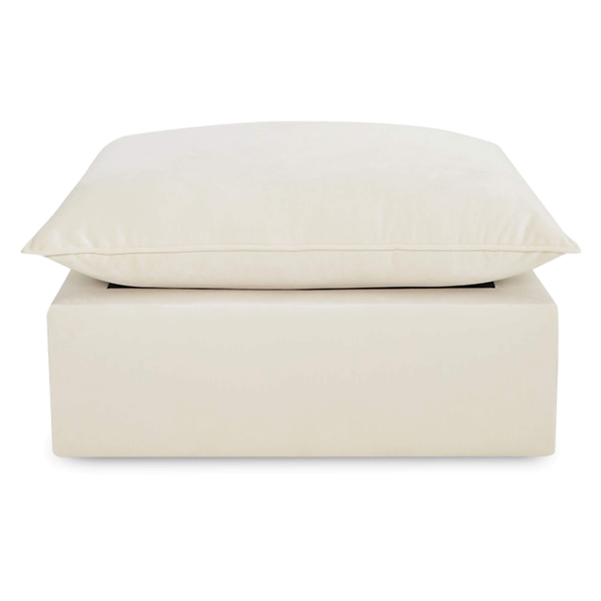 Model ma 80 cm szerokości i 80 cm głębokości, a wysokość całkowita wynosi 45 cm, co zapewnia wygodną, stabilną pozycję siedzenia. Równa wysokość do siedziska (45 cm) sprawia, że pufa idealnie komponuje się z innymi modułami kolekcji, tworząc jednolitą powierzchnię wypoczynkową. Miękkie, sprężyste wypełnienie gwarantuje komfort zarówno podczas krótkiego odpoczynku, jak i jako przedłużenie strefy relaksu w większym układzie modułowym.