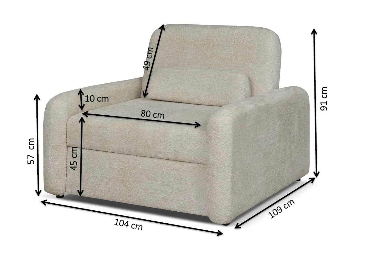 • funkcja rozkładania z wygodną powierzchnią spania 79x188 cm