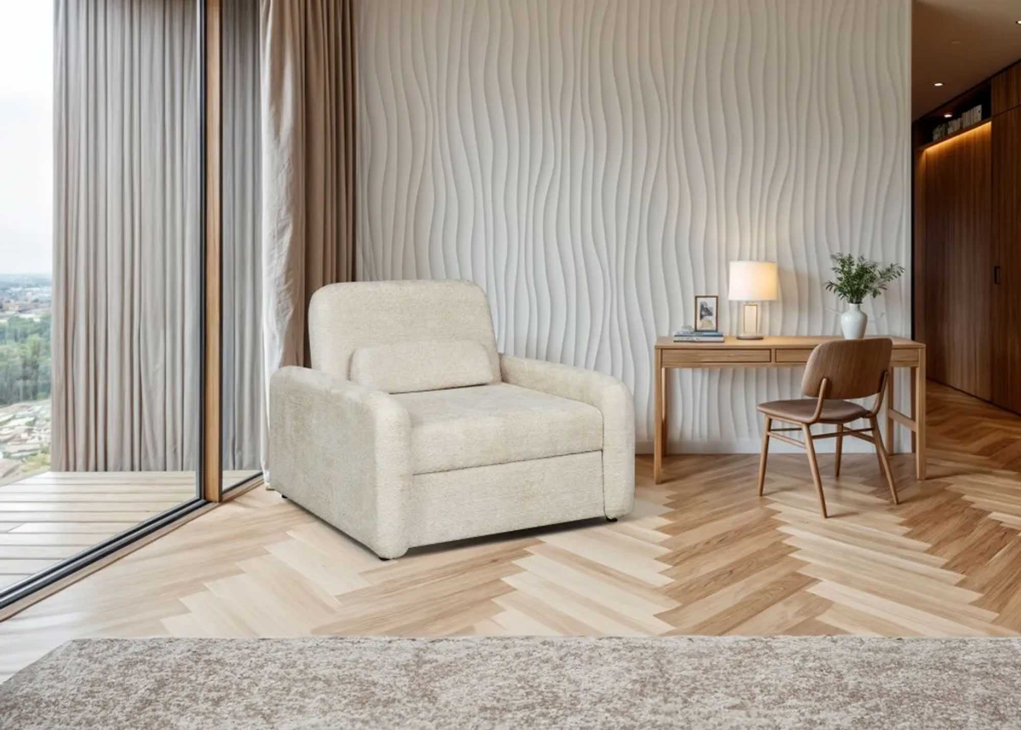 Sofa SUZI BIS 1R to praktyczny, komfortowy i stylowy mebel, który z powodzeniem zastąpi tradycyjny fotel, zapewniając jednocześnie funkcję spania w eleganckiej formie.