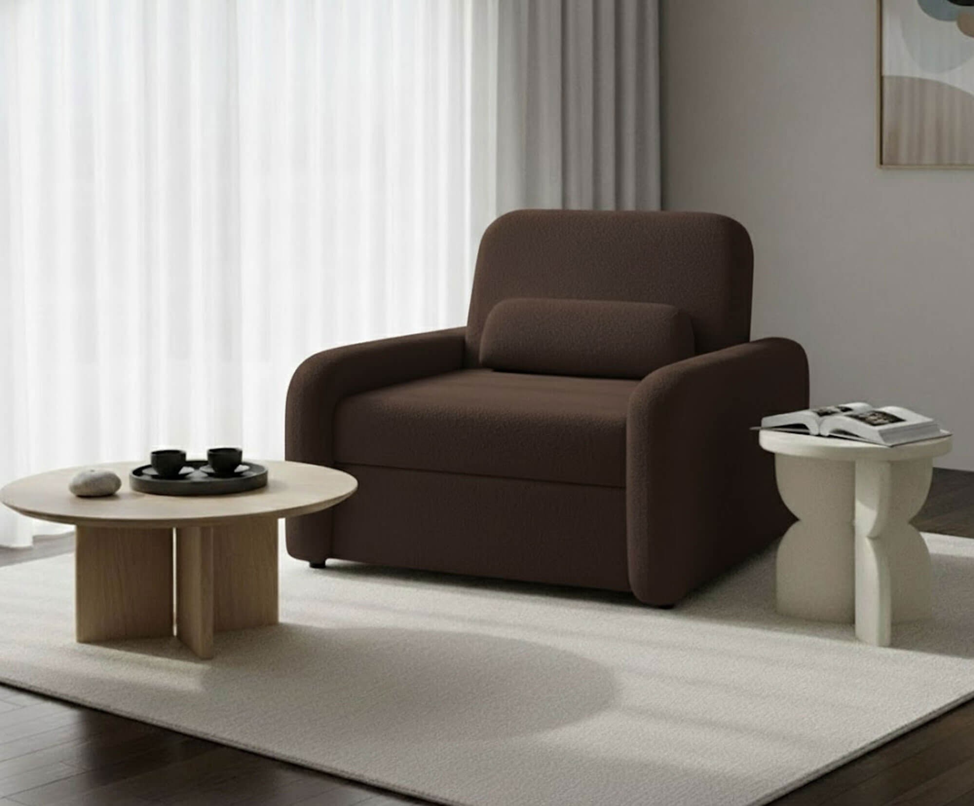 Sofa SUZI BIS 1R to praktyczny, komfortowy i stylowy mebel, który z powodzeniem zastąpi tradycyjny fotel, zapewniając jednocześnie funkcję spania w eleganckiej formie.