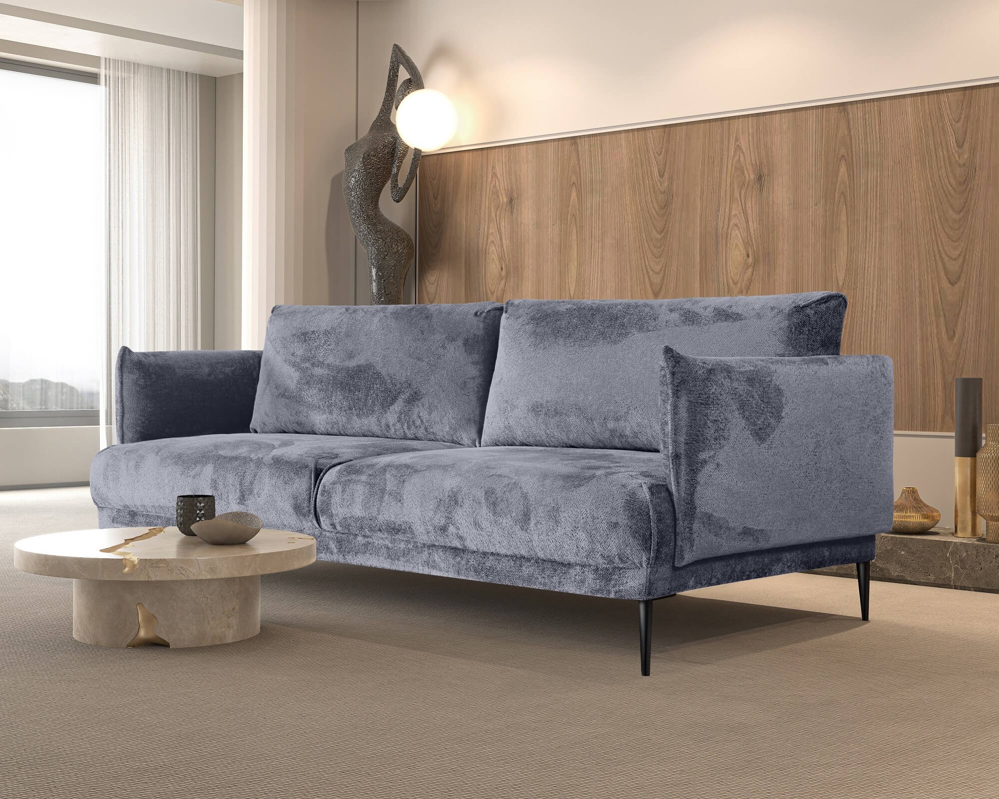 Sofa to mebel, który jest niezastąpionym elementem każdego salonu. Pozwala wygodnie spędzić czas w ulubionym stylu, czy to z bliskimi urządzając seans filmowy, czy też odprężając się w samotności z książką i aromatyczną herbatą po długim i wyczerpującym dniu. Miękka tapicerka nie tylko dodaje jej eleganckiego wyglądu, ale również zapewnia dodatkowy komfort i ciepło, subtelnie muskając ciało. Z kolei wysoka konstrukcja dodaje całości pazura w nowoczesnym stylu oraz sprawia, że nawet większe gabarytowo meble nie przytłaczają niewielkich przestrzeni typu kawalerka, poczekalnia czy gabinet. Wybierając między różnorodnymi tkaninami, szeroką gamą kolorystyczną oraz decydując się na jeden z czterech rodzajów nóżek, dostosujesz mebel do swoich potrzeb i stylu pokoju dziennego. Metalowe nóżki o wysokości 16cm to sposób, by nadać sofie unikatowy charakter – srebrne lub złote podkreślą jej elegancki i połyskując efekt w styl Glamour, a czarne matowe wkomponują się w minimalistyczny wystrój nowoczesnych stref dziennych - wybór należy tylko i wyłącznie do Ciebie! W ten sposób zadbasz nie tylko o komfort swoich domowników, ale również przepiękny efekt wizualny aranżacji.
