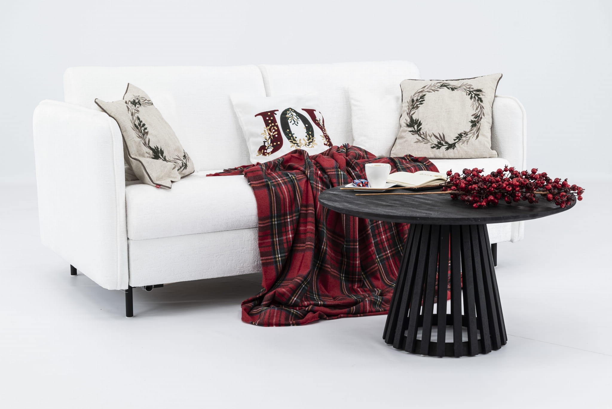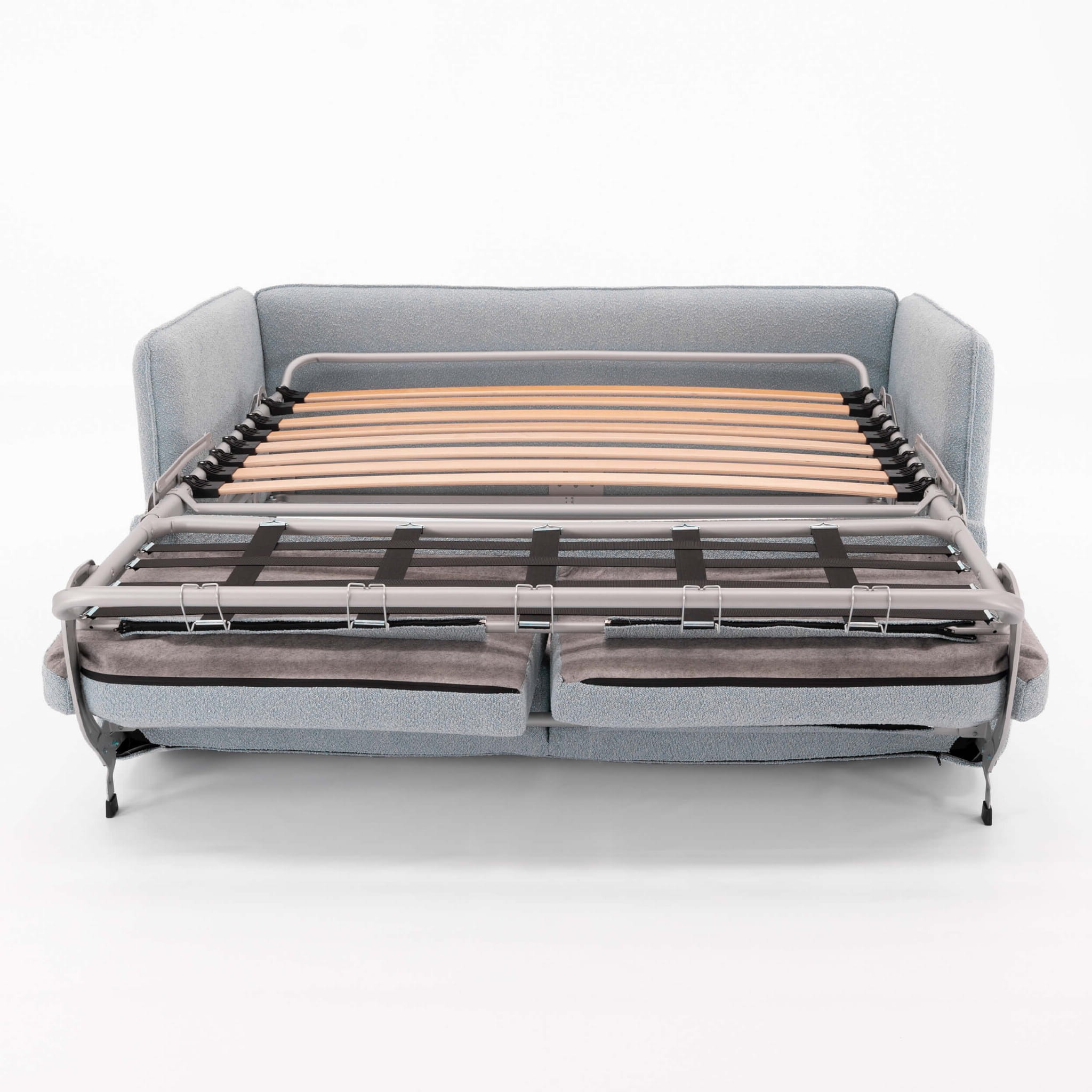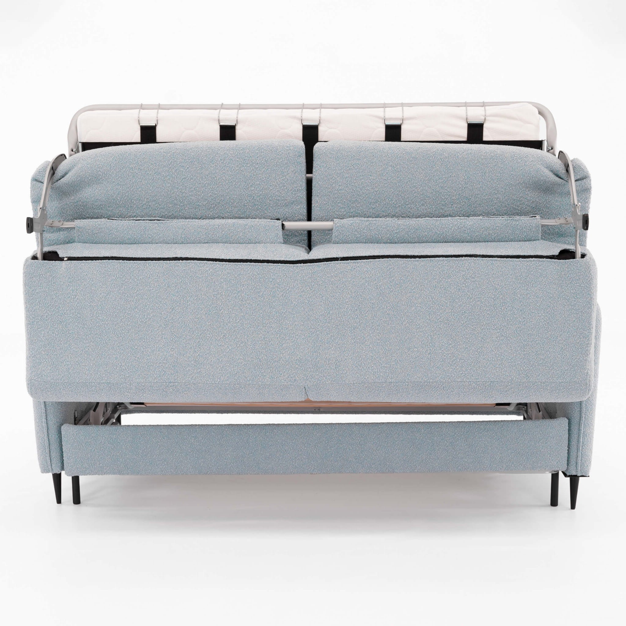 • Do kompletu dołączony materac piankowy o grubości 8 cm, podczas zawijania chowa się w sofie