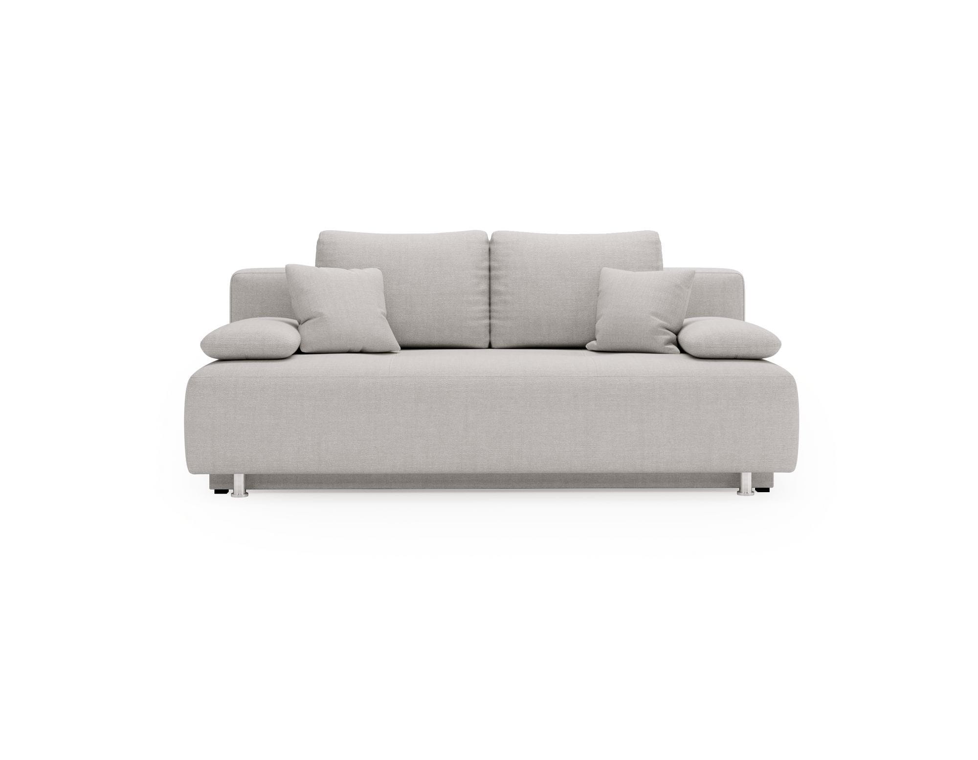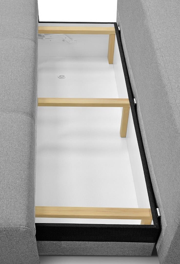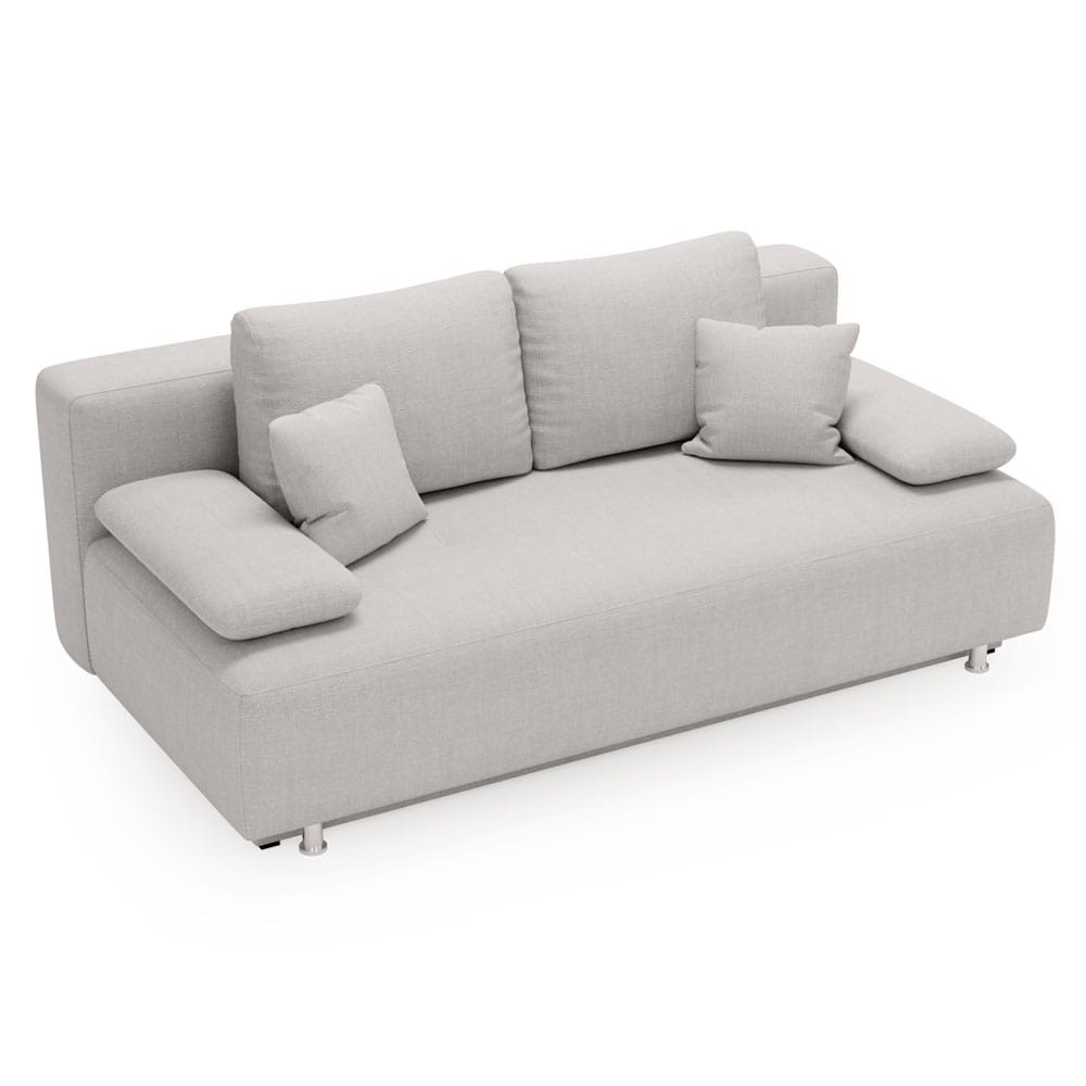 Minimalistyczna sofa na nóżkach z funkcją spania, pojemnikiem i podłokietnikami BELISSA to mebel, w którym nowoczesne trendy spotykają się z niezwykłą wygodą.