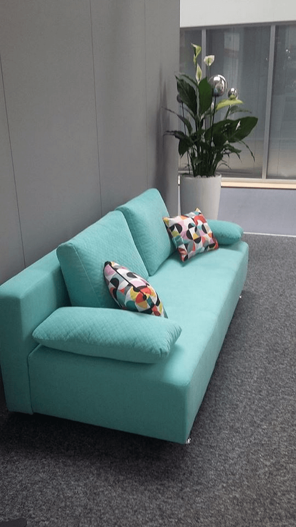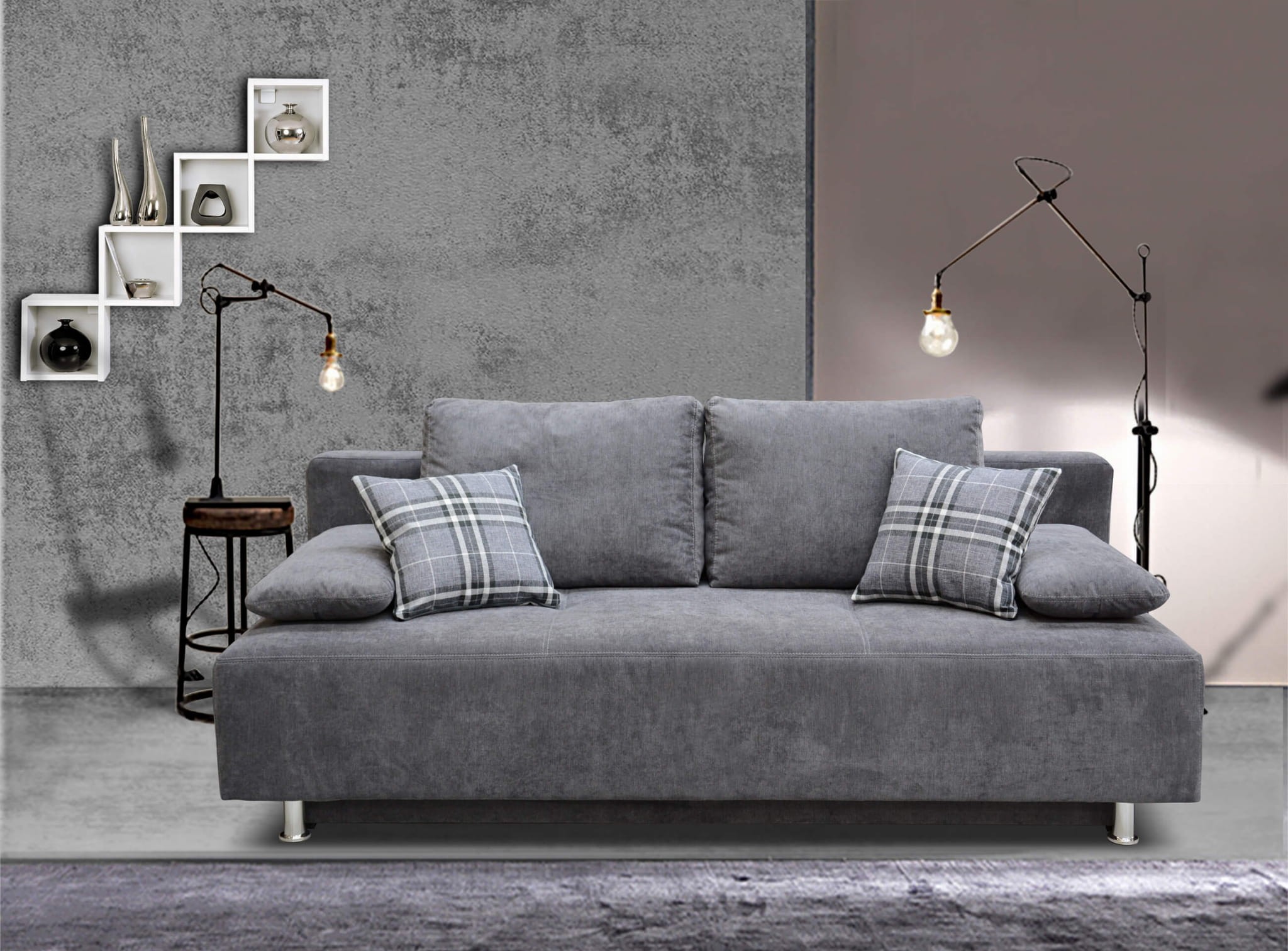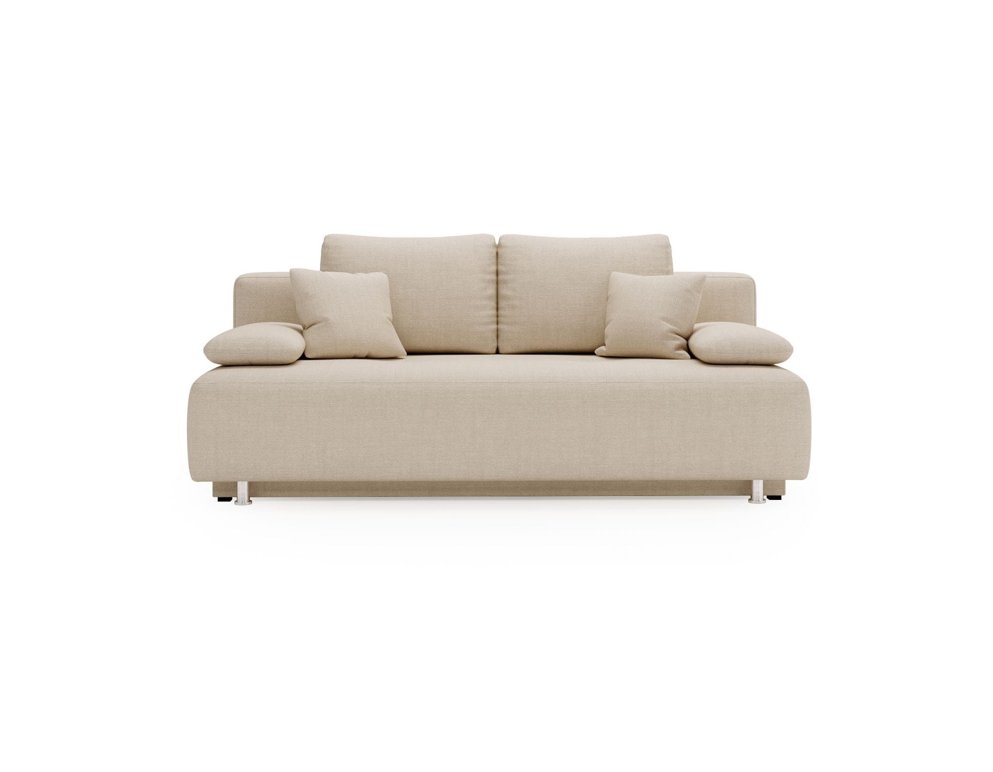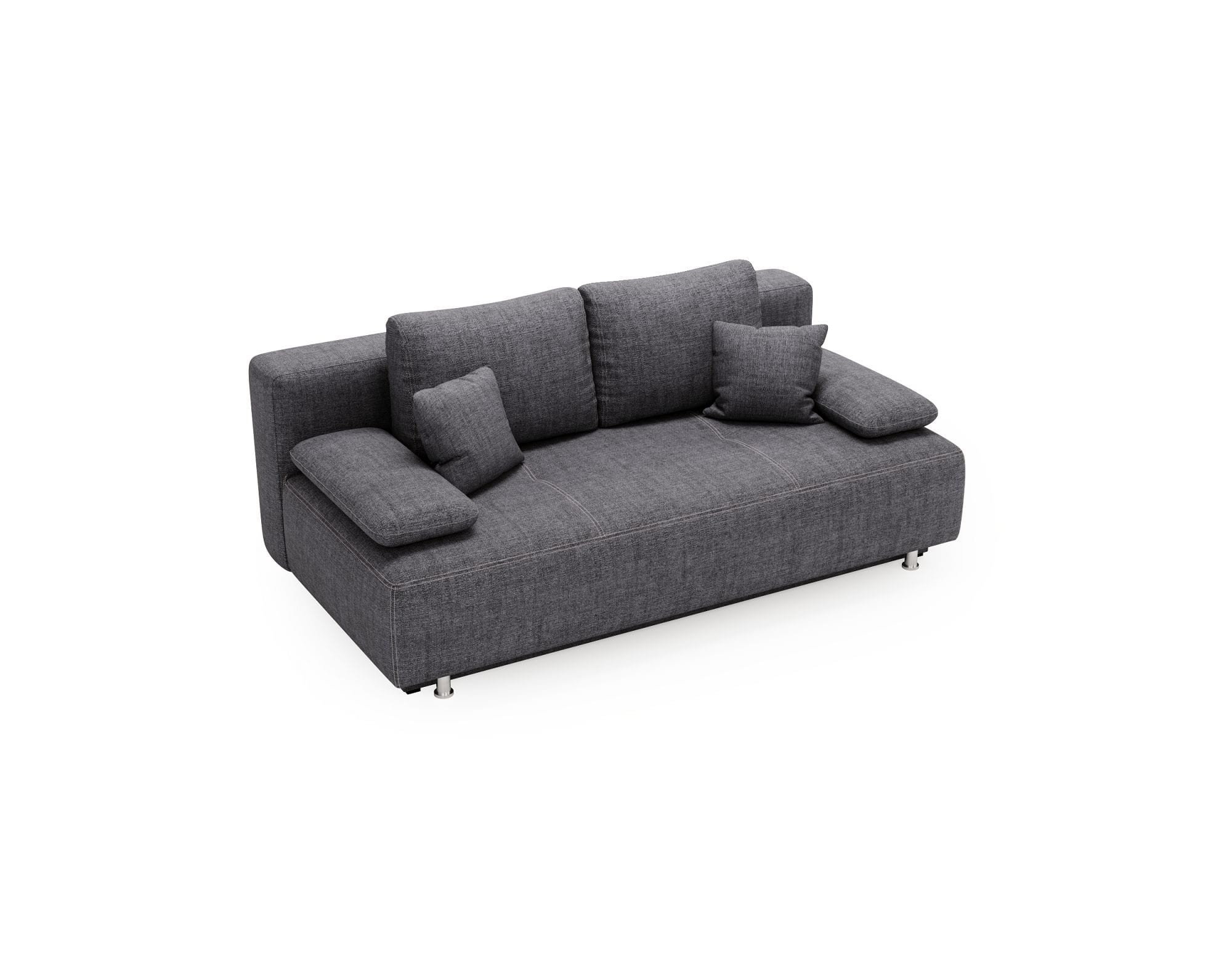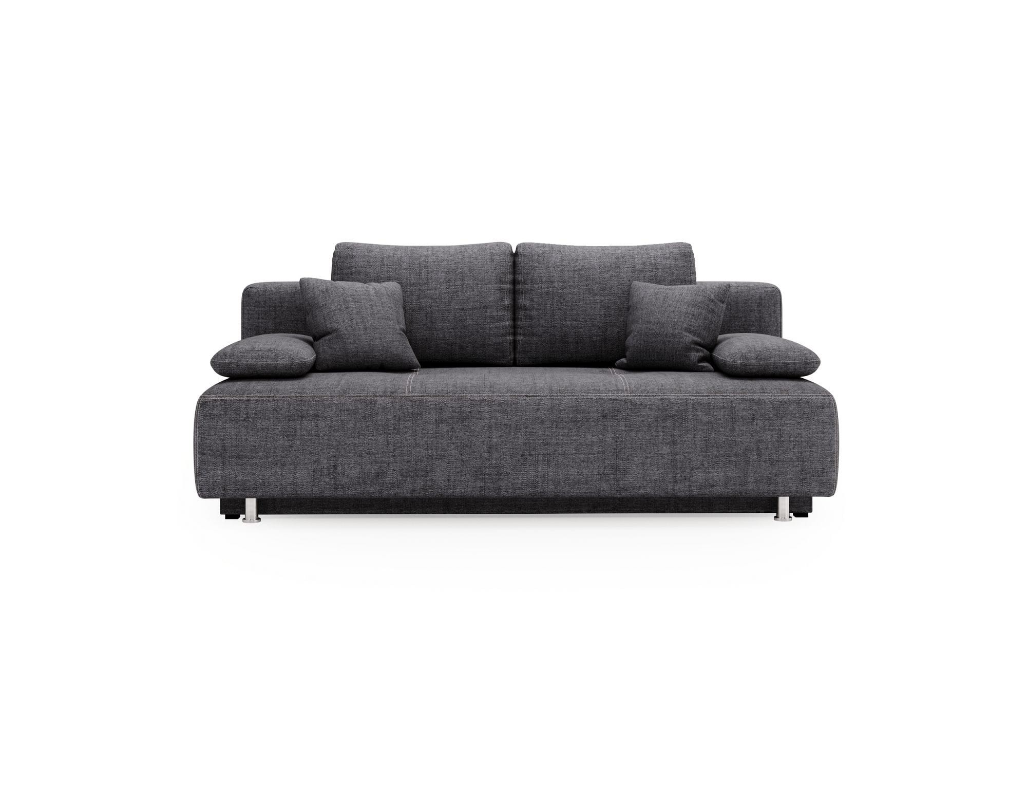 Oparcie zdobione poduchami, które sprawdzą się podczas odpoczynku jest niezwykle wygodne i wraz z siedziskiem wypełnionym elastyczną pianką zapewniają komfortowe warunku do wypoczynku w dzień i w nocy. Dzięki temu, że sofa na nóżkach posiada funkcję spania, bez problemu zastąpi wygodne łóżko.