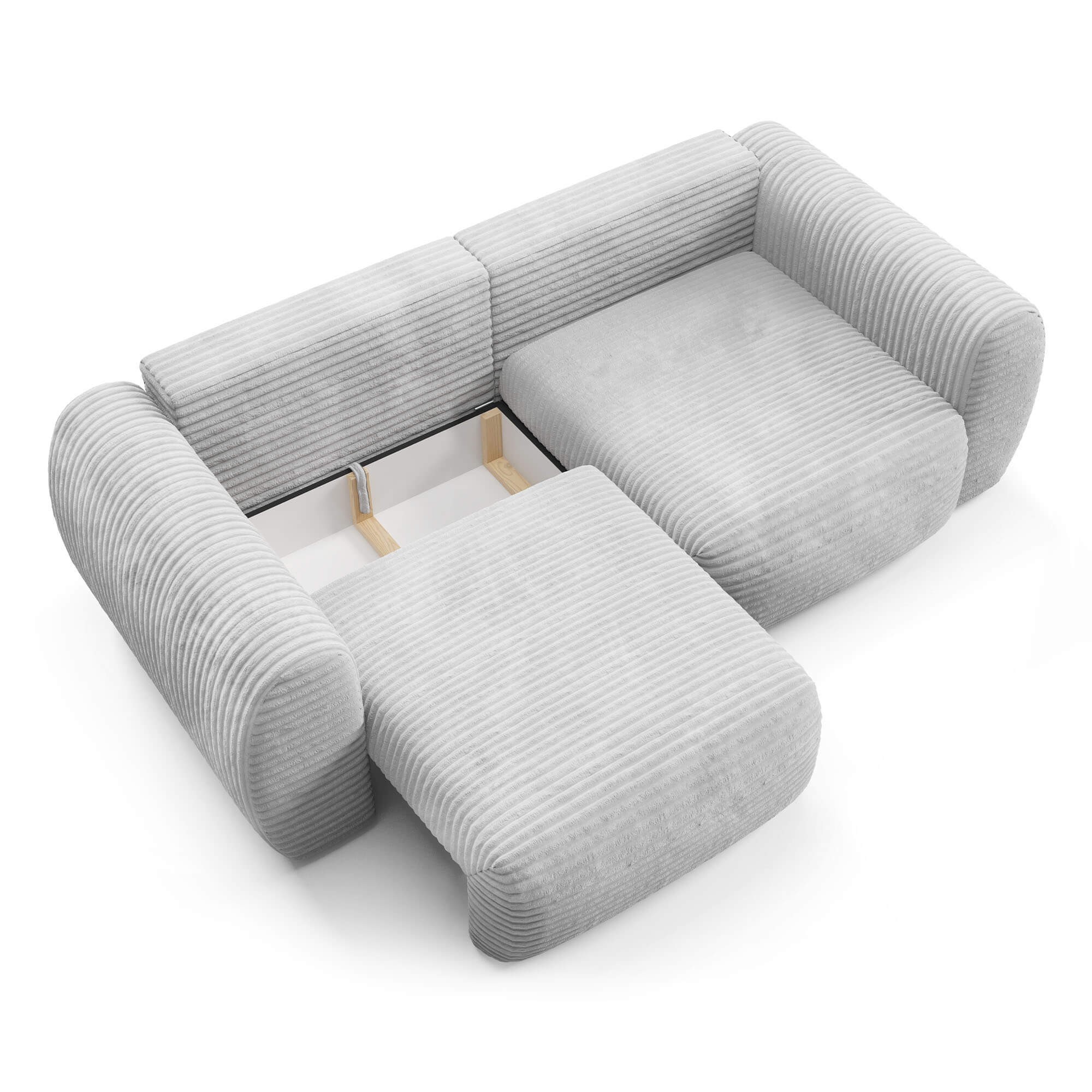 Sofa z funkcją spania CLOUD to idealne połączenie komfortu wypoczynku i praktycznego rozwiązania w jednej, eleganckiej formie. Dzięki wygodnemu mechanizmowi automatycznego rozkładania każdy wieczór może przemienić się w przytulne miejsce snu dla dwojga, a dwie pojemne skrzynie na pościel ukryte pod siedziskiem zapewniają dyskretne i łatwo dostępne miejsce na koce czy poduszki. Tył sofy wykończono tym samym materiałem, co front, dzięki czemu mebel prezentuje się efektownie z każdej strony. Wielowarstwowe wypełnienie siedziska i oparcia – oparte na sprężynach falistych i wysokiej jakości piankach poliuretanowych – gwarantuje doskonałą elastyczność, odpowiednie podparcie ciała i zachowanie kształtu na lata. Wybierz jeden z dostępnych kolorów obicia i odkryj, jak sofa CLOUD doskonale wpisuje się w Twoje wnętrze, oferując wygodę w dzień i spokojny sen w nocy.