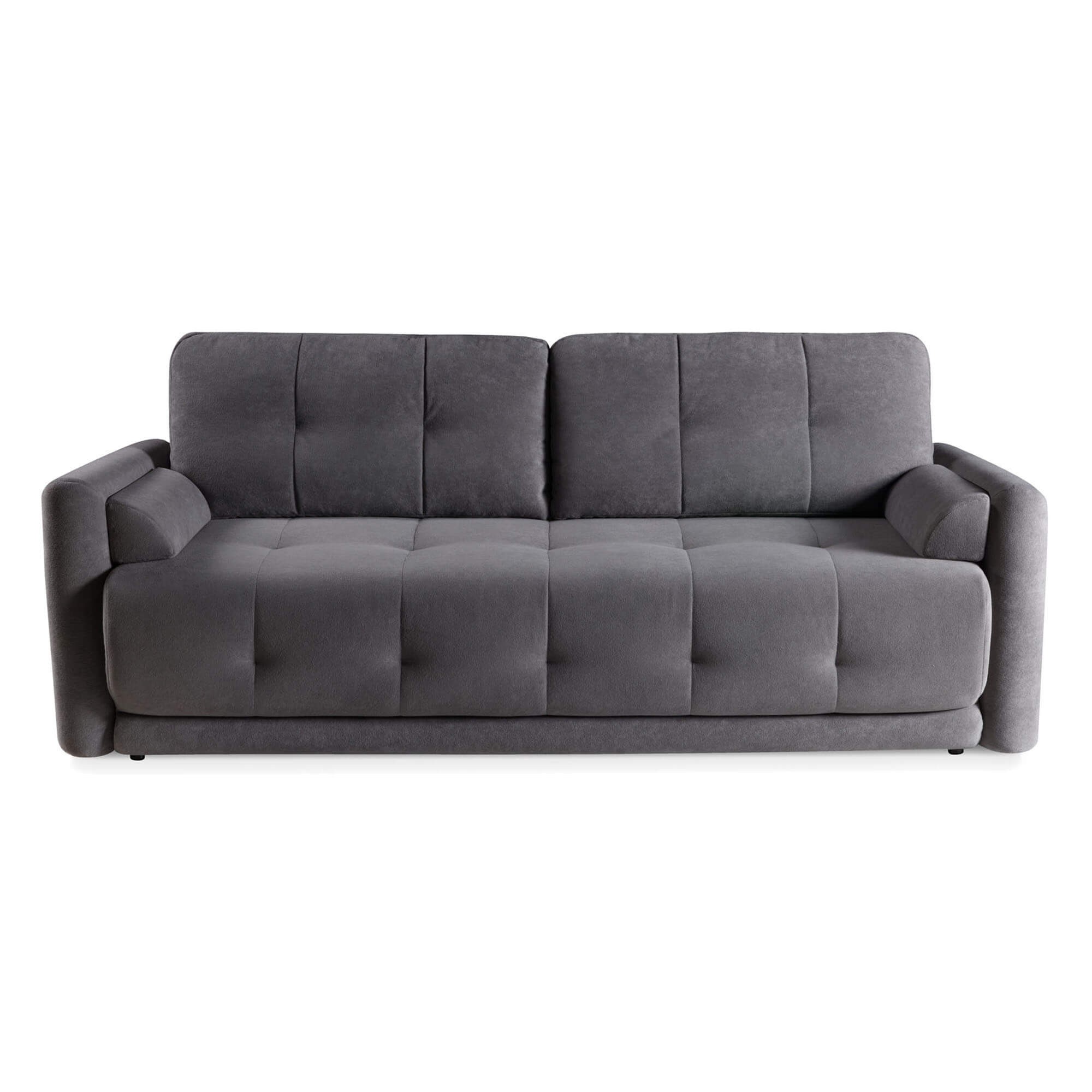 Sofa z funkcją spania ETNO to nowoczesna propozycja, która łączy minimalistyczny wygląd z wysokim komfortem codziennego użytkowania. Jej masywna, prostokątna forma wpisuje się idealnie w aktualne trendy wnętrzarskie, oferując jednocześnie wygodę i trwałość na lata. Starannie zaprojektowane siedzisko oraz oparcie zdobią efektowne przeszycia w układzie pionowo-poziomym, które nadają sofie nie tylko elegancki charakter, ale również optyczną głębię i rytmiczny podział formy. Model ETNO stworzono z myślą o funkcjonalności – rozkładana konstrukcja pozwala w prosty sposób zamienić sofę w wygodne miejsce do spania, co sprawia, że doskonale sprawdzi się w salonie, pokoju gościnnym czy niewielkiej kawalerce. Dodatkowy pojemnik na pościel ukryty pod siedziskiem ułatwia codzienne przechowywanie i pozwala lepiej zagospodarować przestrzeń, bez konieczności sięgania po dodatkowe szafy czy skrzynie. Wysoki komfort wypoczynku zapewniają sprężyny typu BONELL, które doskonale amortyzują nacisk, równomiernie rozkładając ciężar ciała i wspierając prawidłową postawę podczas siedzenia i snu. Miękkie poduszki oparciowe z pionowymi przeszyciami idealnie dopasowują się do pleców, gwarantując relaks na najwyższym poziomie. Całość dopełnia zwarta, nisko osadzona konstrukcja, która nadaje sofie ETNO stabilności i nowoczesnej, ponadczasowej sylwetki. To mebel, który świetnie odnajdzie się zarówno w przestrzeniach urządzonych w duchu skandynawskim, jak i w bardziej klasycznych aranżacjach. Jeśli szukasz sofy, która sprosta codziennym wyzwaniom, zachwyci designem i zapewni wyjątkową wygodę, model ETNO będzie doskonałym wyborem.