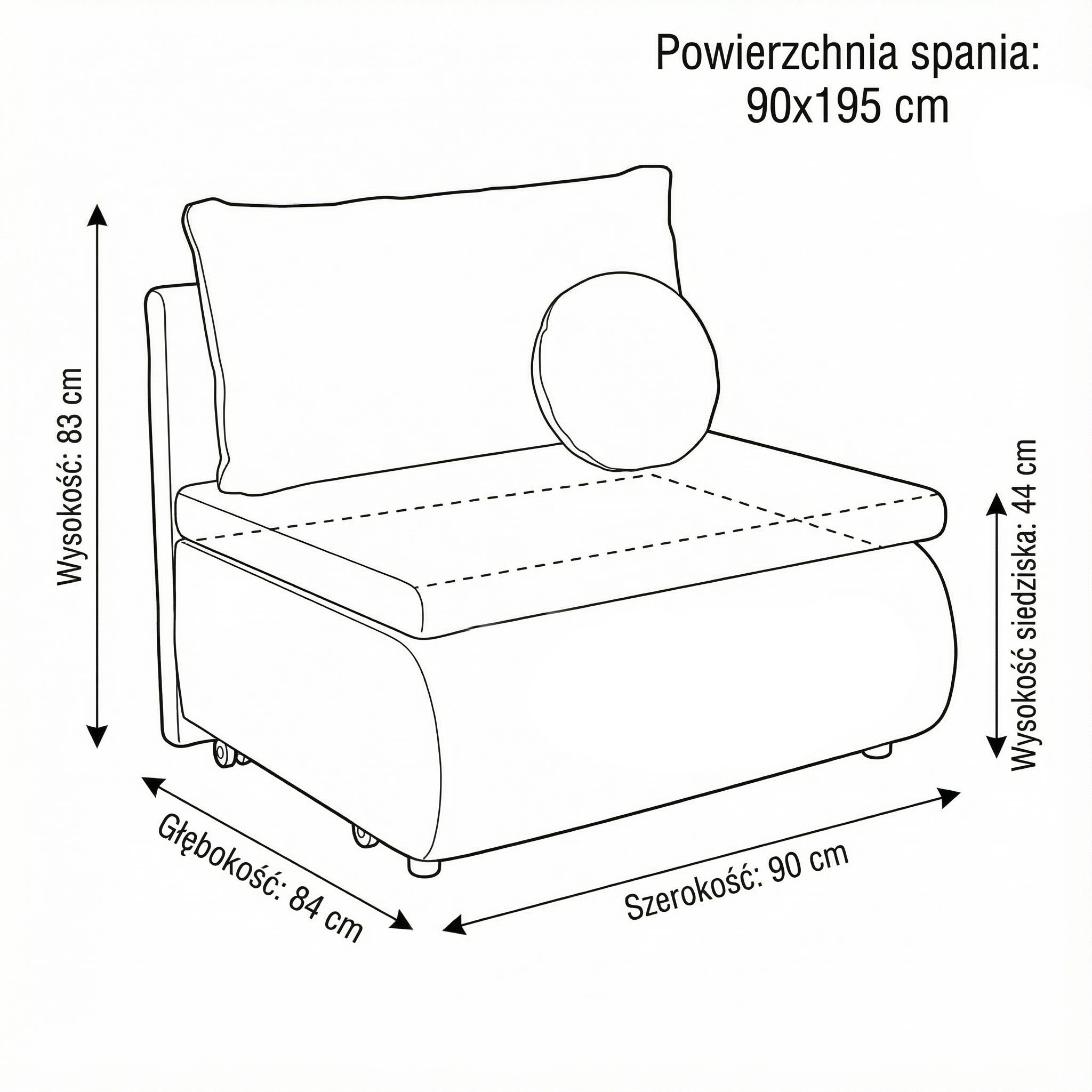 Sofa z funkcją spania PETITE | 90 | Poduszka w zestawie | Kolor do wyboru