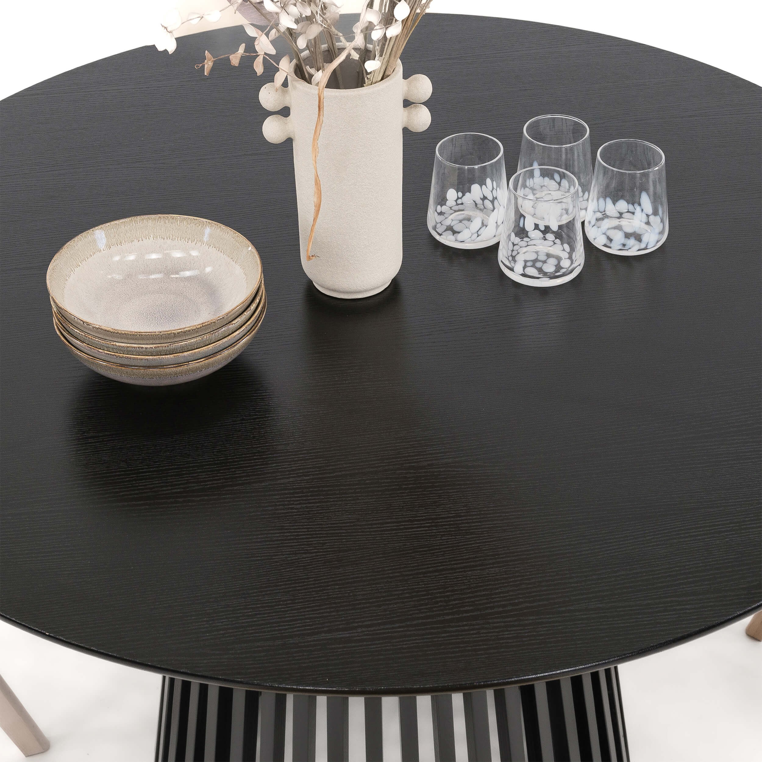 Stół Okrągły 100CM Czarny | YY5940 + 4 Krzesła | 53E-7 | Beżowe