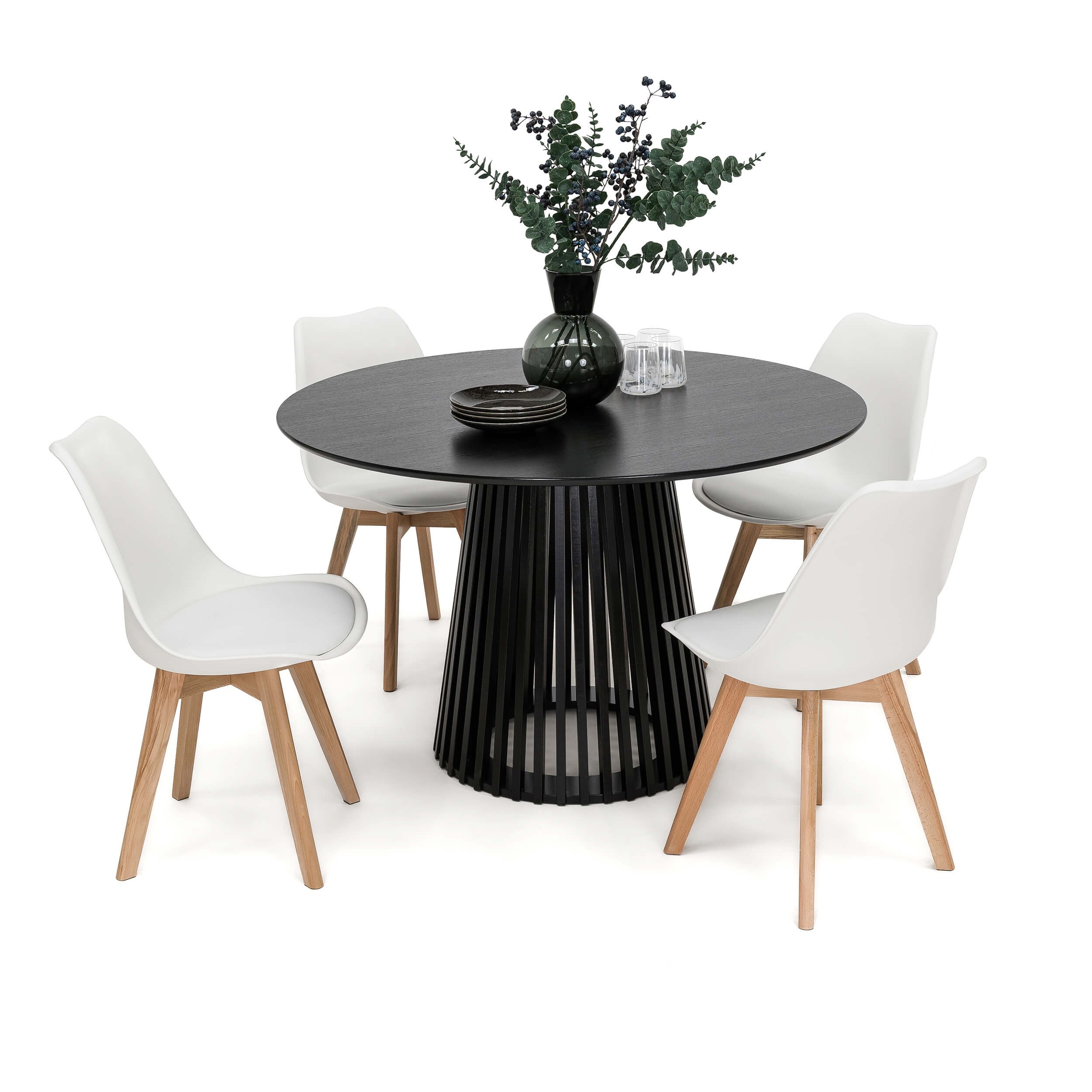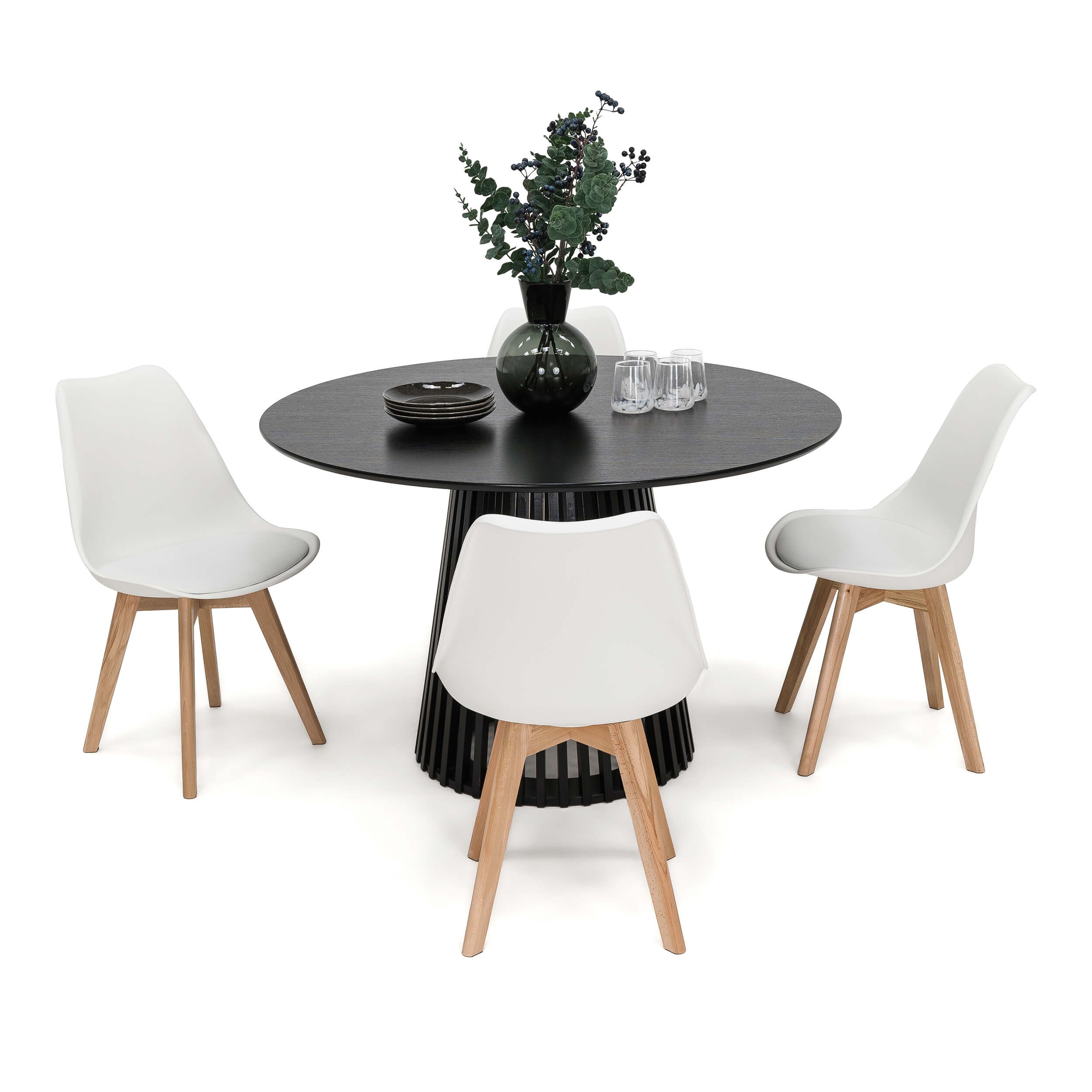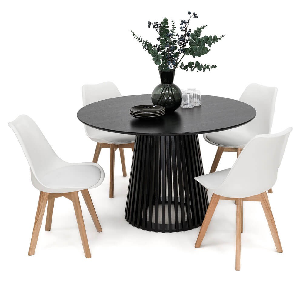 Stół Okrągły 120CM Czarny | YY5940 + 4 Krzesła | 53E-7 | Białe