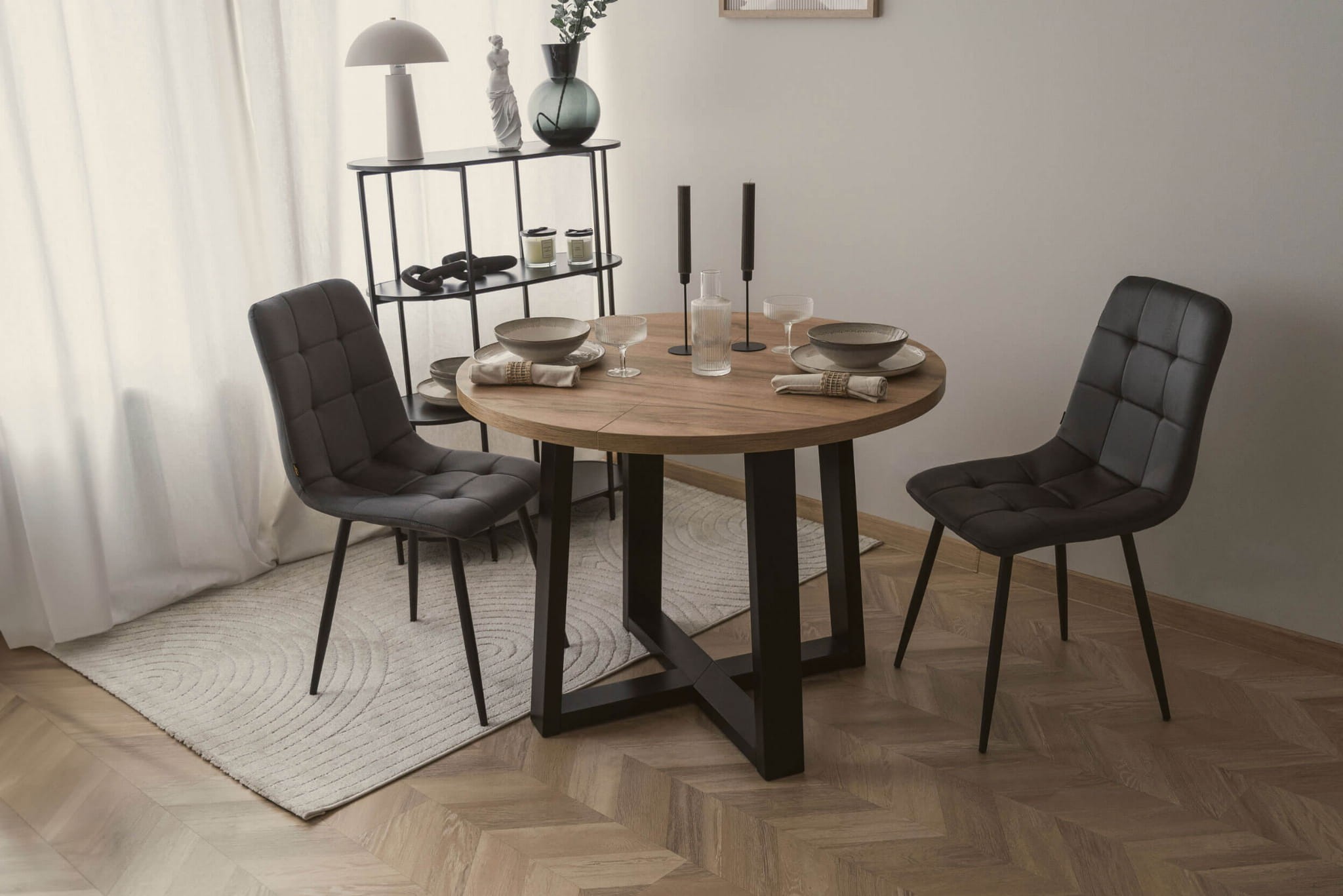 Zestaw stół rozkładany STL 90/1 i krzesła DC-6402 – elegancja i funkcjonalność w Twoim domu