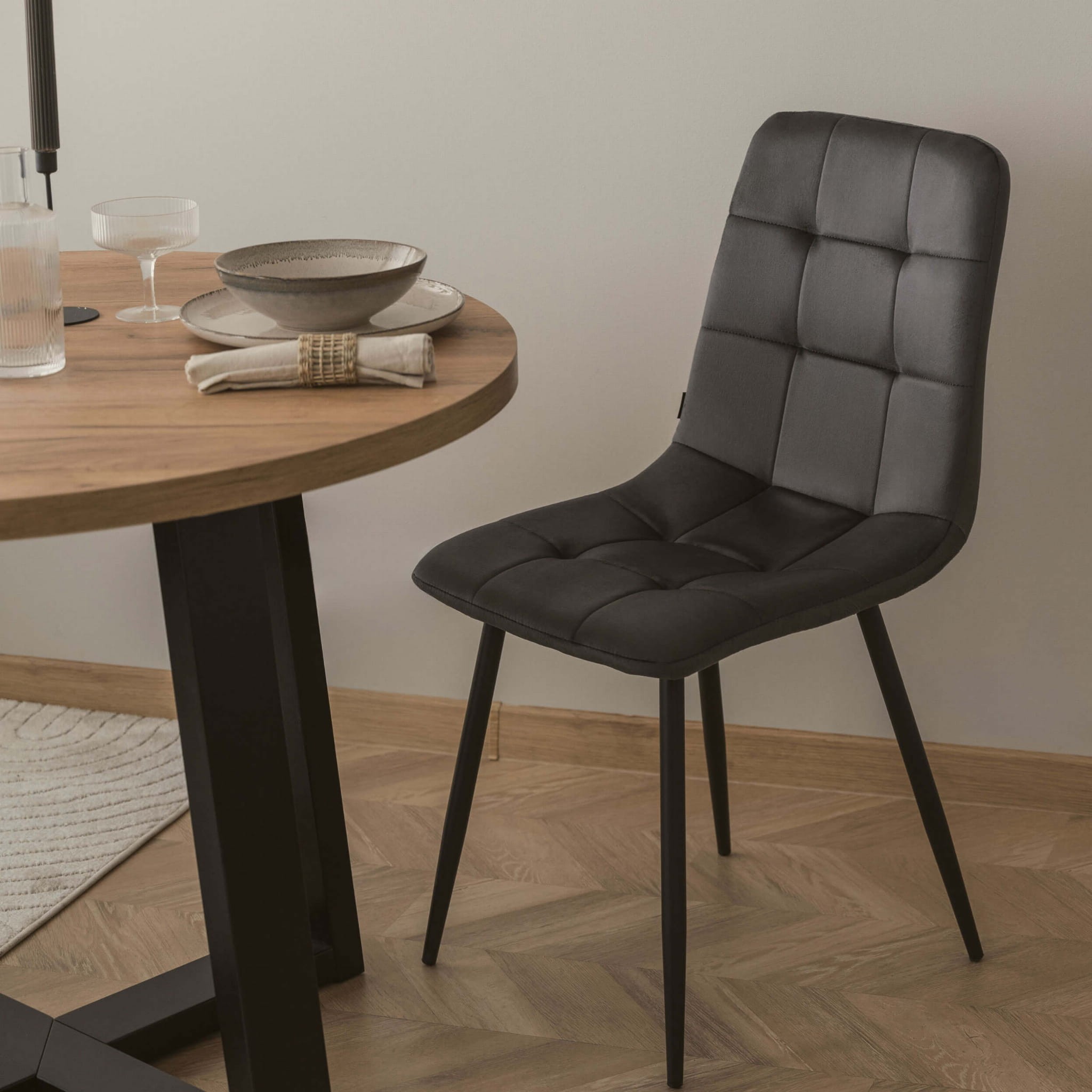 Okrągły kształt blatu pozwala na efektywne wykorzystanie przestrzeni, co jest szczególnie istotne w mniejszych pomieszczeniach, a brak ostrych krawędzi ułatwia poruszanie się wokół stołu, zapewniając komfort użytkowania na co dzień. Drewniana podstawa w formie krzyżaka nie tylko dodaje uroku całej konstrukcji, ale także gwarantuje długowieczność i stabilność, co jest kluczowe w codziennym użytkowaniu. Stół STL | 90 to idealny wybór dla osób ceniących sobie nowoczesny design i wysoką funkcjonalność. Może pełnić rolę zarówno stołu do jadalni, jak i stolika kawowego w salonie, stając się centralnym punktem spotkań rodzinnych i towarzyskich. Wybierając stół STL | 90, inwestujesz w mebel, który łączy w sobie estetykę, jakość i praktyczność. Jego uniwersalność i nowoczesny wygląd sprawiają, że jest doskonałym wyborem dla każdego, kto chce wzbogacić swoje wnętrze o stylowy i funkcjonalny element.