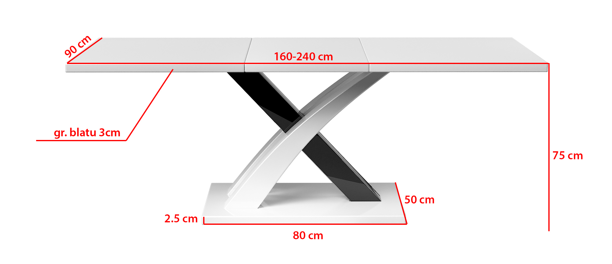 Stół "X" rozkładany 160/200/240 wysoki połysk