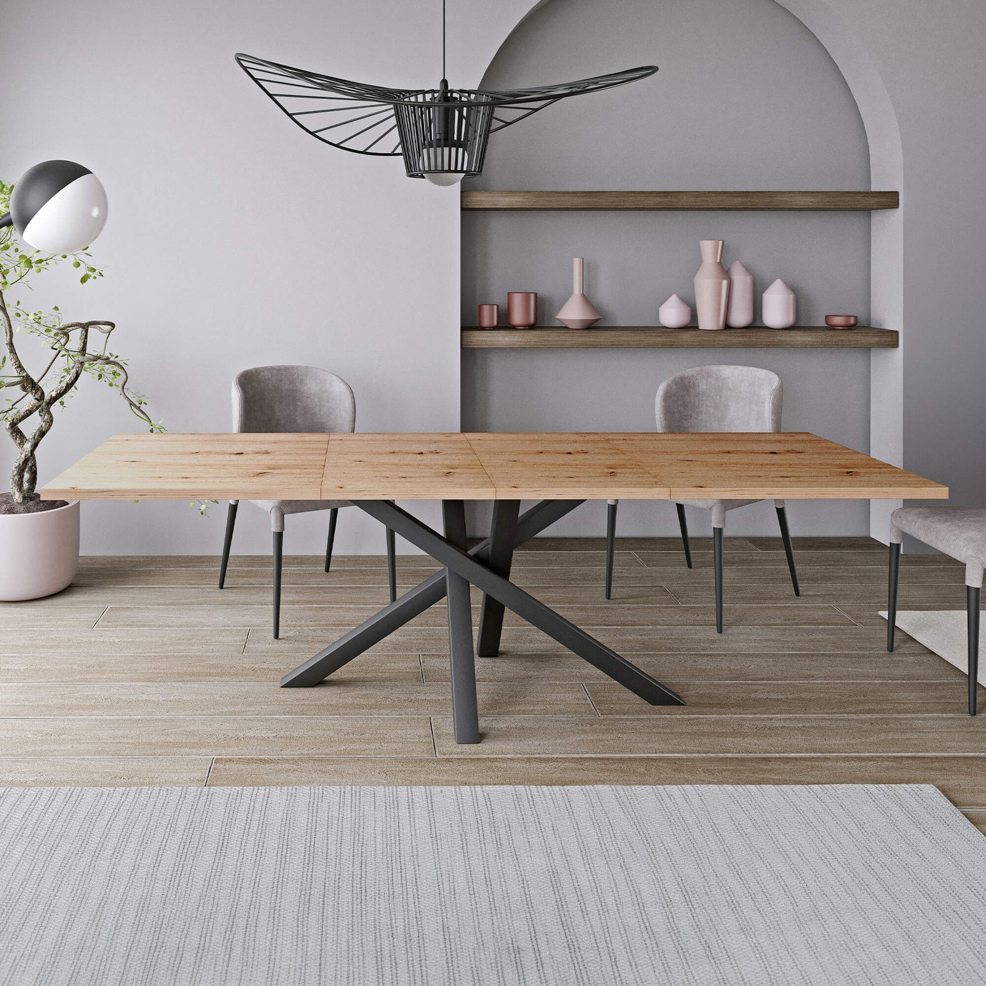 Stół rozkładany CALI to idealna propozycja dla miłośników nowoczesnego designu z charakterem. Łączy w sobie surowość metalu z ciepłem laminowanego blatu, doskonale wpisując się w trendy loftowe i industrialne. To mebel stworzony do centralnego punktu domu – jadalni lub salonu, gdzie toczy się rodzinne życie.