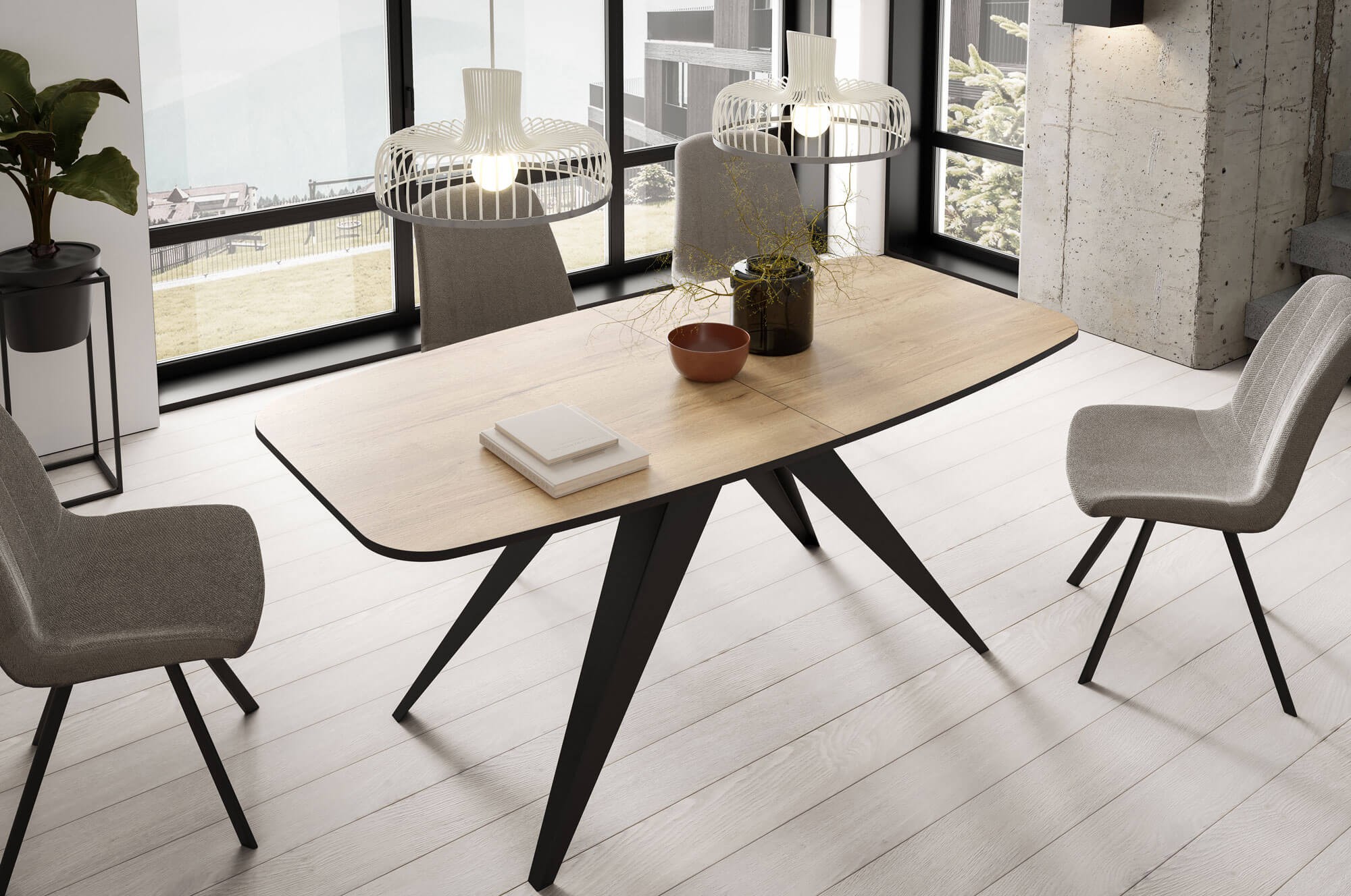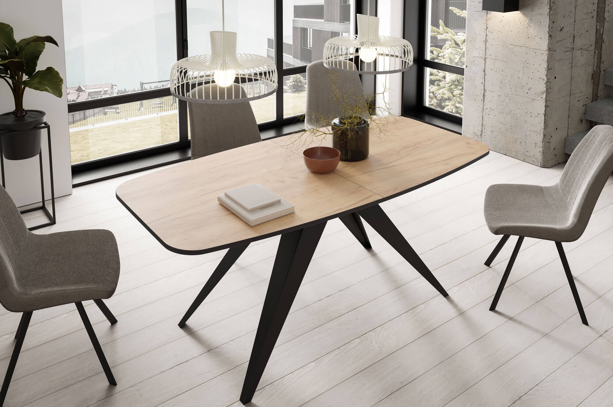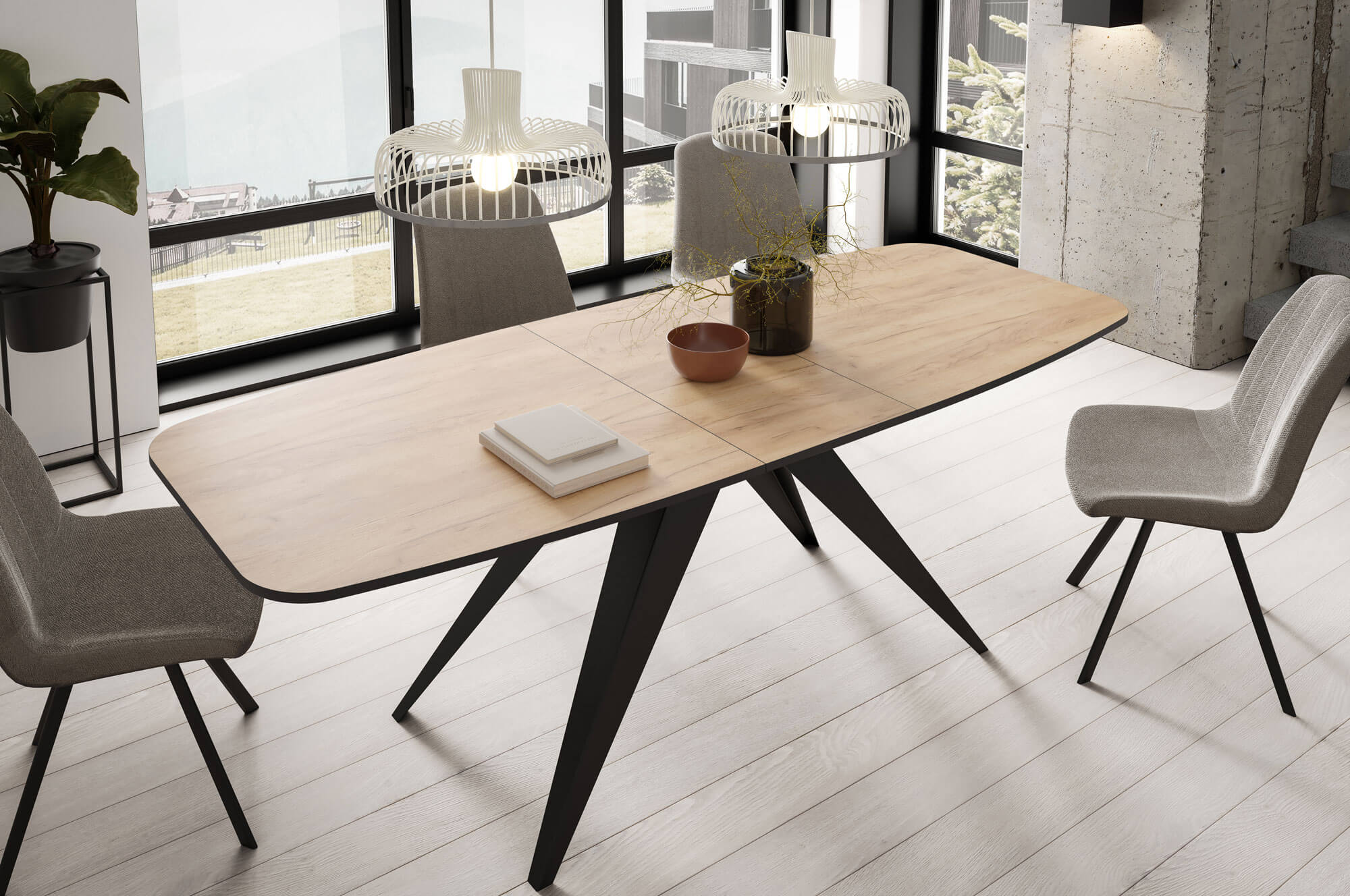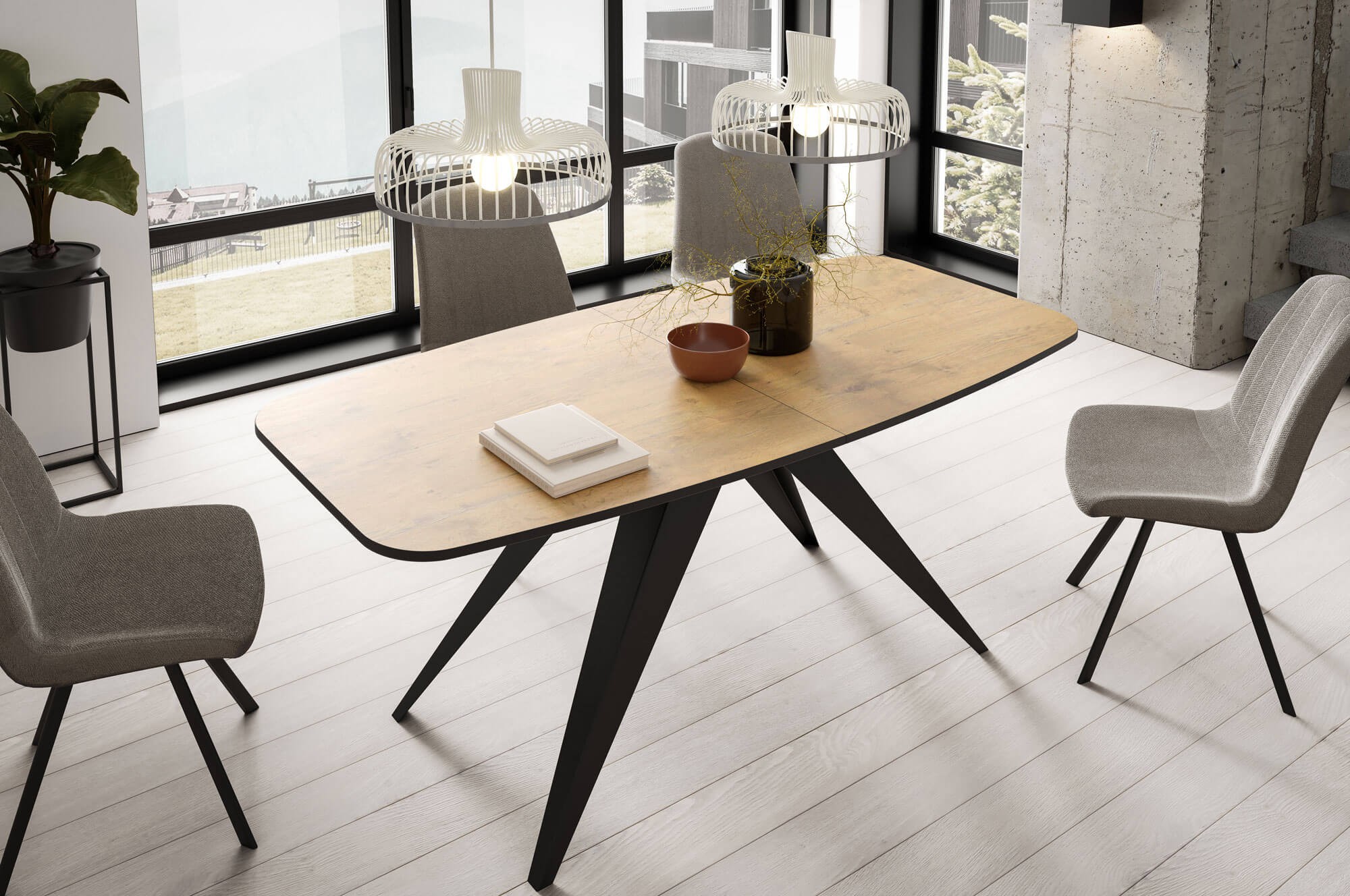 Stwórz elegancką i funkcjonalną przestrzeń w swoim domu, wybierając stół rozkładany FERRO! Jego imponujący design przyciąga wzrok, a wysoka funkcjonalność zapewnia wygodę użytkowania zarówno na co dzień, jak i podczas przyjęć. Połączenie solidnego, lecz elegancko zaoblonego blatu i podstawy z surowego metalu sprawia, że jest odpowiedzią na najnowsze trendy wnętrzarskie. Brak ostrych krawędzi to dodatkowe zabezpieczenie, a także subtelny i przyjemny akcent w pomieszczeniu. Warto pamiętać, że surowość materiałów i prostota idealnie komponują się z wieloma stylami. W dodatku masz do wyboru wiele wersji kolorystycznych stołu: odcienie drewnopodobne, które idealnie sprawdzą się we wnętrzach boho i skandynawskich, dekor marmuru dodający klasy i luksusu oraz beton – surowy, wyrafinowany i nowoczesny. Nie brakuje również klasycznych kolorów, jak kaszmir, czerń czy biel. Dzięki możliwości dowolnej personalizacji, stół rozkładany FERRO bez trudu wkomponuje się właśnie w Twoją przestrzeń. A jeśli marzysz o odświeżeniu kuchni czy jadalni, zdecydowanie stanie się centralnym punktem tego wnętrza! Rozkładany blat oferuje dużo przestrzeni, co okaże się idealnym rozwiązaniem w przypadku spotkań w większym gronie. Dzięki temu, zyskasz nie tylko pełen komfort, ale również unikalny styl dopasowany do potrzeb i aktualnych trendów.