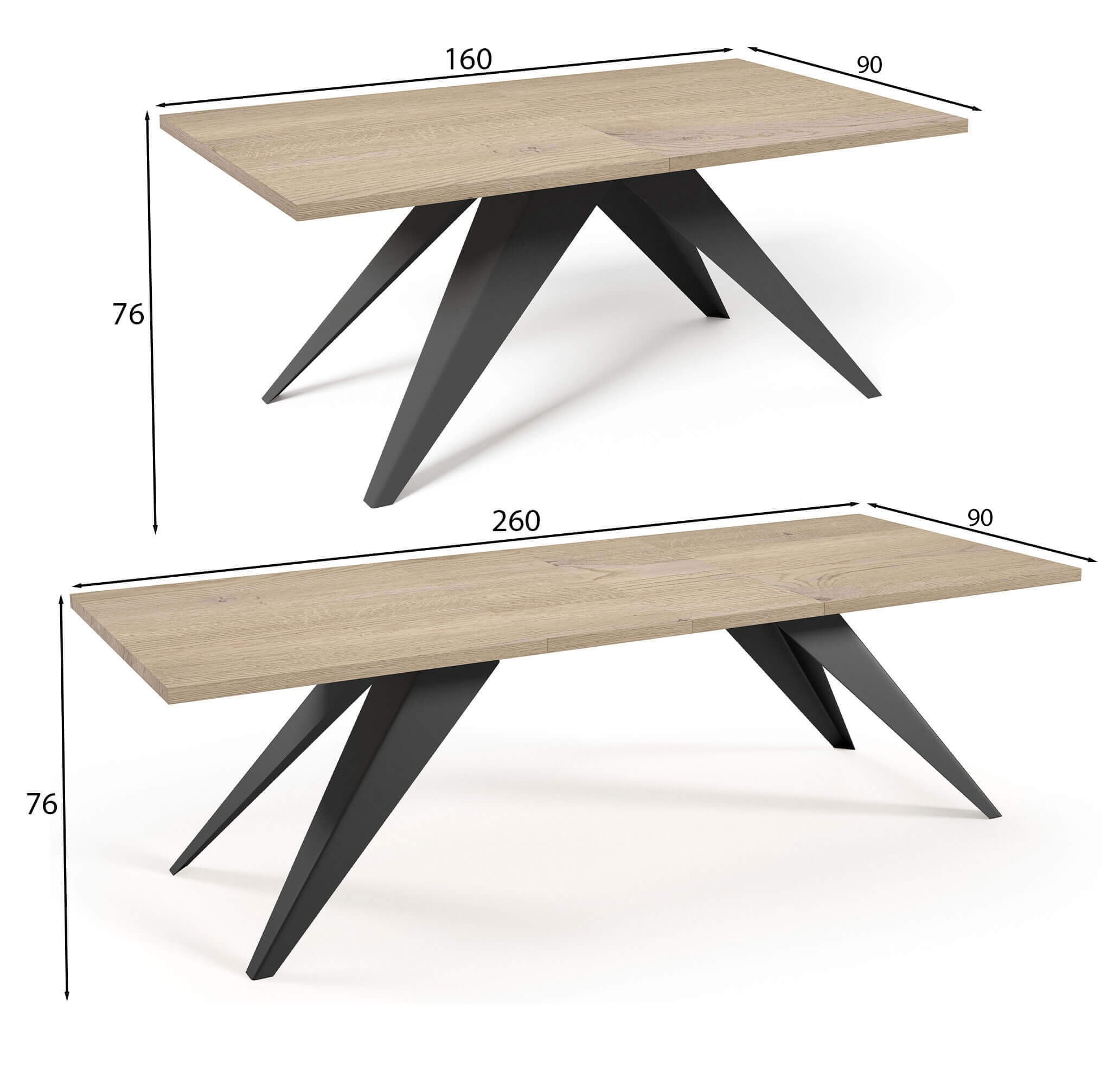 Szukasz stołu, który łączy nowoczesny design z praktycznymi rozwiązaniami? Model VENTO to idealny wybór do jadalni, salonu lub otwartej strefy dziennej. Kompaktowy na co dzień, a po rozłożeniu zmienia się w duży stół, przy którym z łatwością ugościsz rodzinę i przyjaciół. Dlaczego warto wybrać stół VENTO? Przede wszystkim posiada rozkładany blat od 160 do 260 cm. Dzięki dwóm dodatkowym wkładkom (po 50 cm każda), szybko i łatwo powiększysz stół – idealne rozwiązanie na święta, przyjęcia i spotkania w większym gronie. Na co dzień zachowuje kompaktowe wymiary, nie zajmując zbyt wiele przestrzeni.